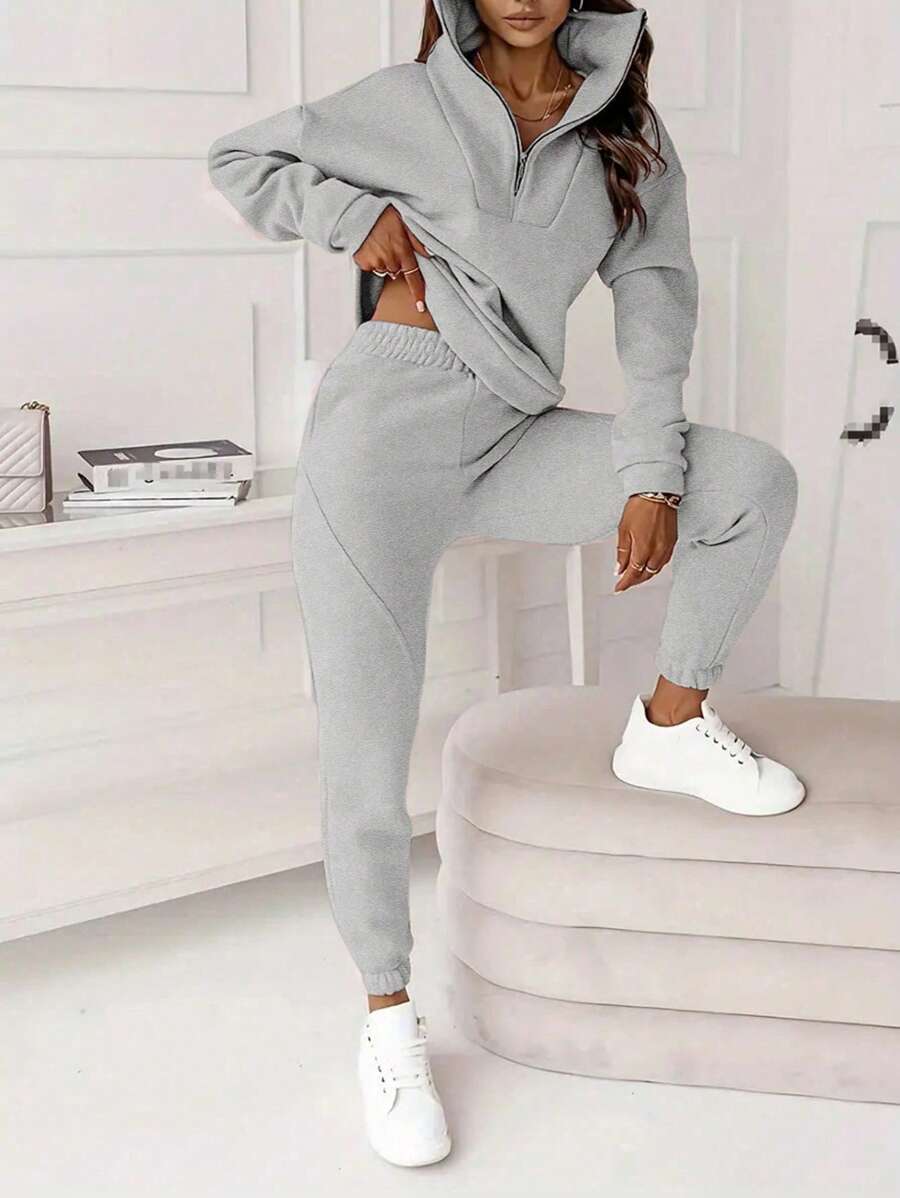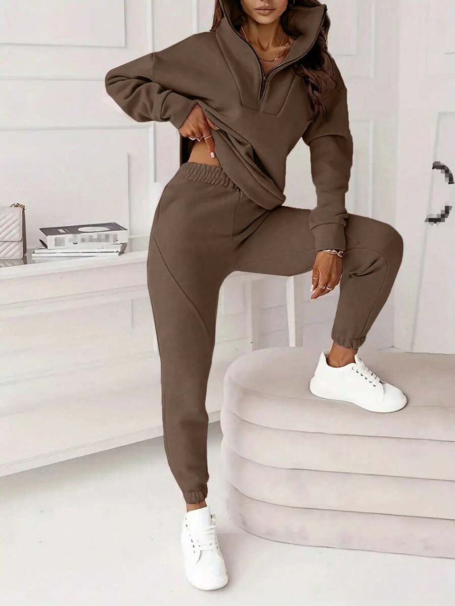 Ženski set prevelikih dukserica i trenerki u jednobojnoj boji za jesen