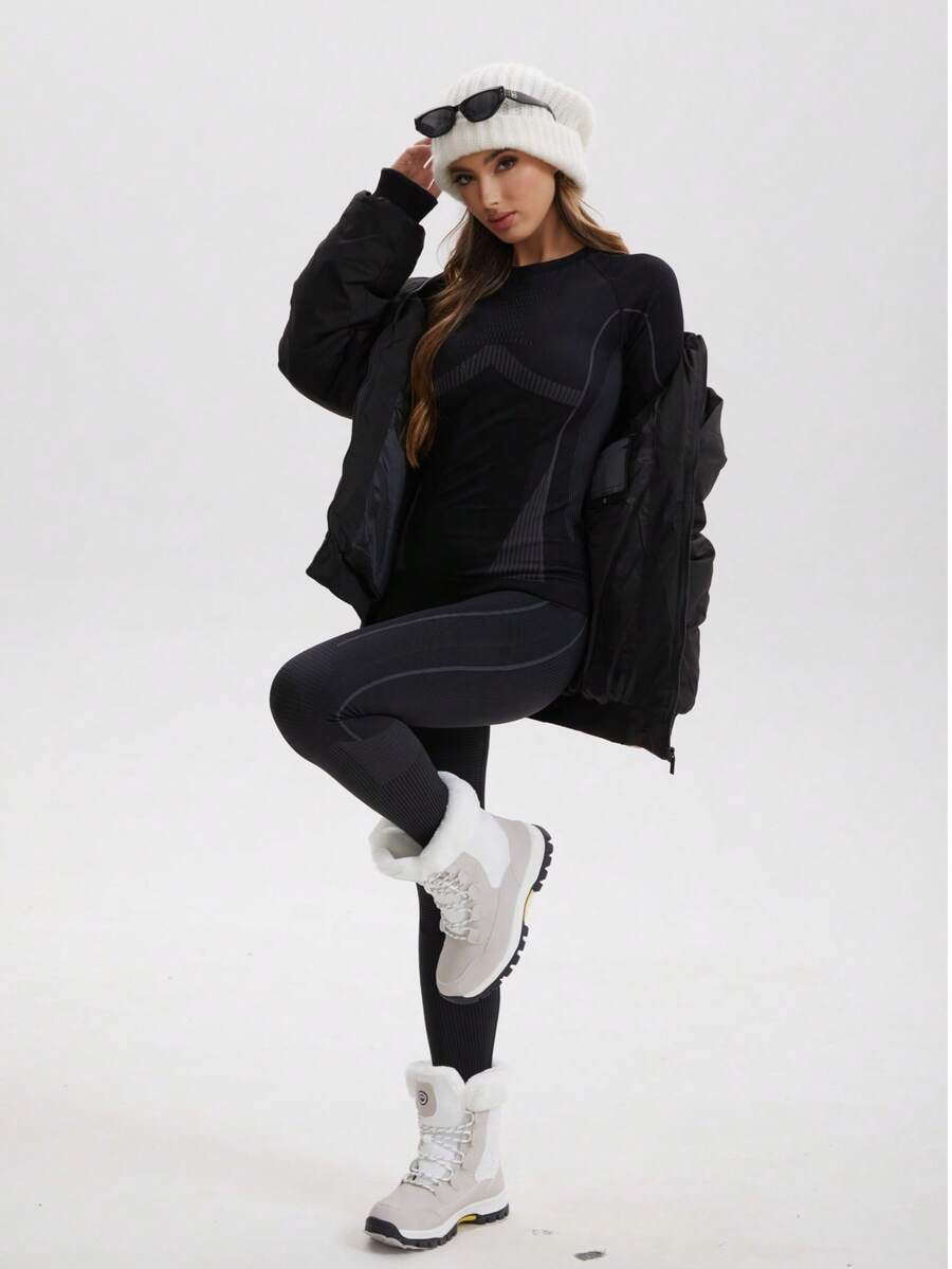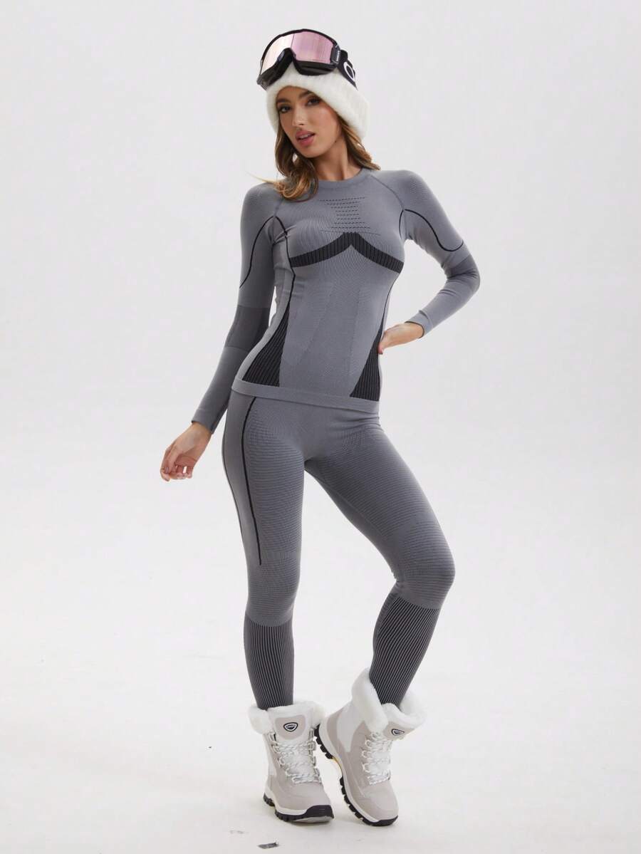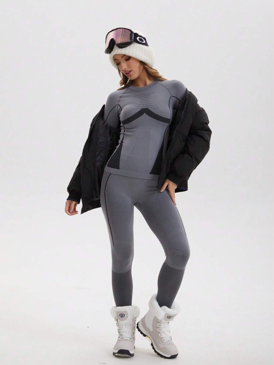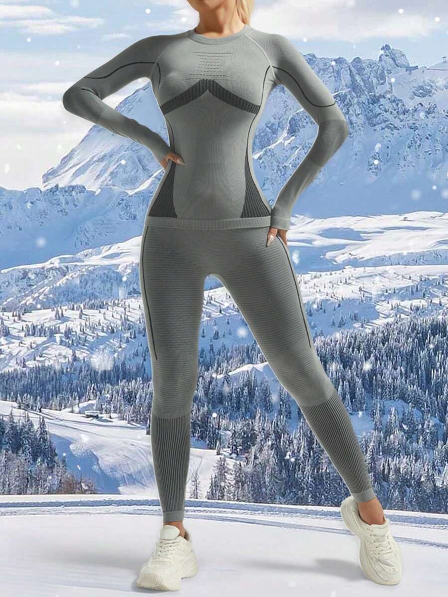 Zimski Ženski Božićni Set Odjeće za Sport s Dugim Rukavima, Bešavne Funkcionalne Termalne Donje Rublje, Ženski Ski Odijelo, Zimske Ženske Trenerke, Fleece Termalne Donje Rublje