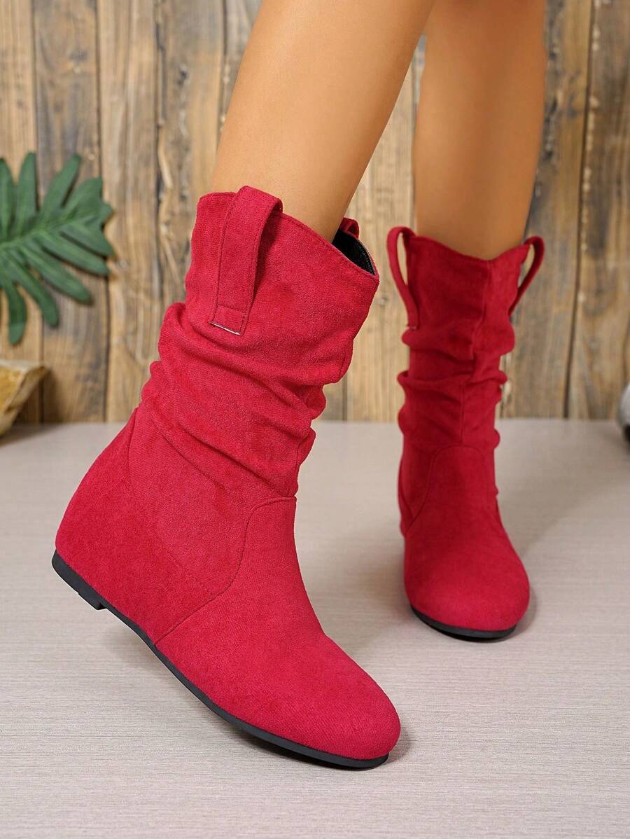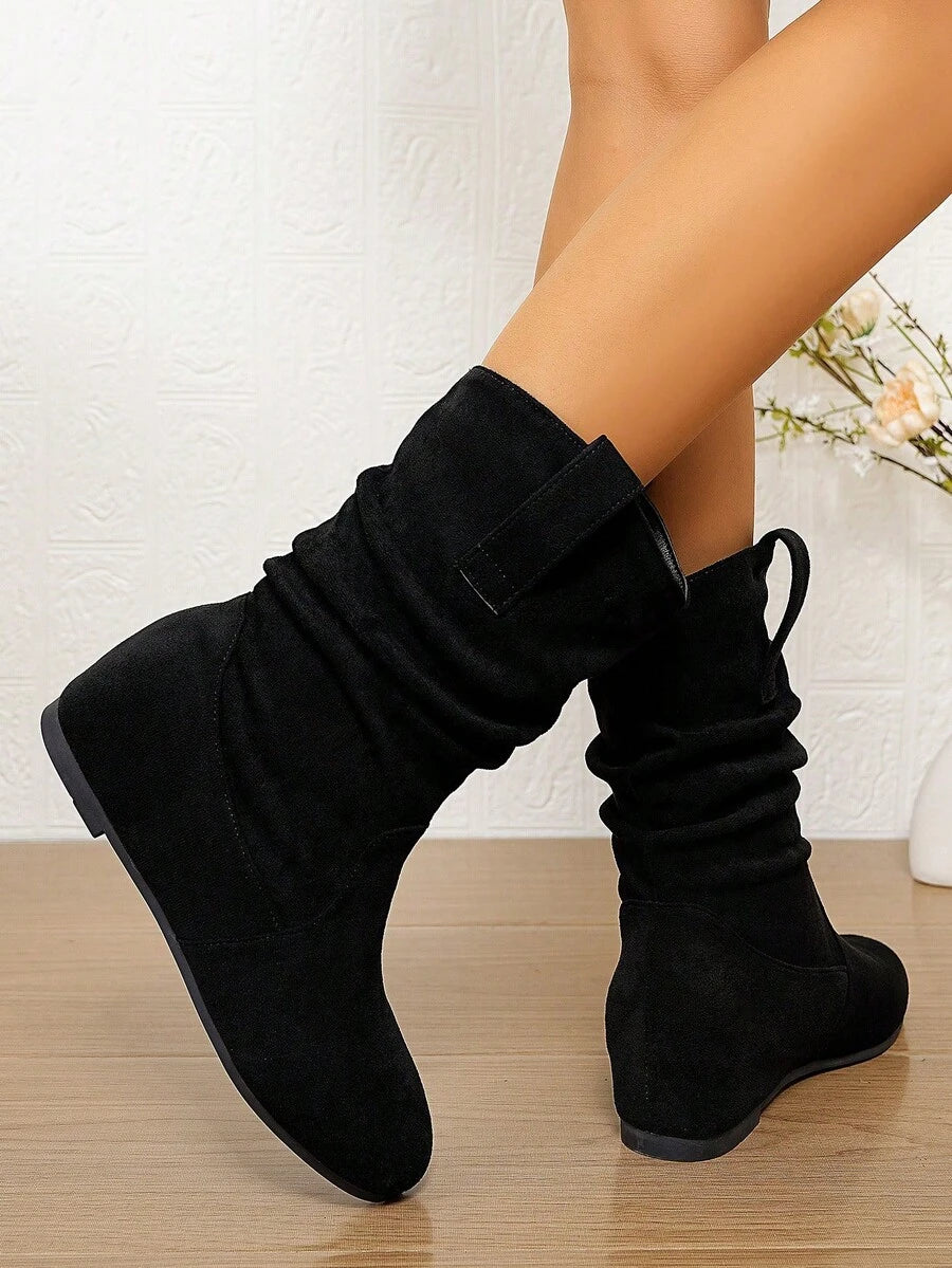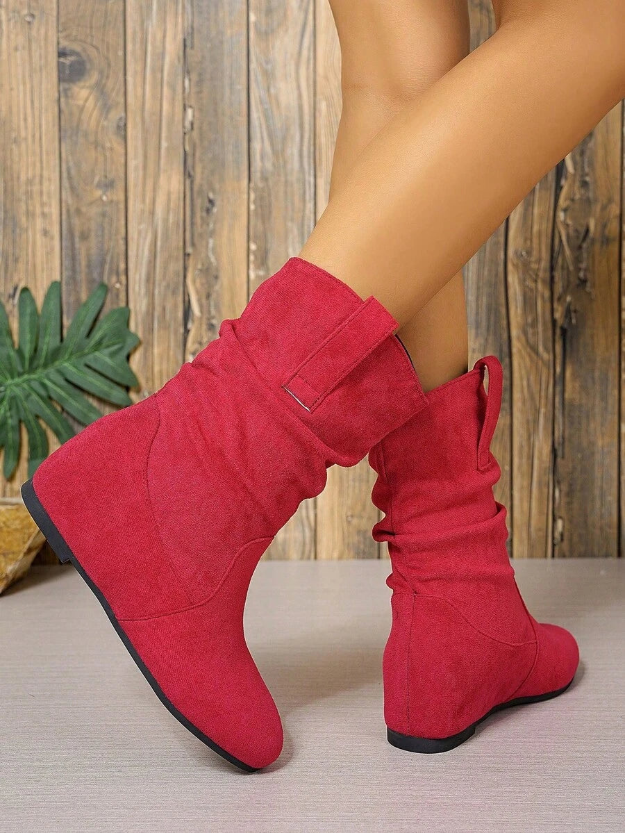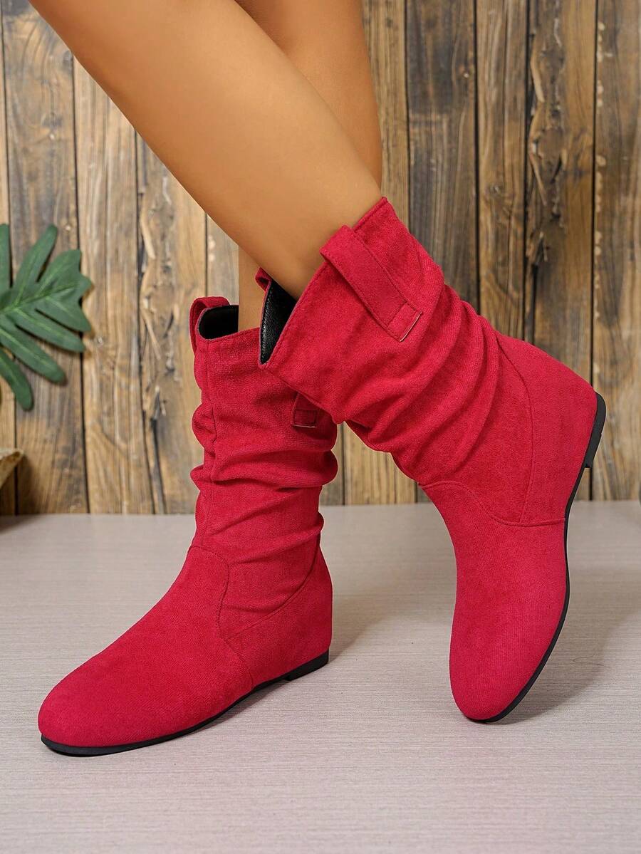 1 Par Ženskih Novih Stilskih Udobnih Čizama sa Okruglim Prstom, Platforma, Srednje Visoke, Postavljene Flisom