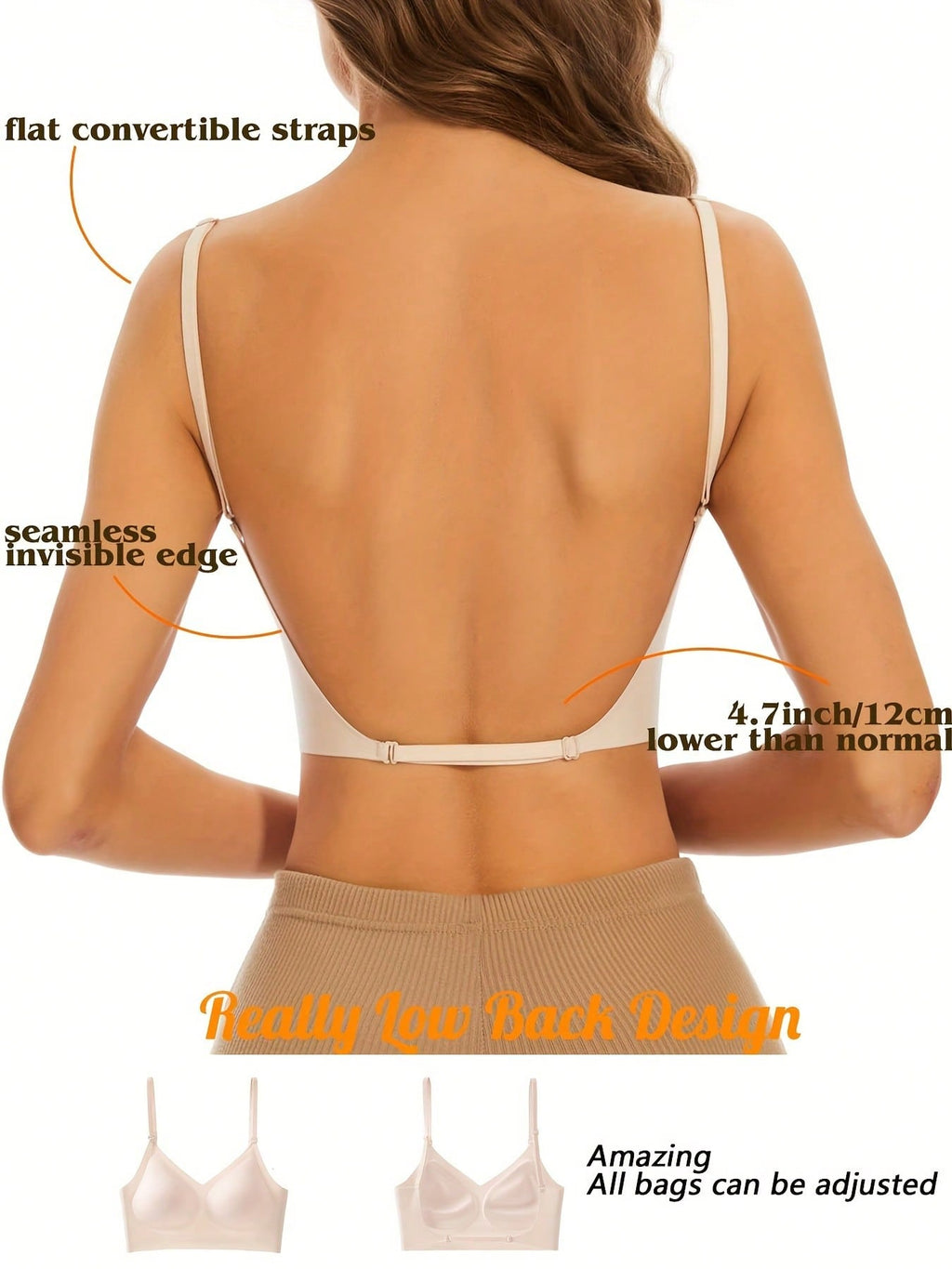 1 komad Bešavni grudnjak za trudnice bez leđa, 3-smjerni stil, žene, ljeto