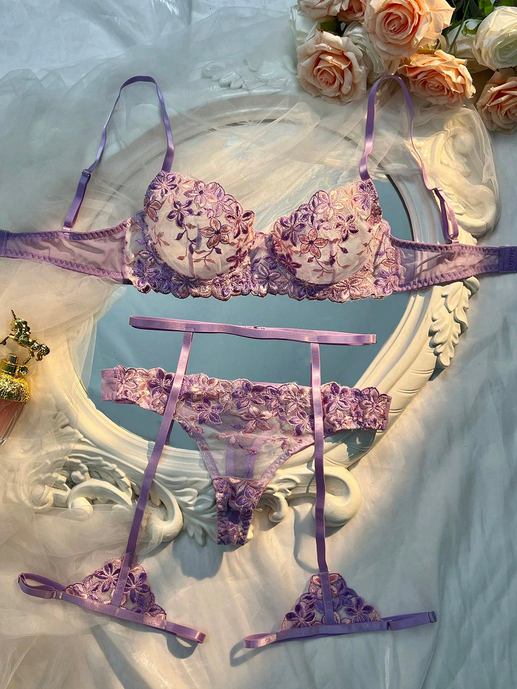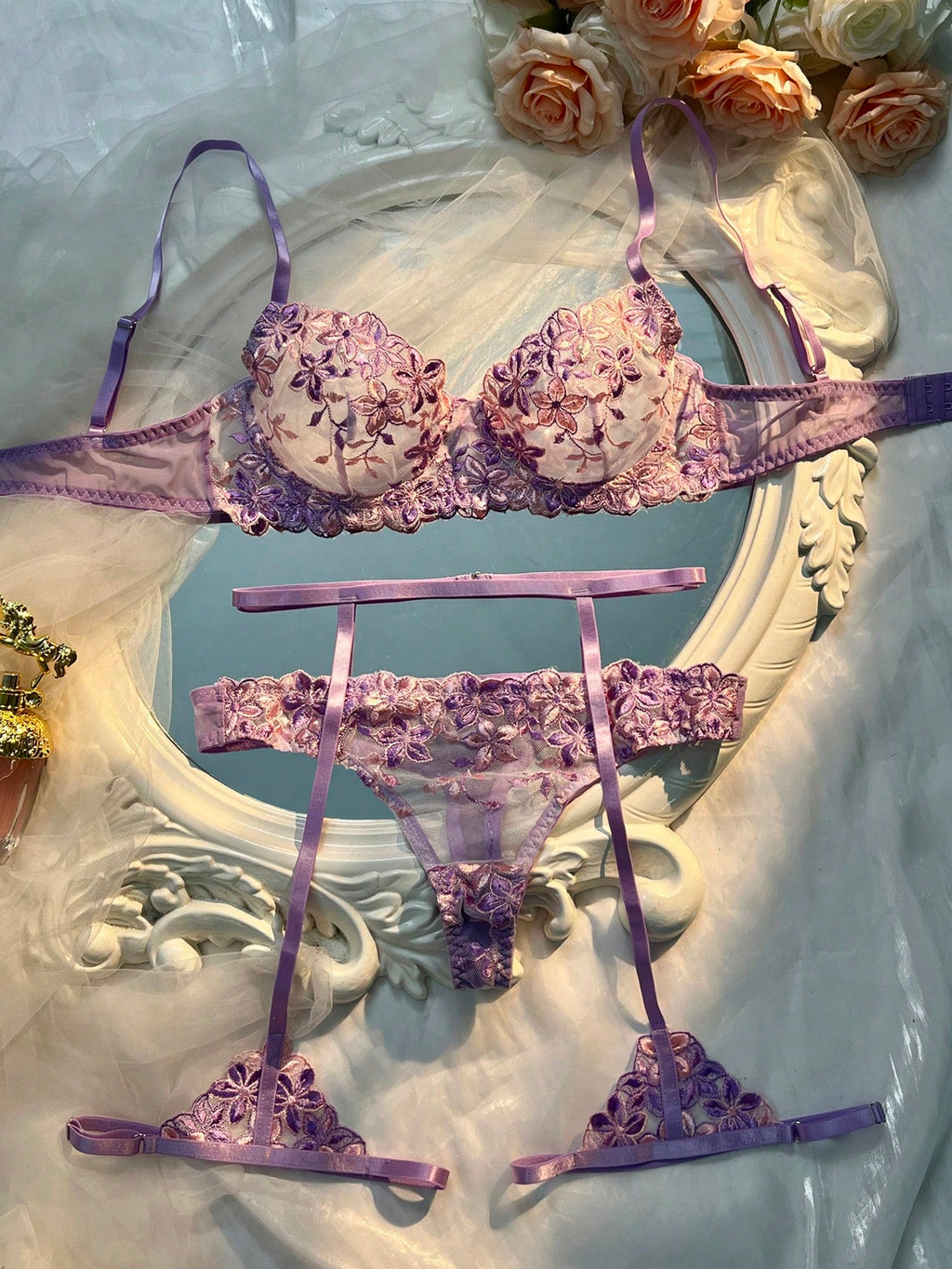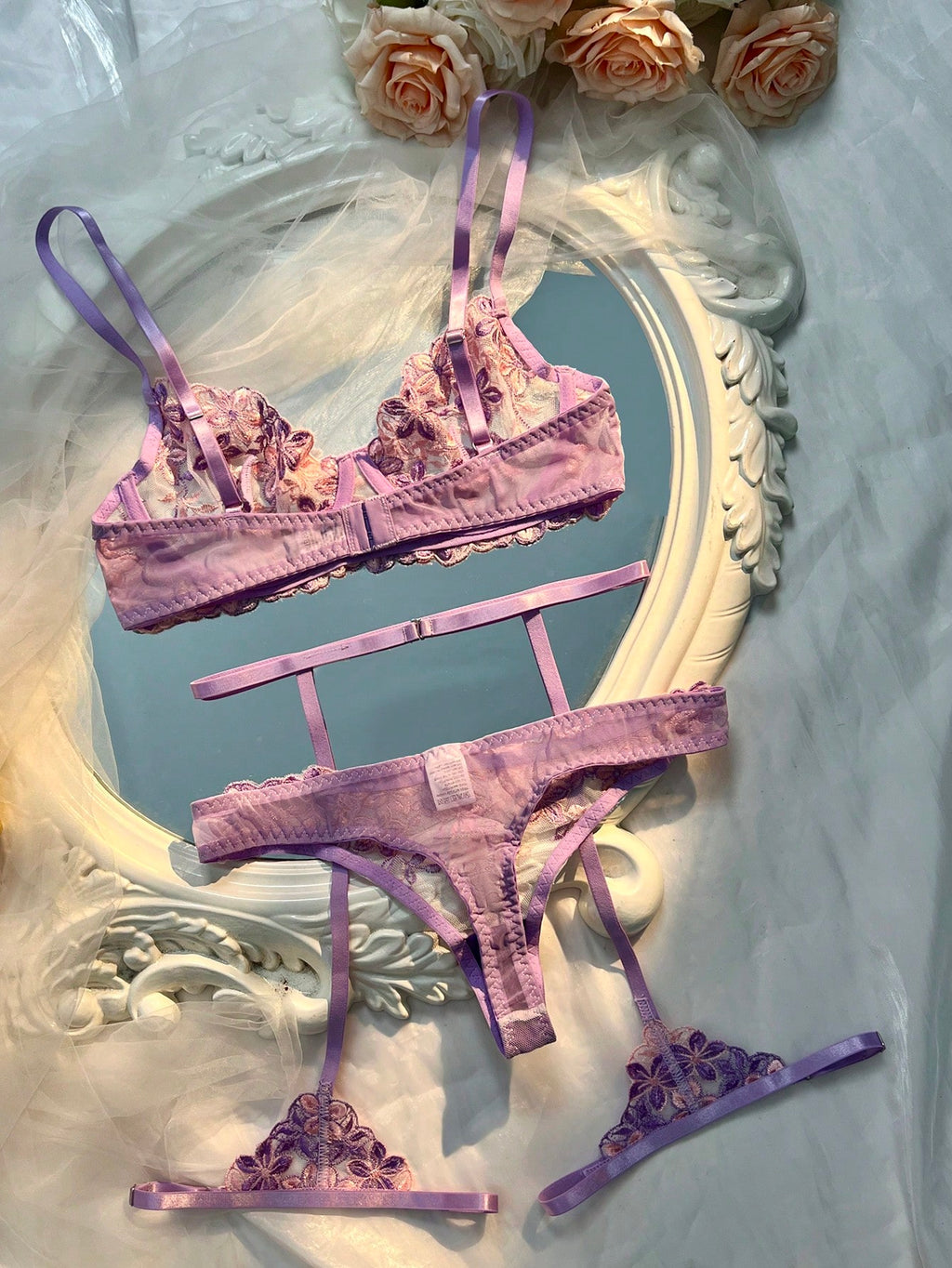 3 Stücke leicht violettes, seksi Dessous Set für Damen