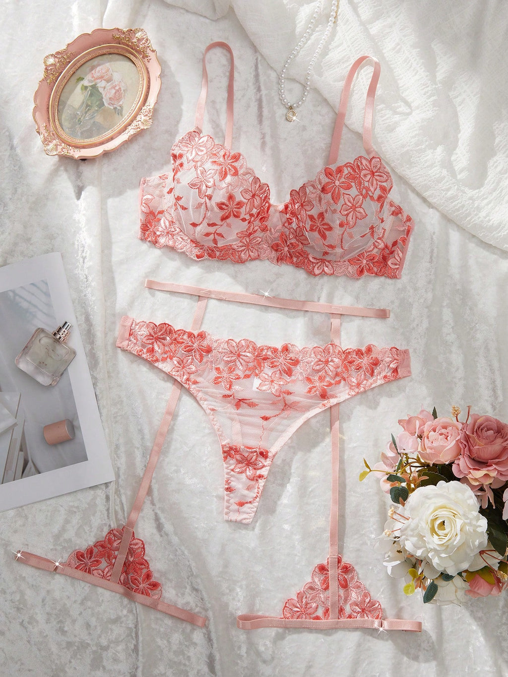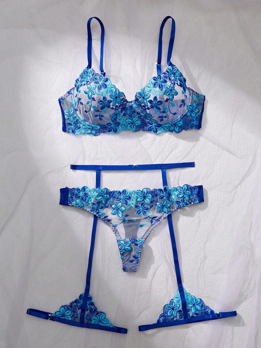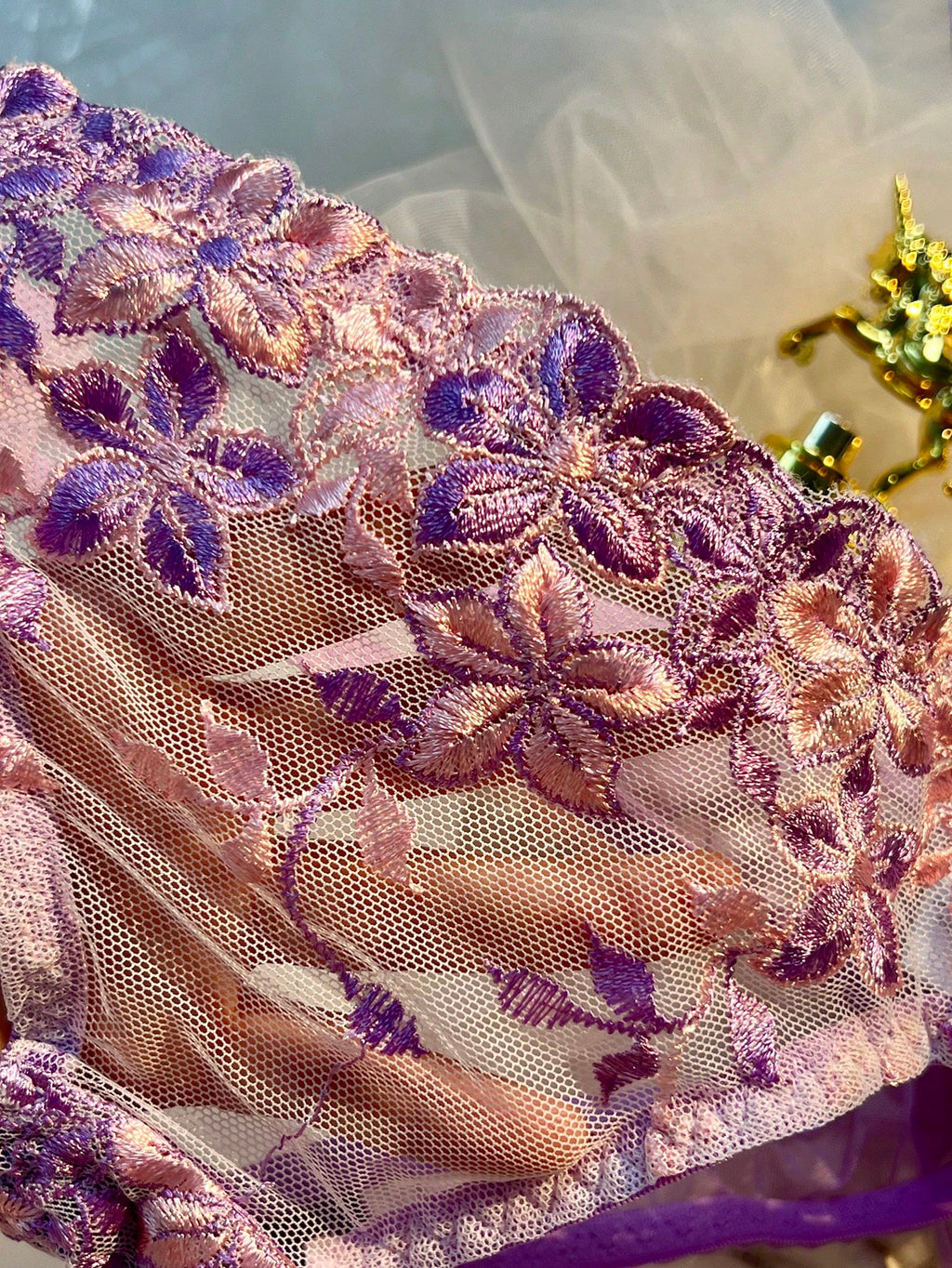 3 Stücke leicht violettes, seksi Dessous Set für Damen