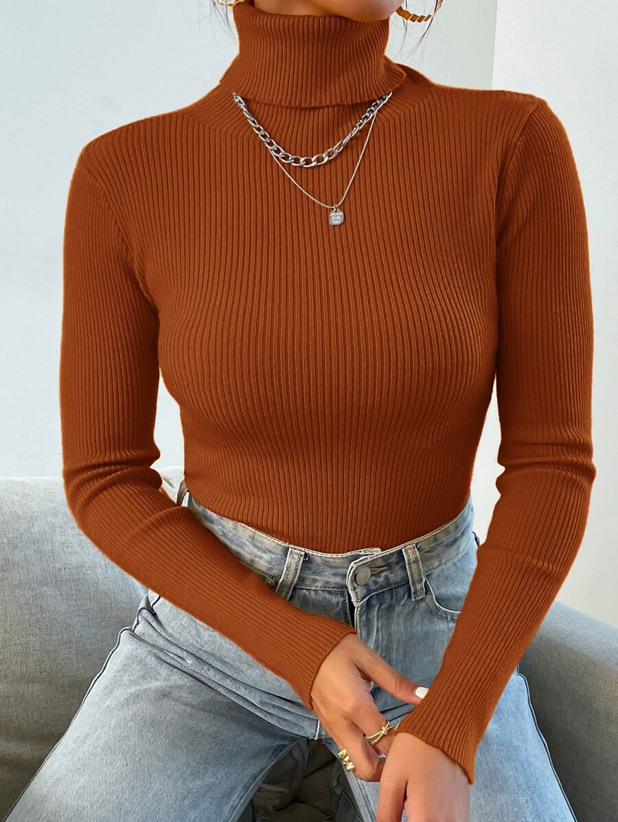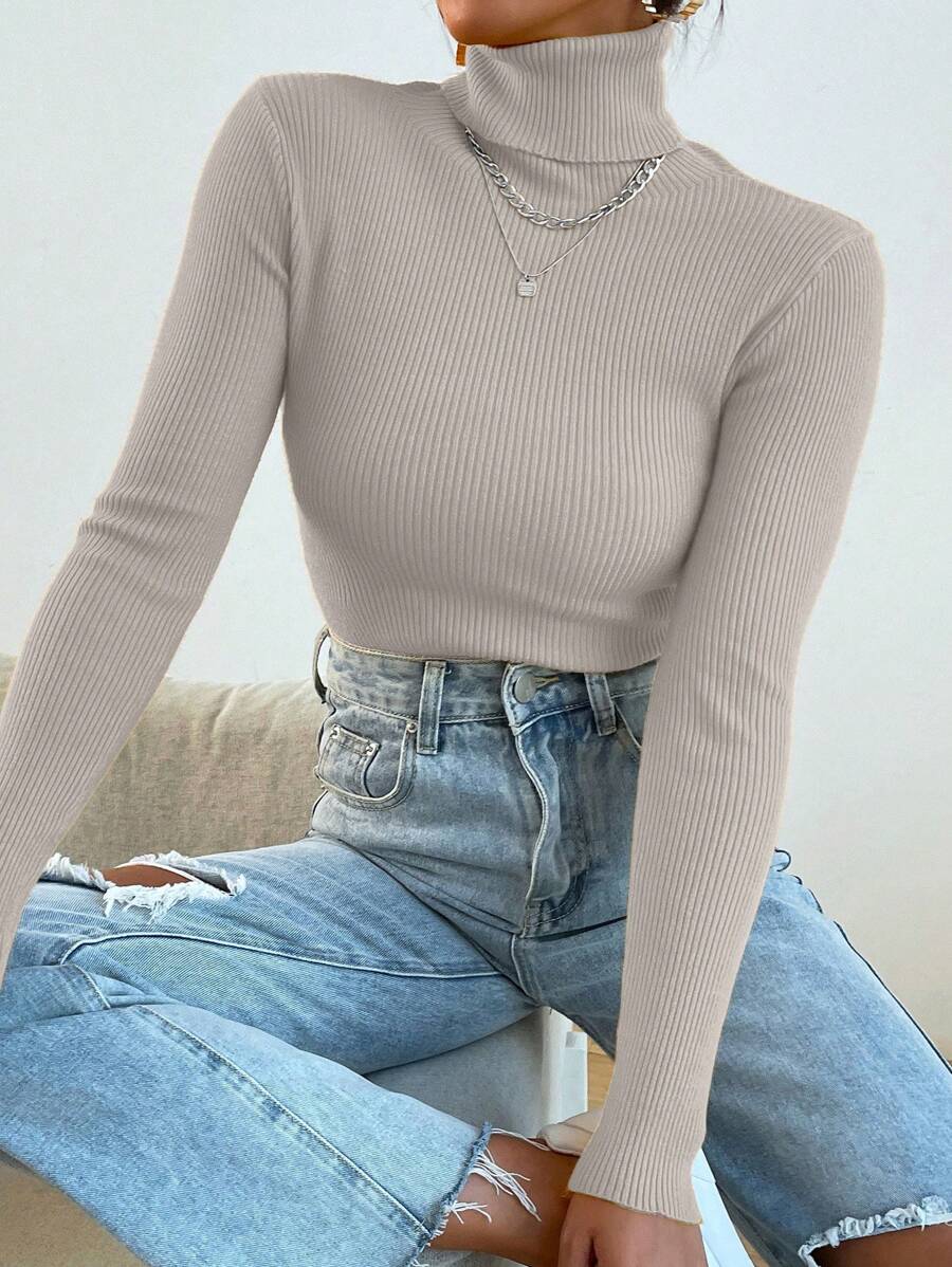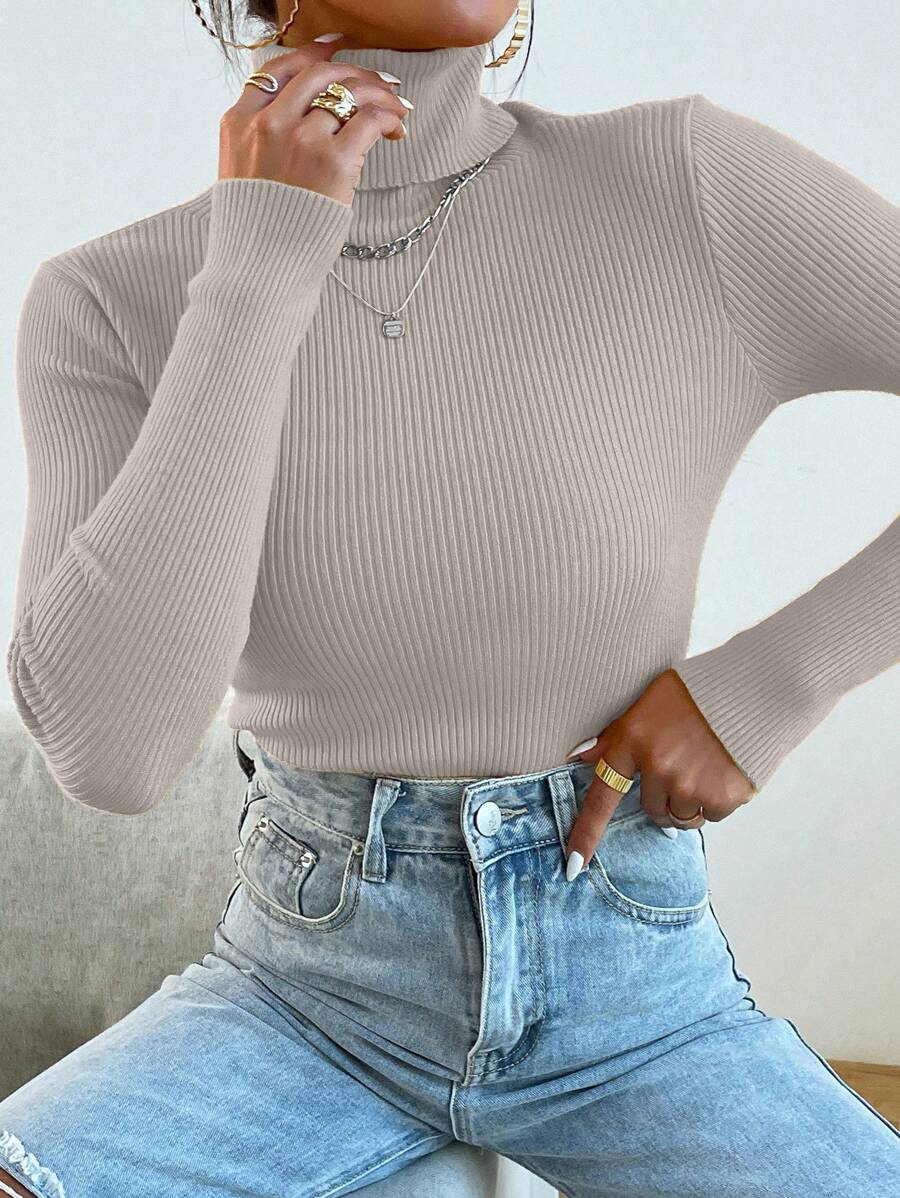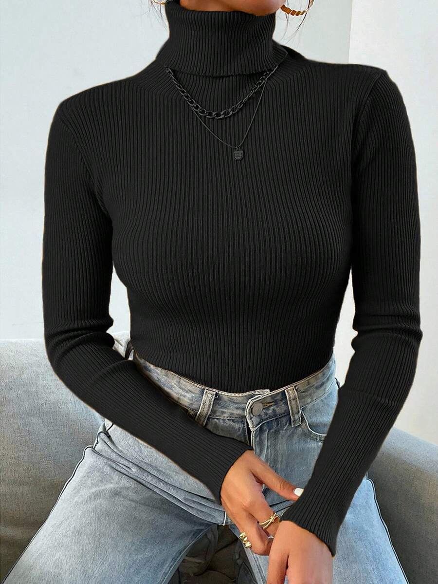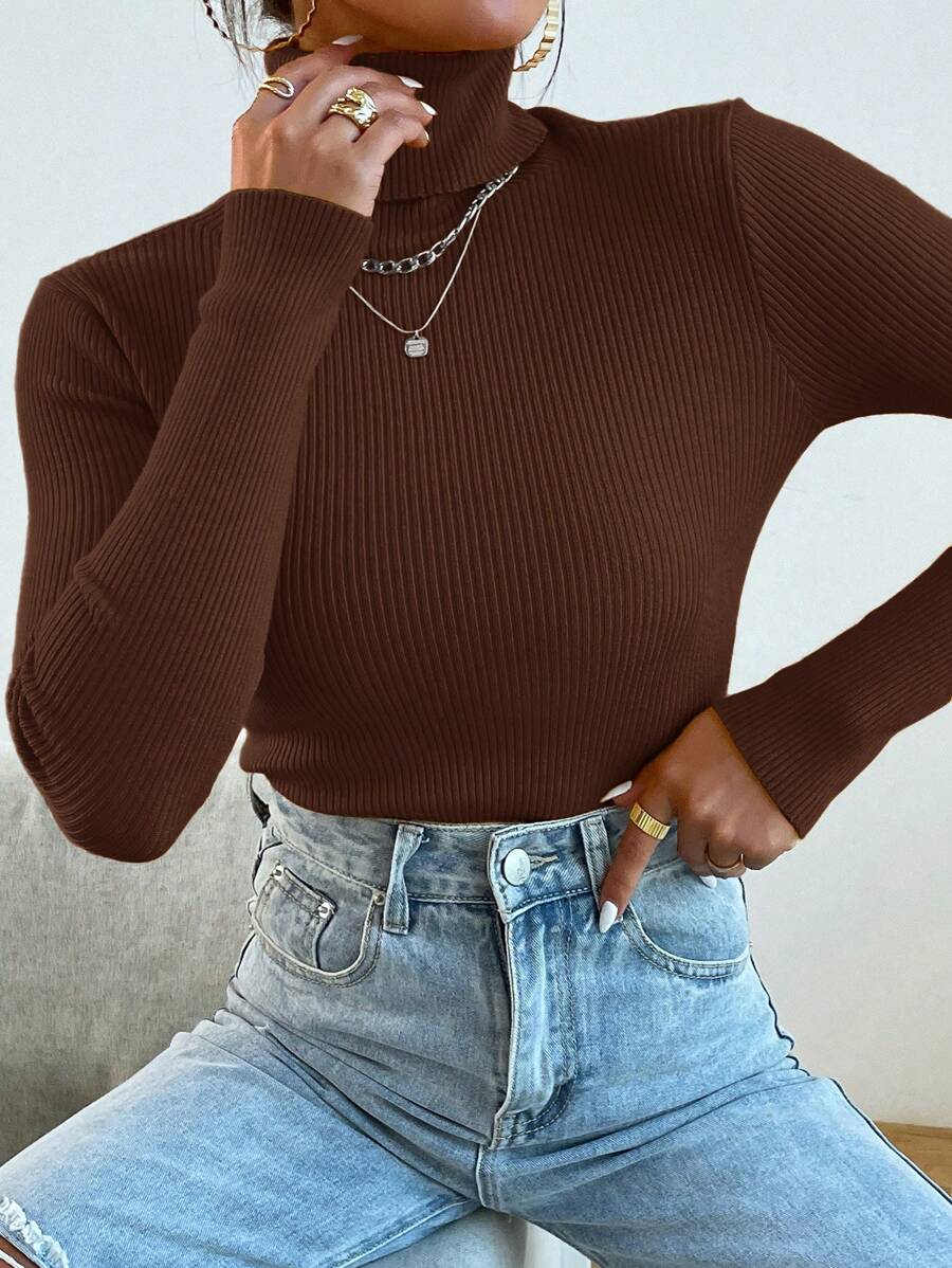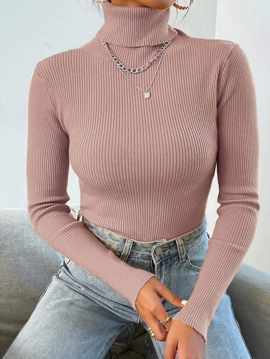 Aidyla Basic Turtleneck Ribbed Knit Sweater Without Necklace,Long Sleeve Tops Knit Pullover Fall Winter Outfit