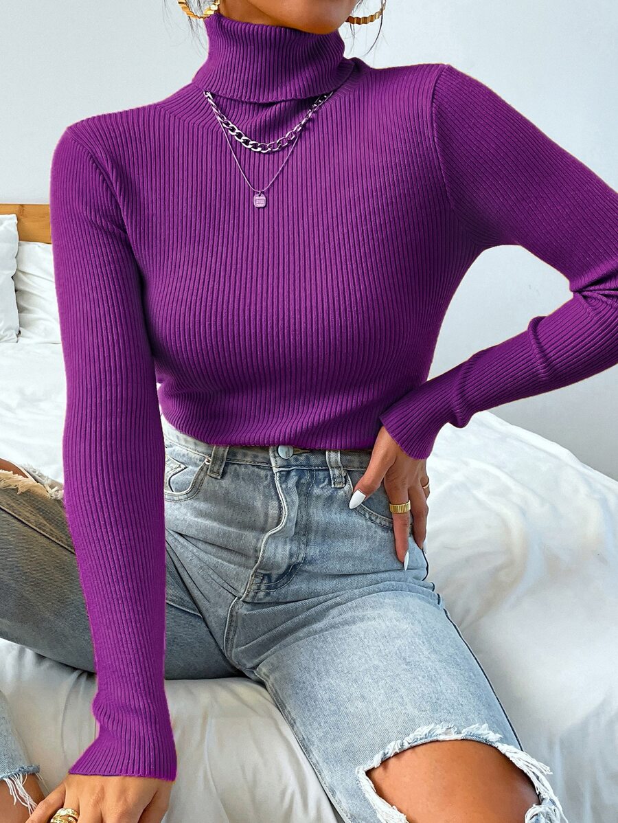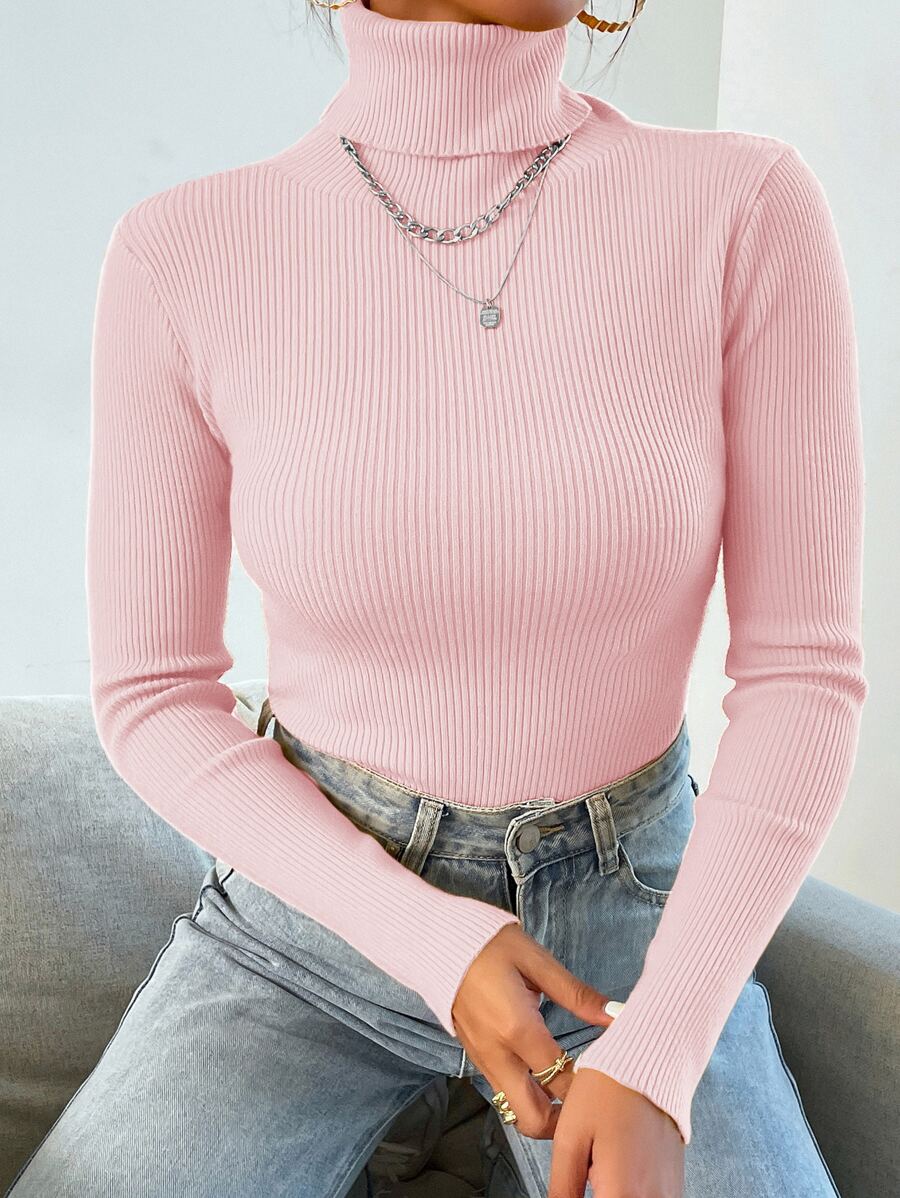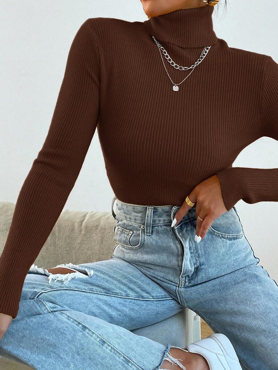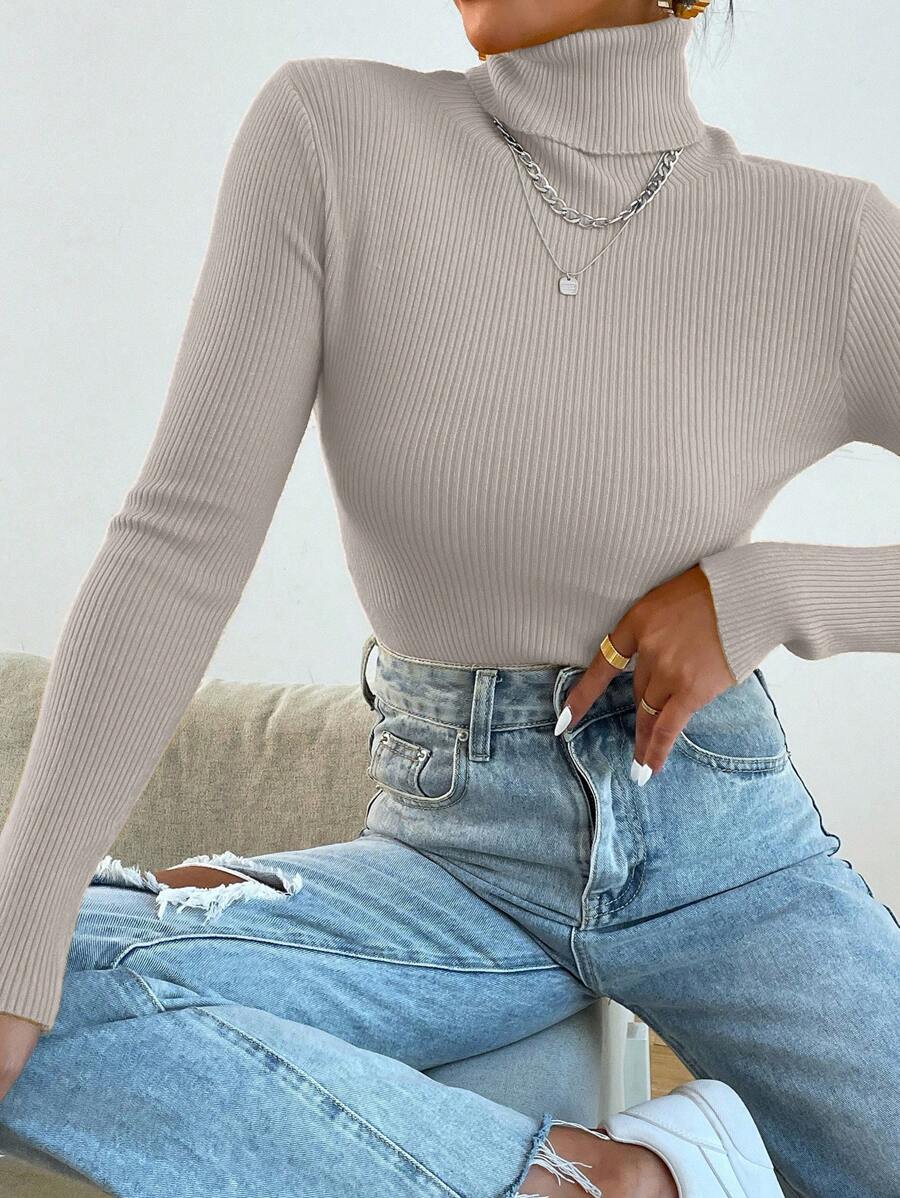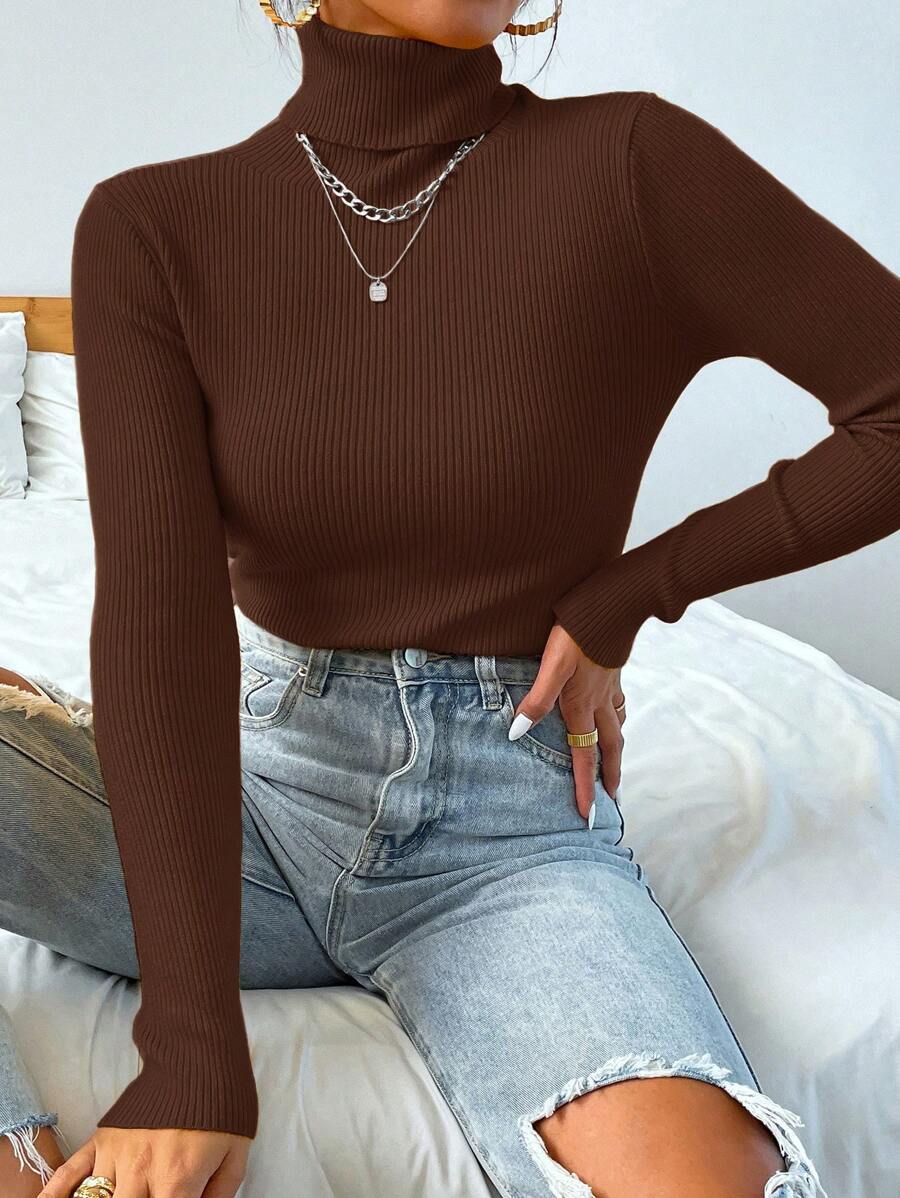 Aidyla Basic Turtleneck Ribbed Knit Sweater Without Necklace,Long Sleeve Tops Knit Pullover Fall Winter Outfit