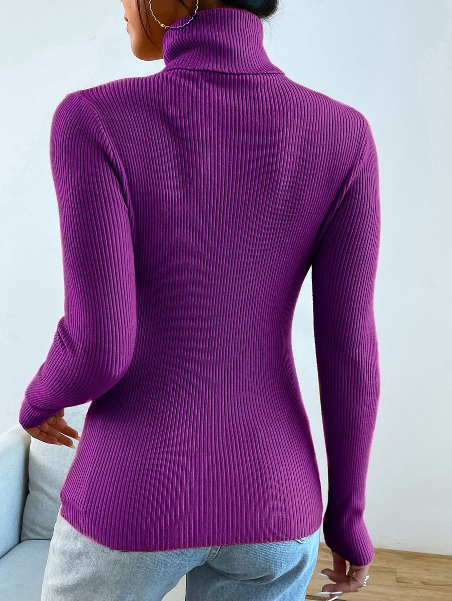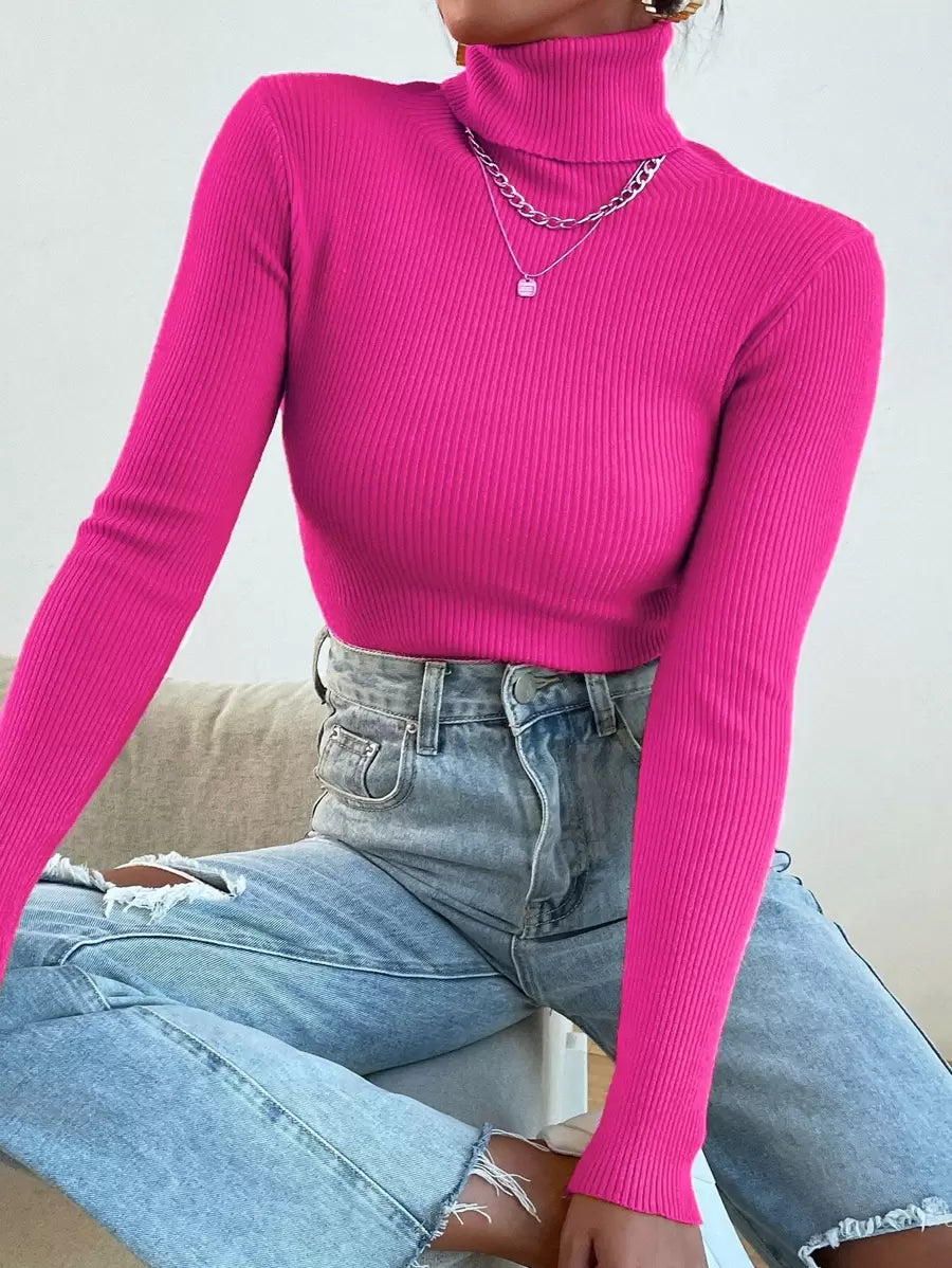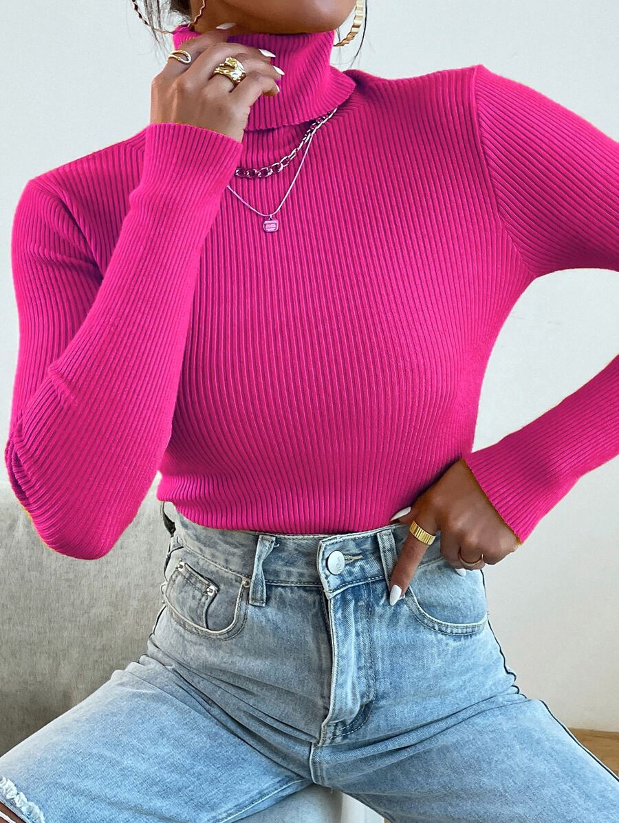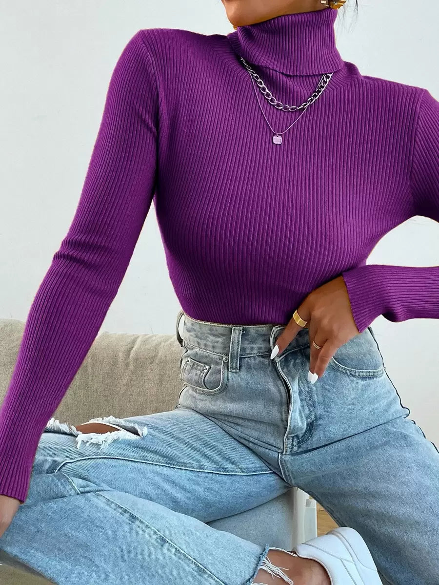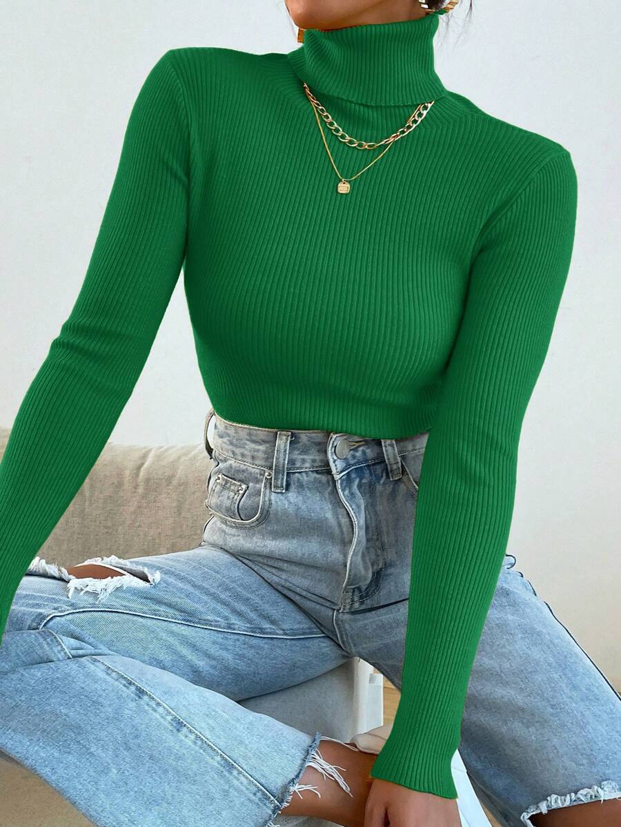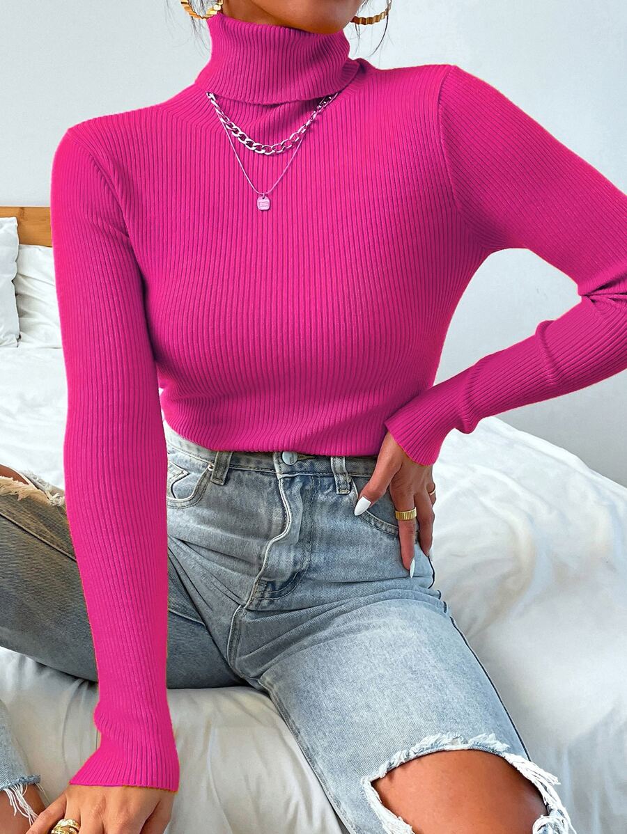 Aidyla Basic Turtleneck Ribbed Knit Sweater Without Necklace,Long Sleeve Tops Knit Pullover Fall Winter Outfit