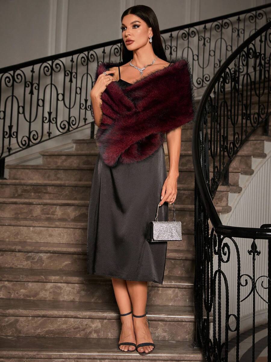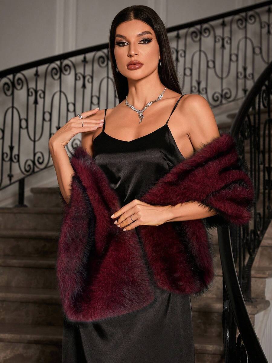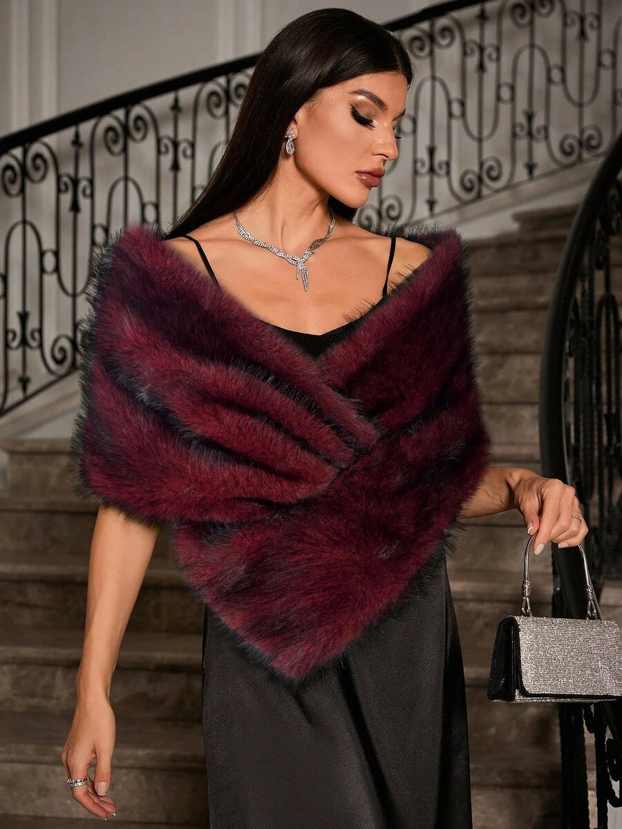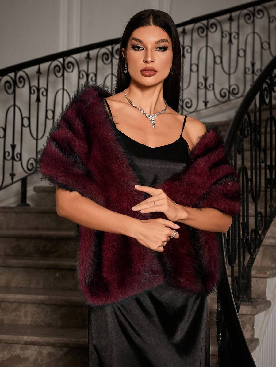 Allurite ženska pelerina od umjetnog krzna u jednobojnoj varijanti — velika crvena zimska pelerina idealna za zabave i praznične proslave