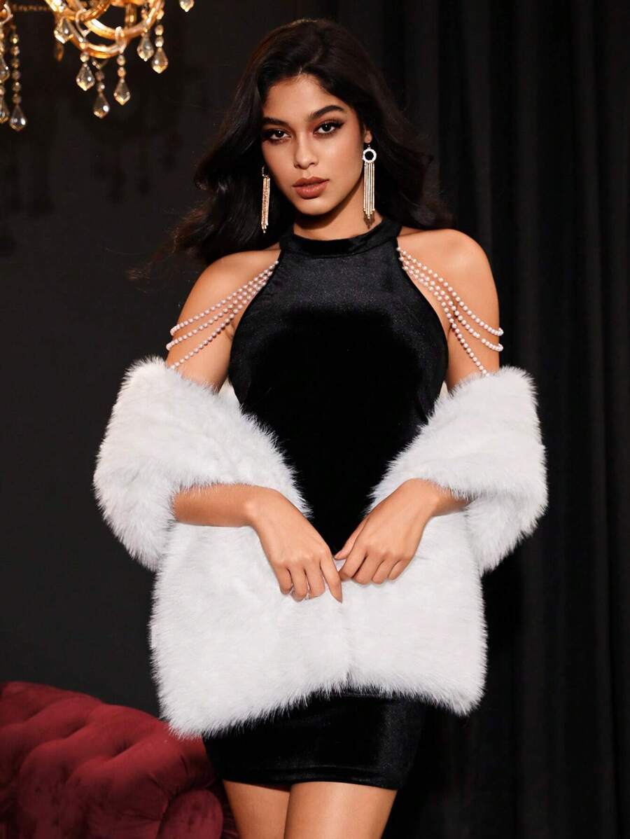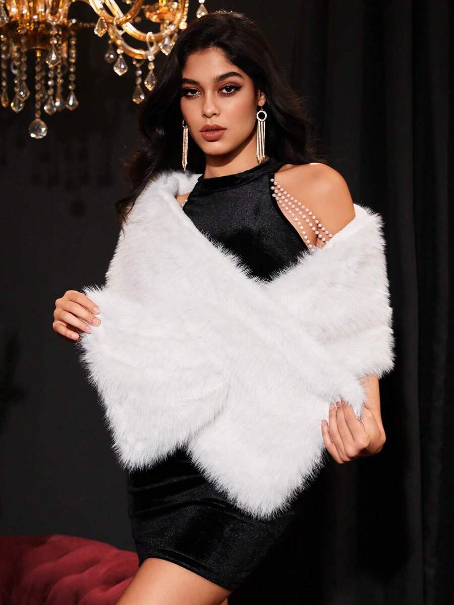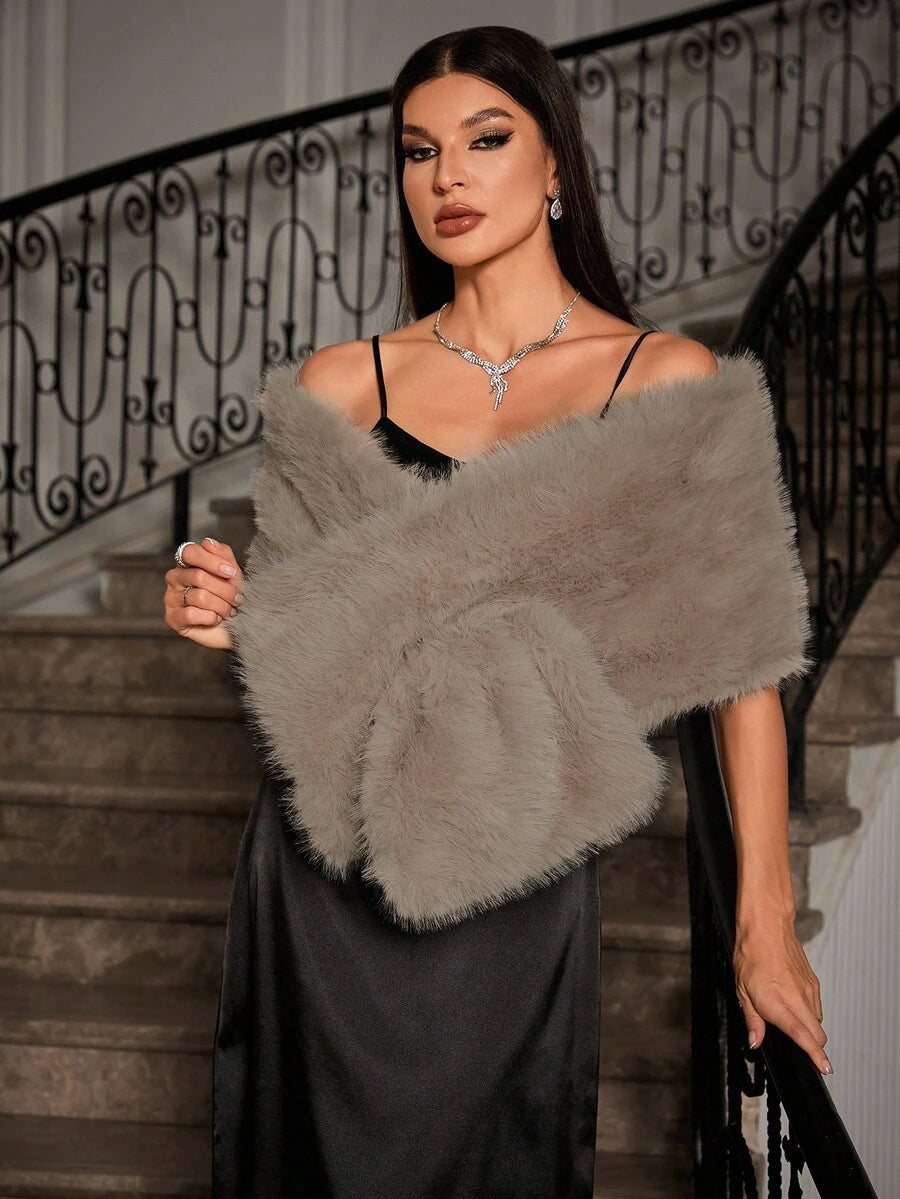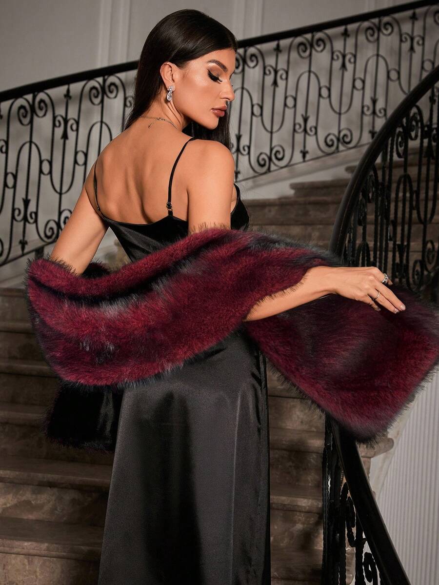 Allurite ženska pelerina od umjetnog krzna u jednobojnoj varijanti — velika crvena zimska pelerina idealna za zabave i praznične proslave