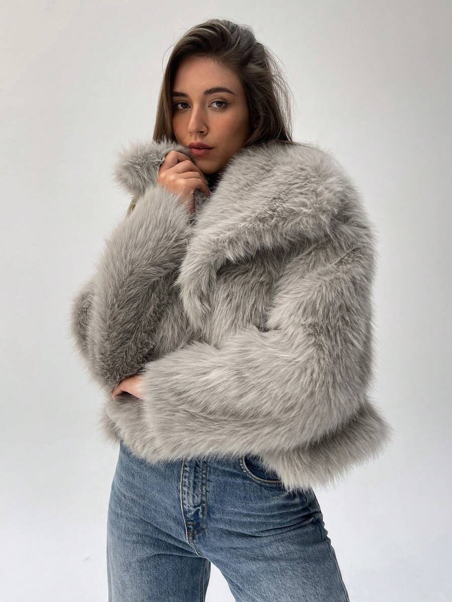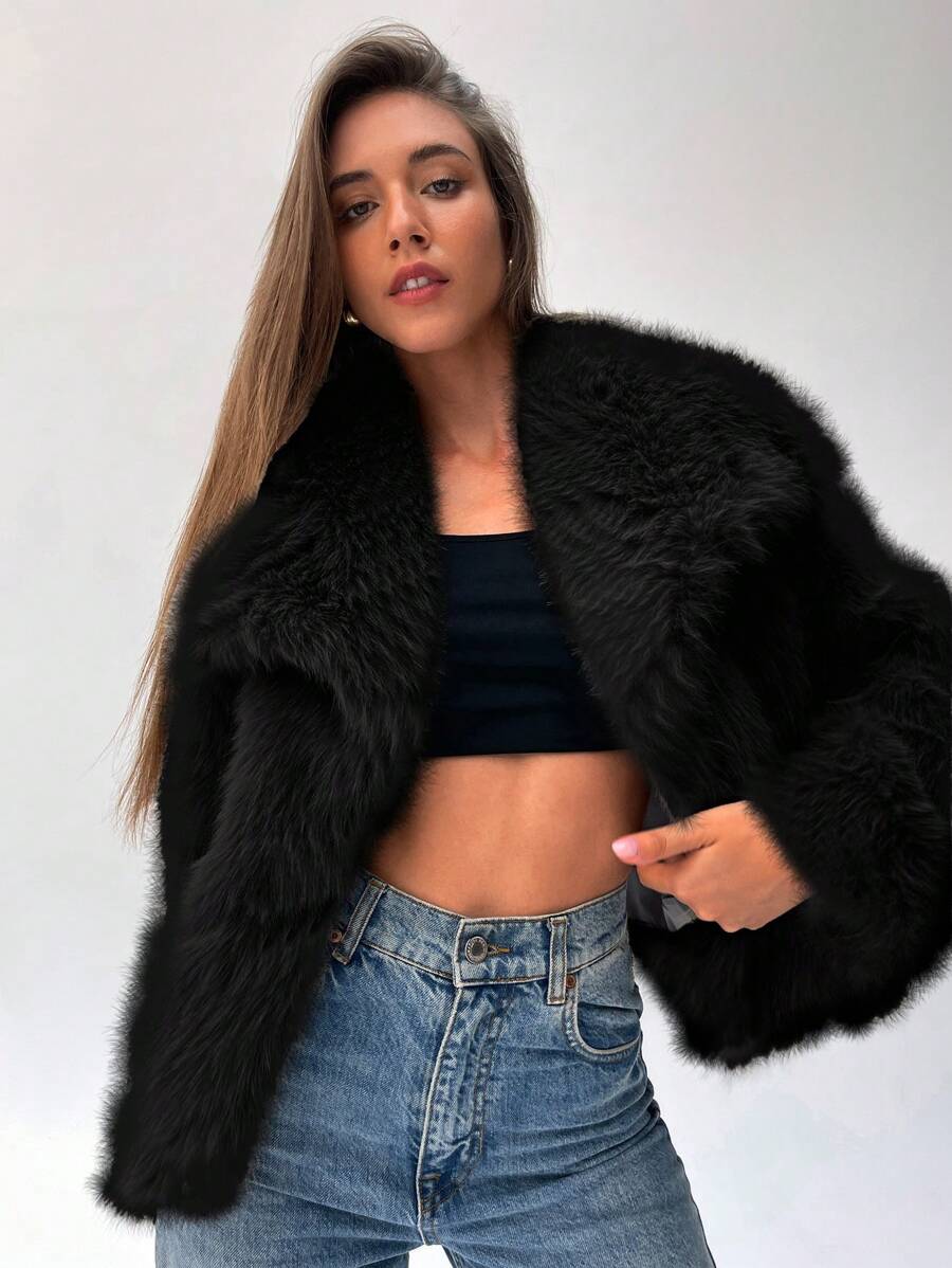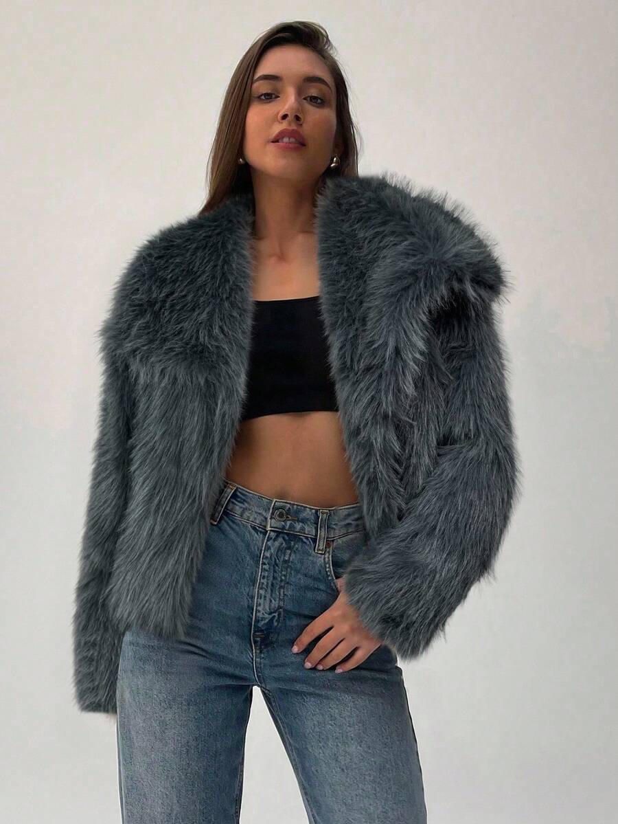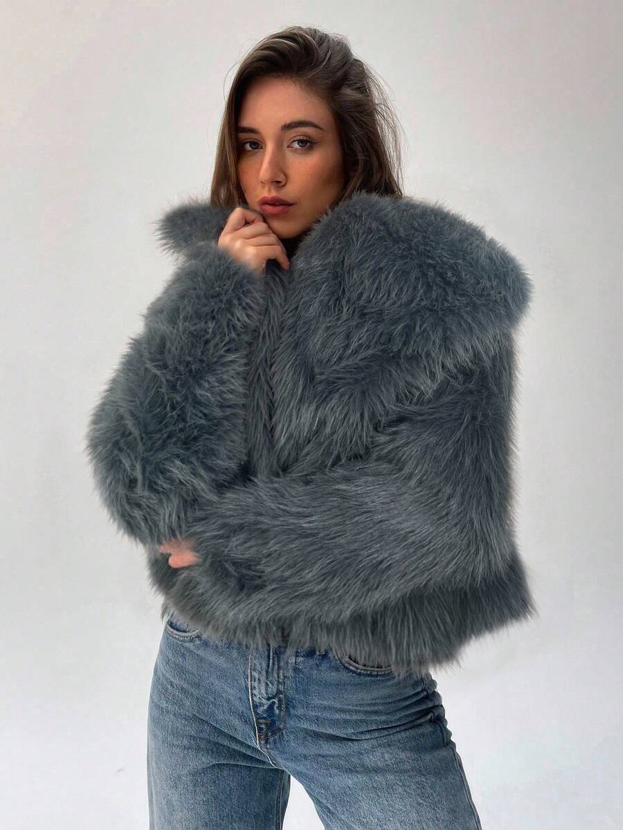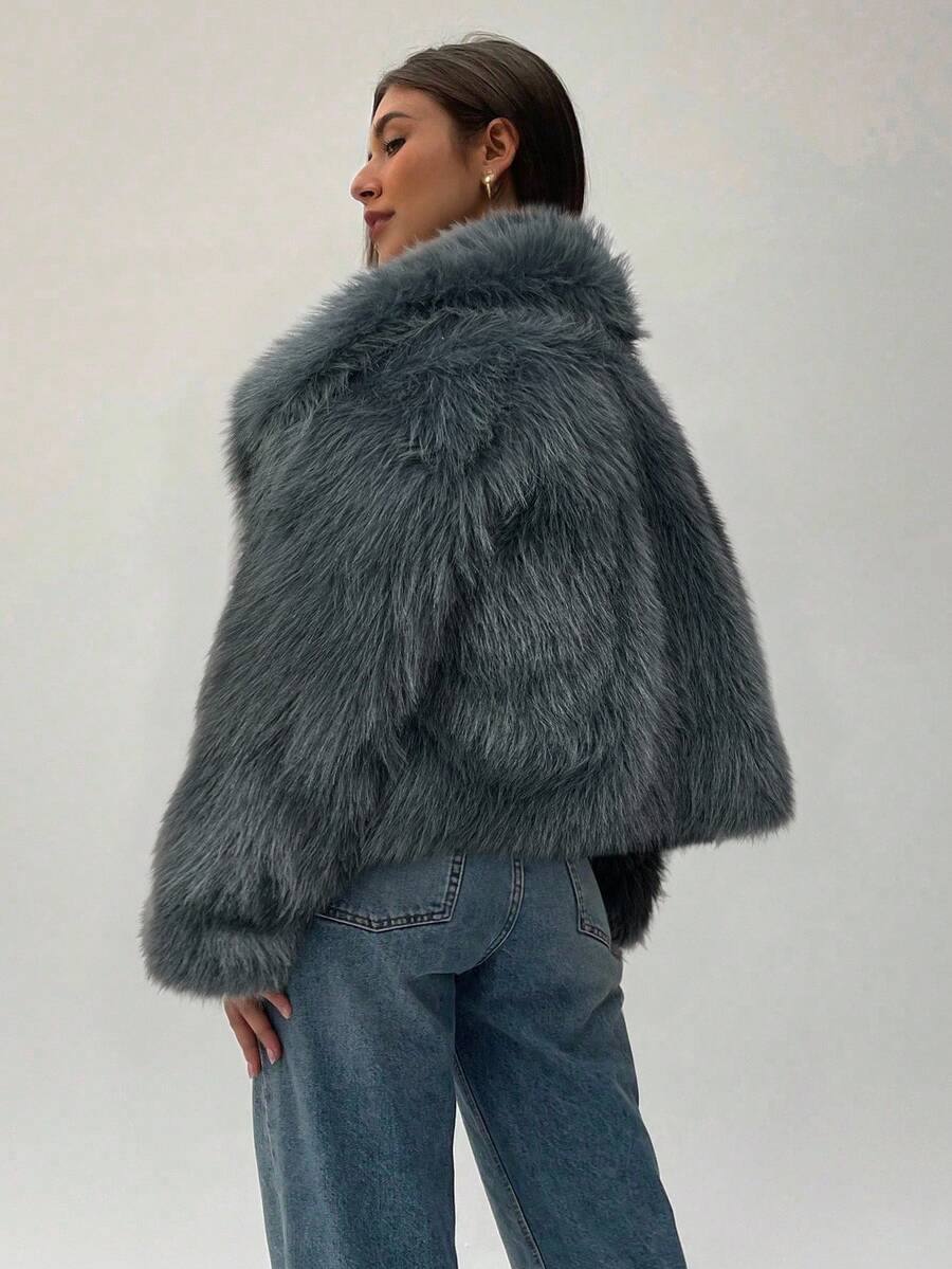 Aloruh moderna ženska jakna od umjetnog krzna u jednobojnom dizajnu, savršena za jesen i zimu