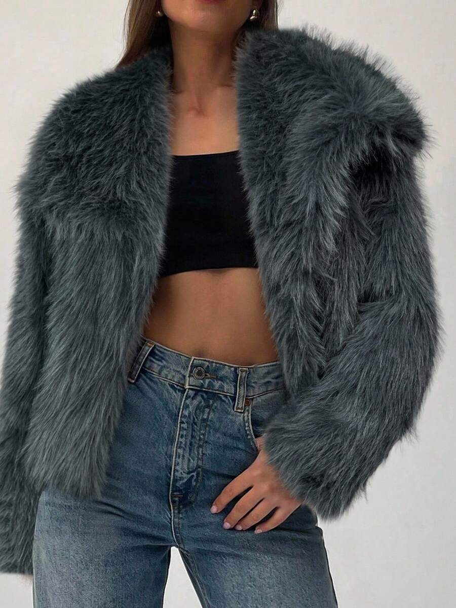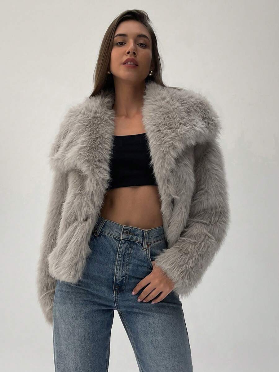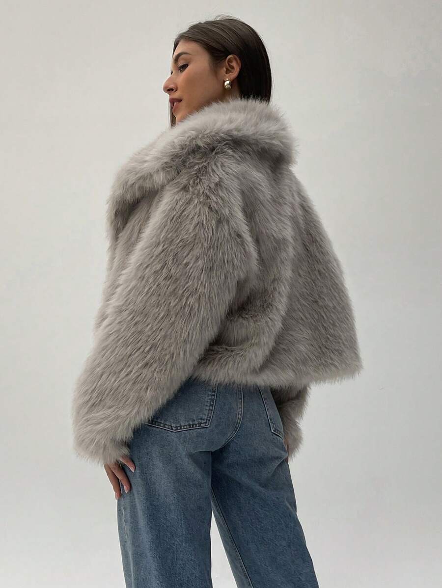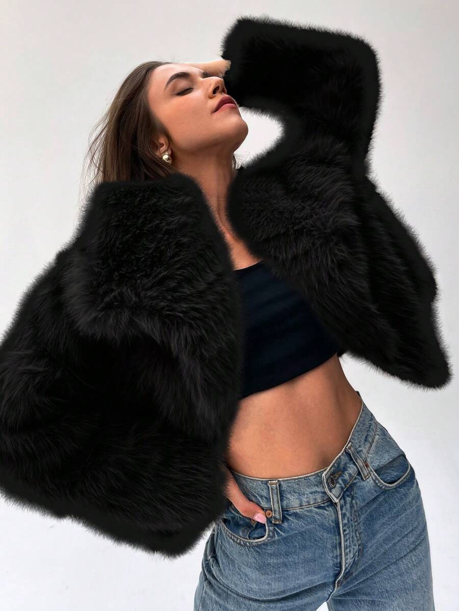 Aloruh moderna ženska jakna od umjetnog krzna u jednobojnom dizajnu, savršena za jesen i zimu