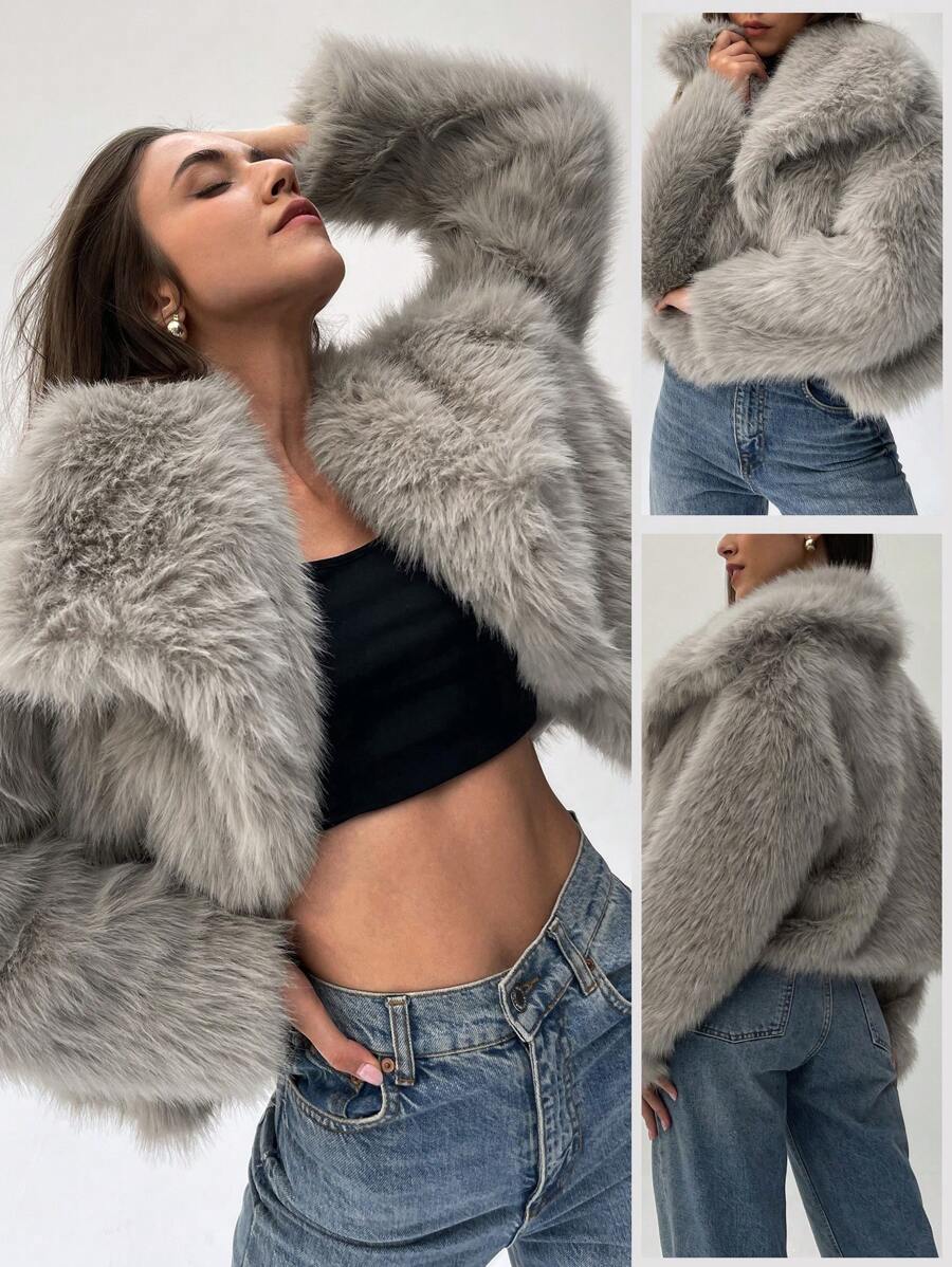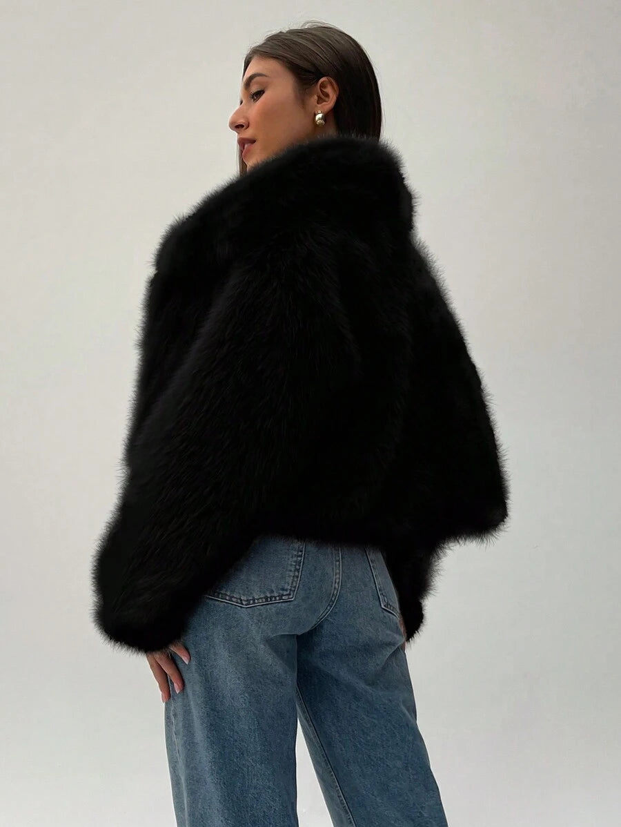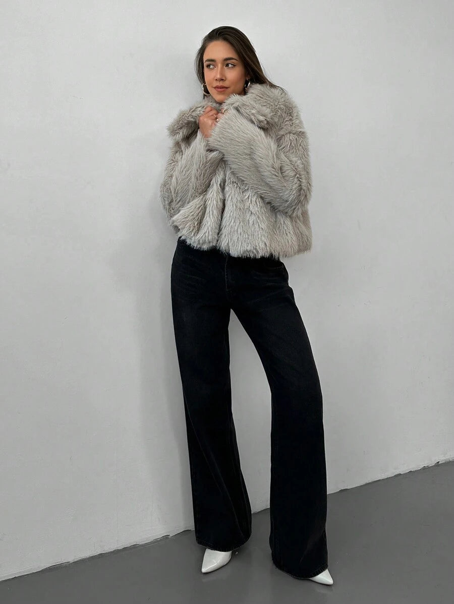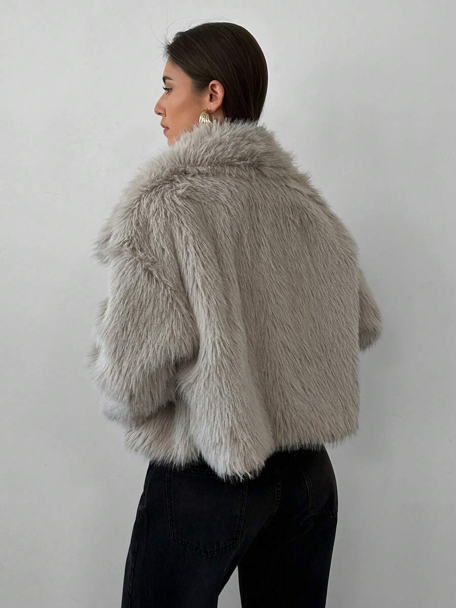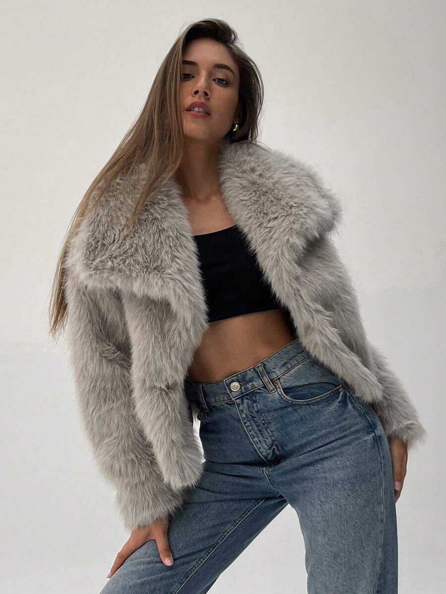 Aloruh moderna ženska jakna od umjetnog krzna u jednobojnom dizajnu, savršena za jesen i zimu