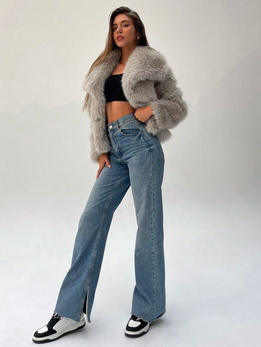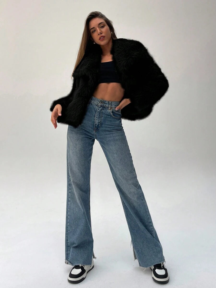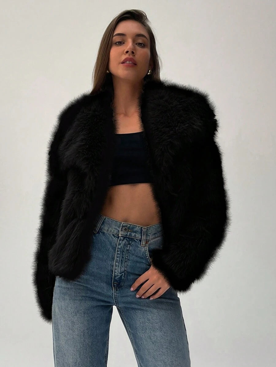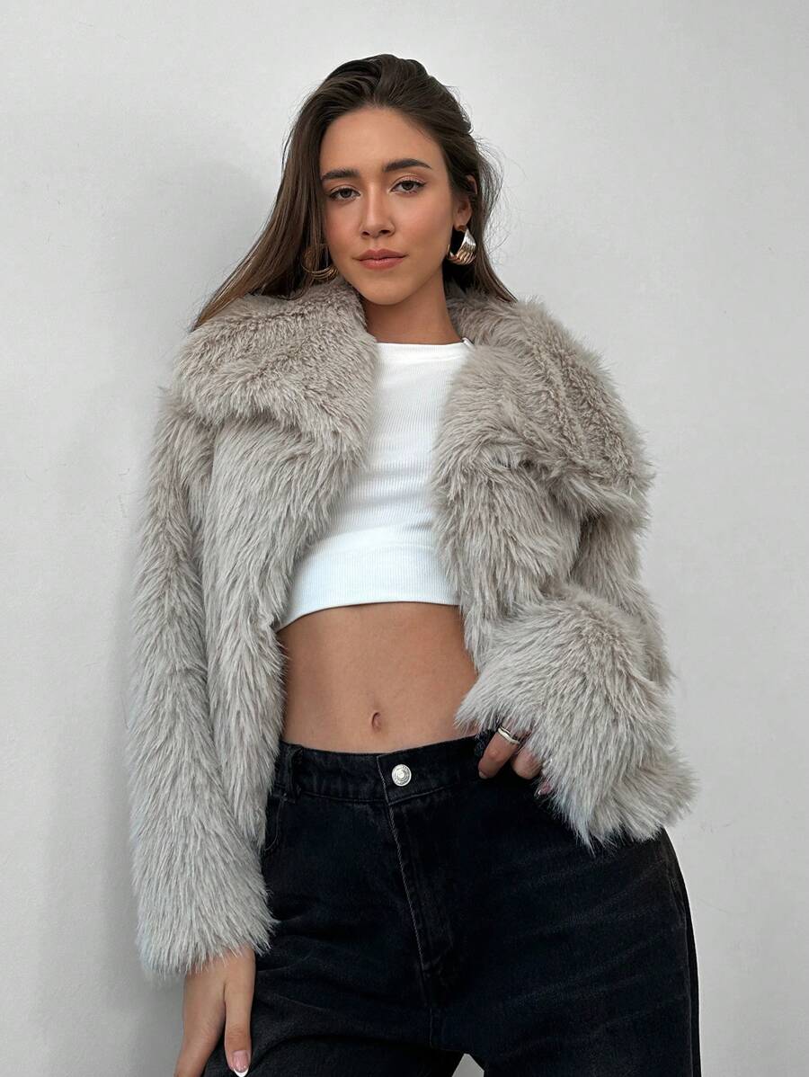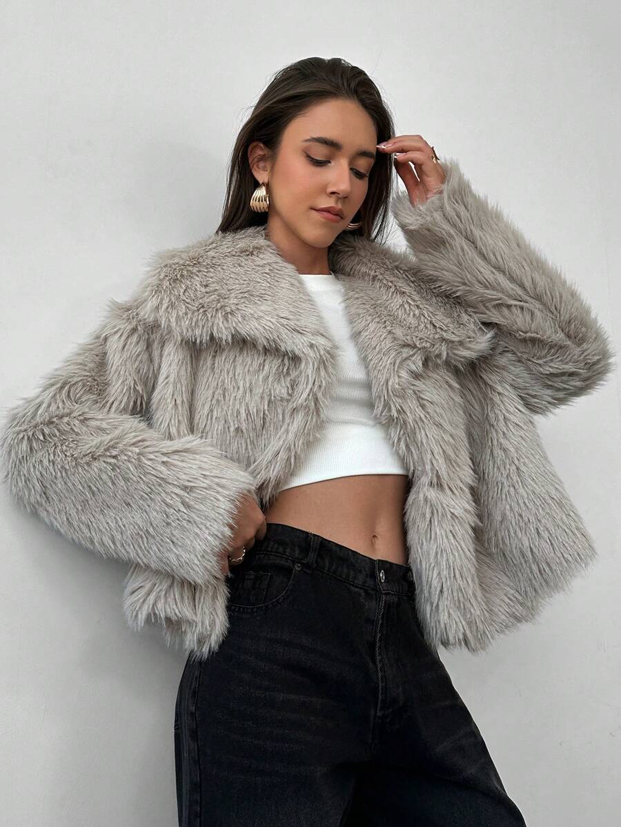 Aloruh moderna ženska jakna od umjetnog krzna u jednobojnom dizajnu, savršena za jesen i zimu