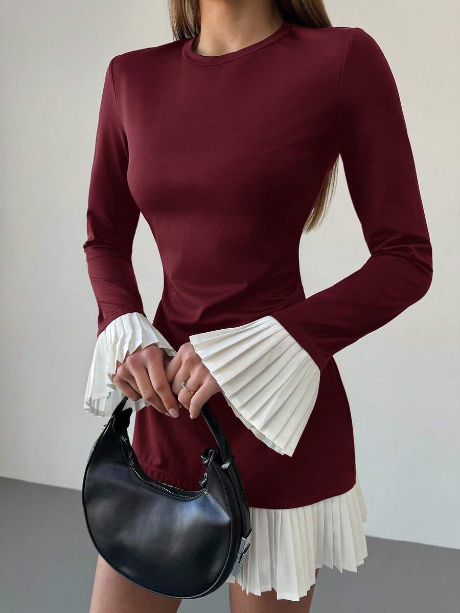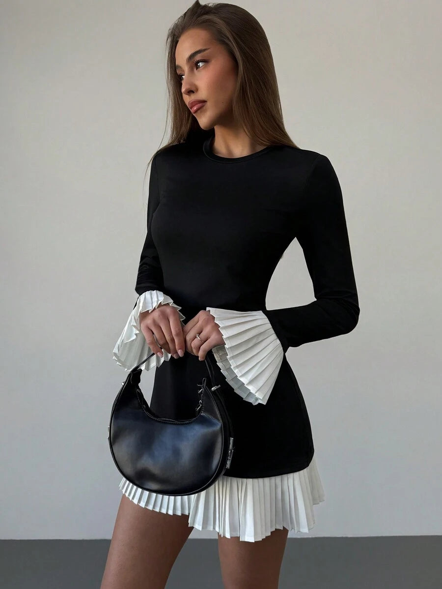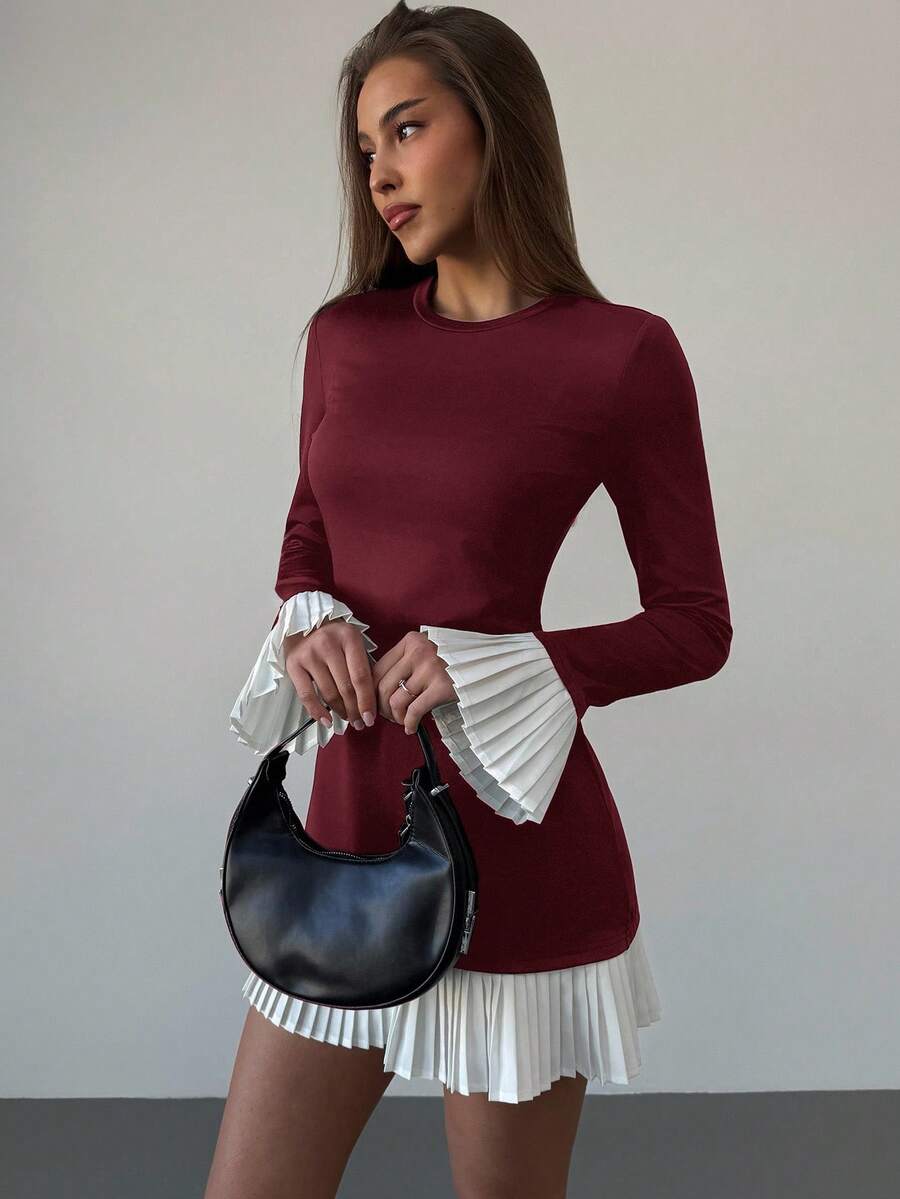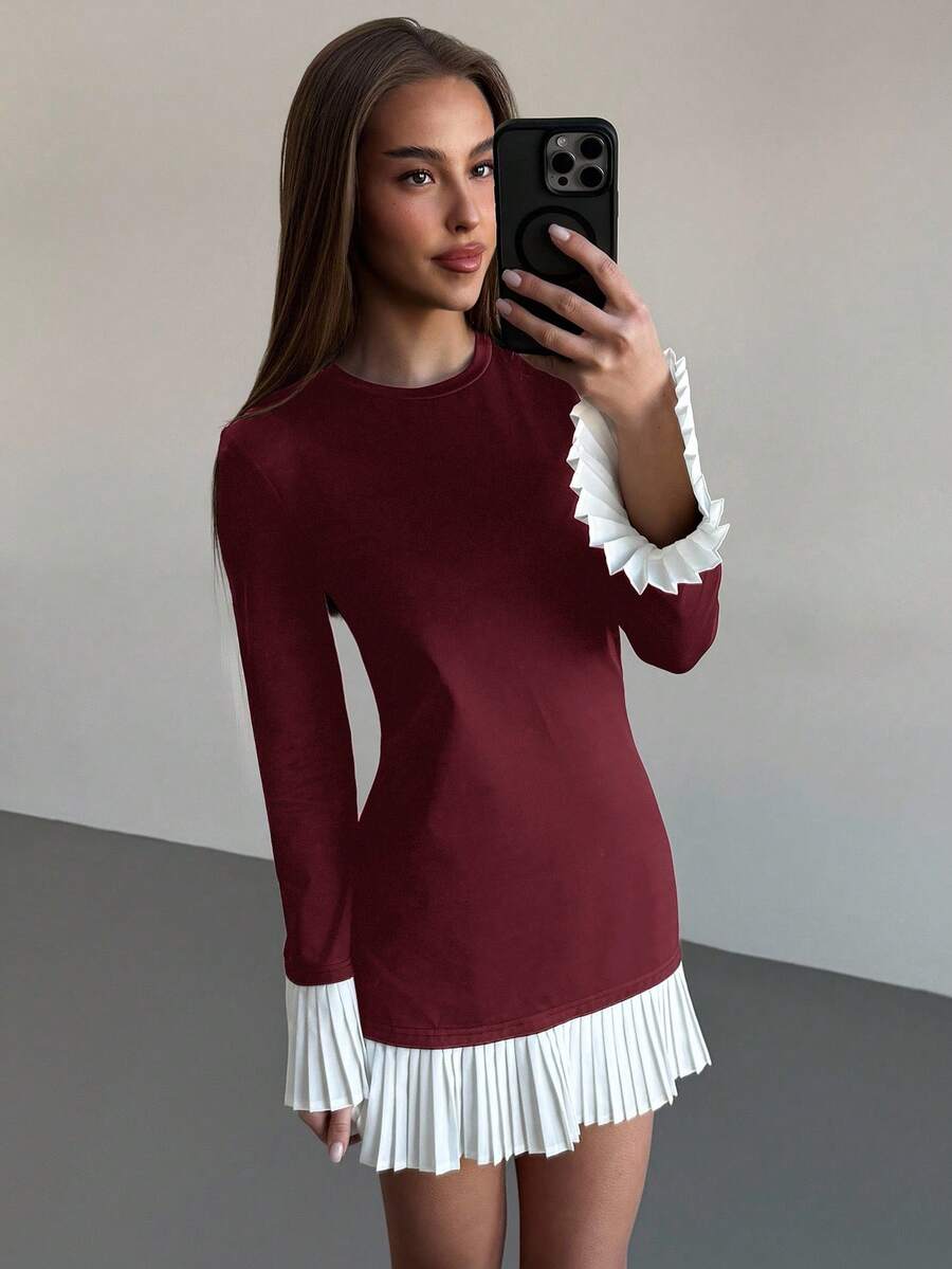 Aloruh Ženska Elegantna Midi Haljina s Blokovima Boja i Ruffles
