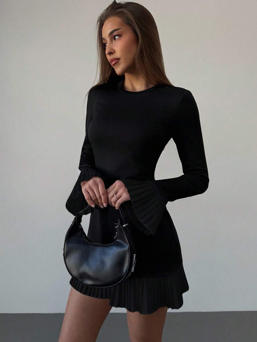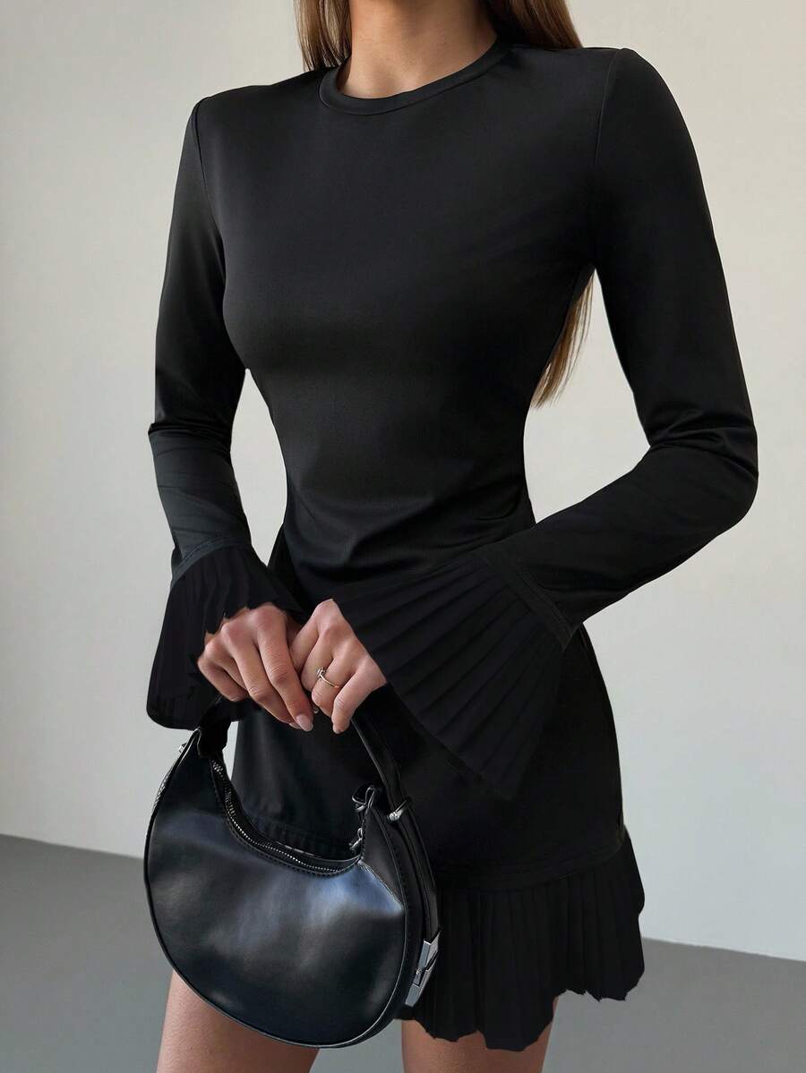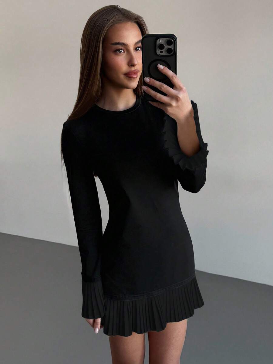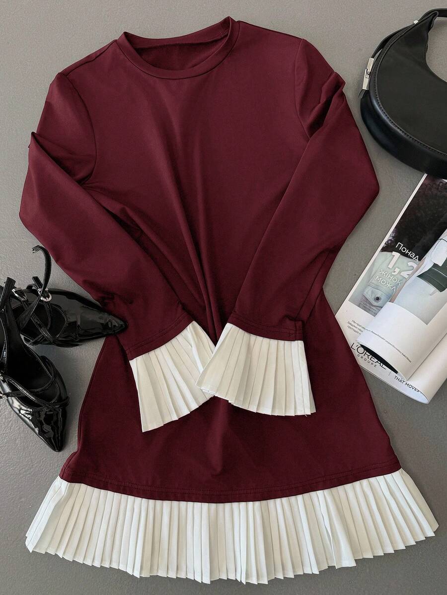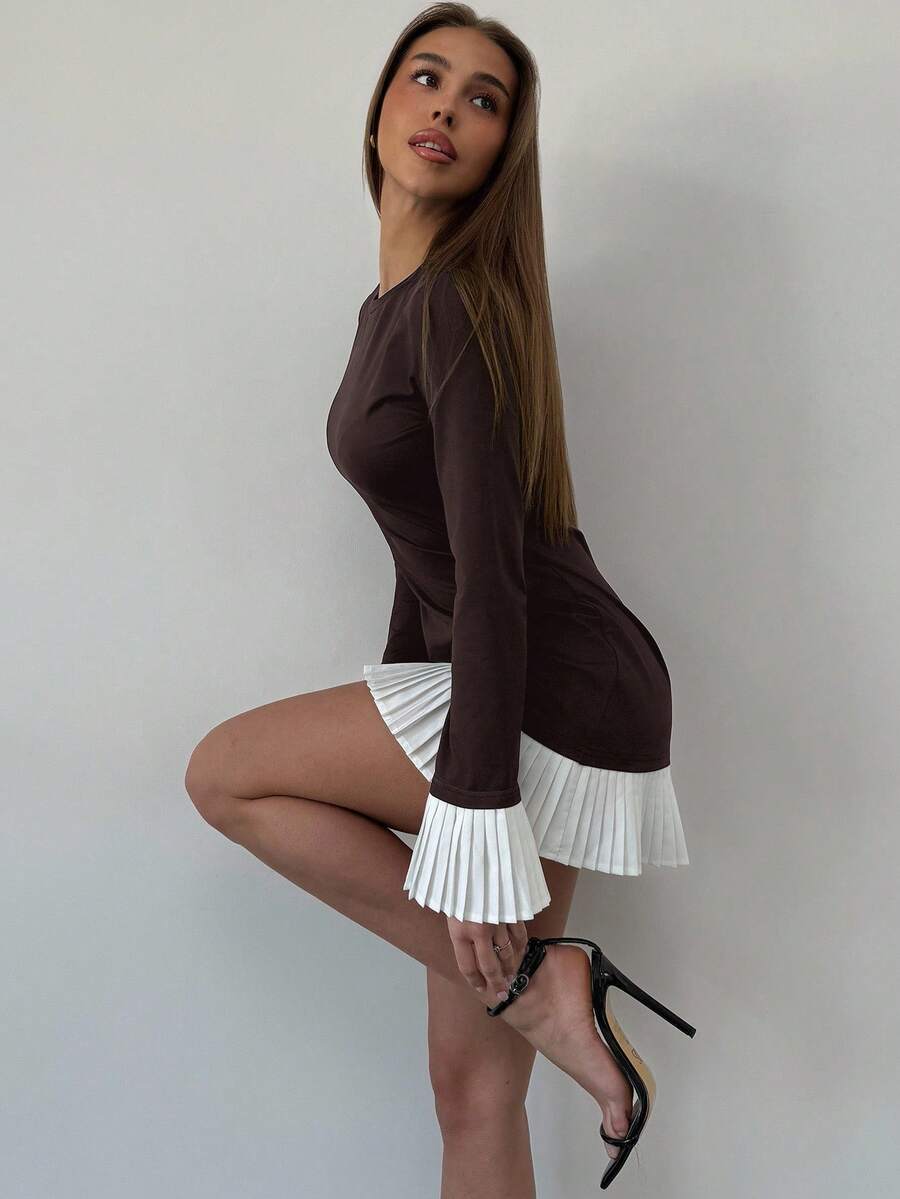 Aloruh Ženska Elegantna Midi Haljina s Blokovima Boja i Ruffles
