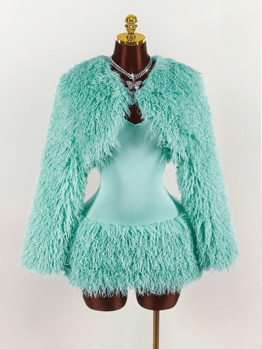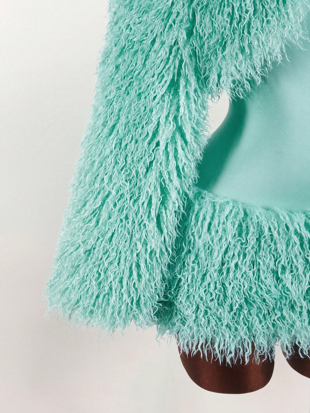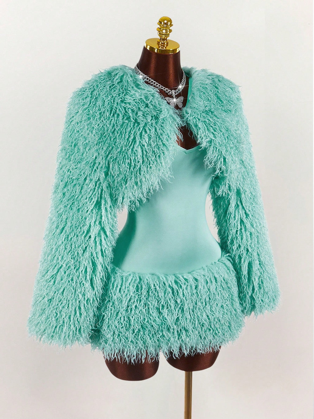 Amplova Y2K kratka ženska jakna od umjetnog krzna, dizajnirana za muzičke festivale i moderne jesenje/zimske outfite