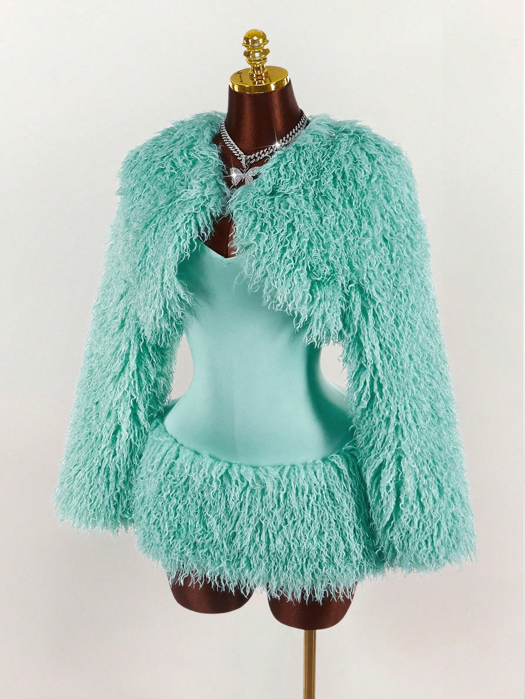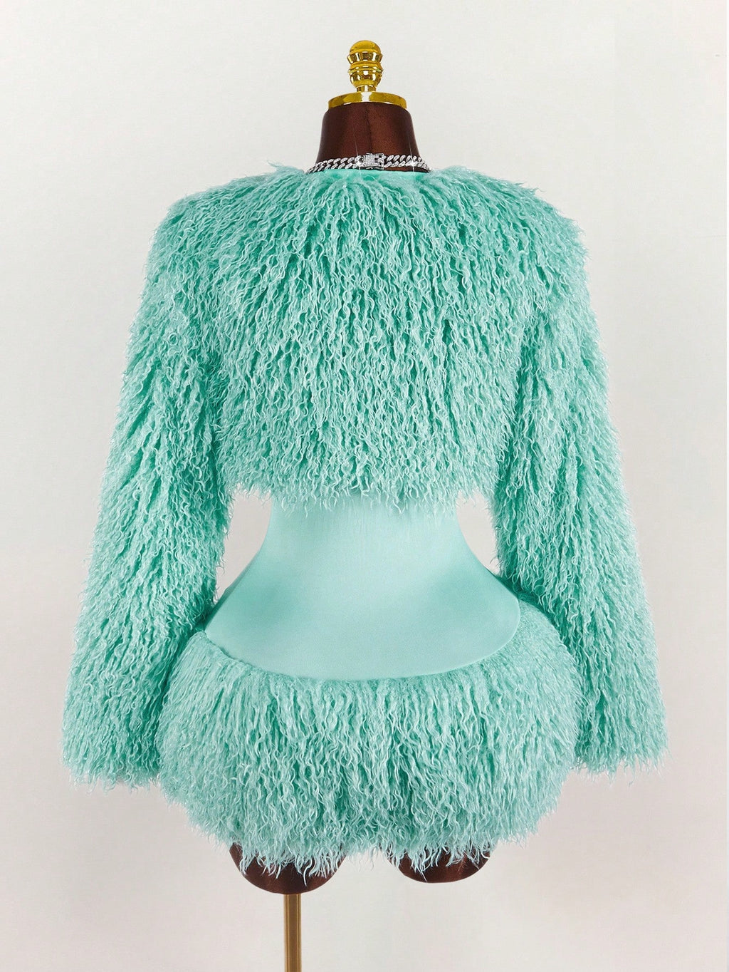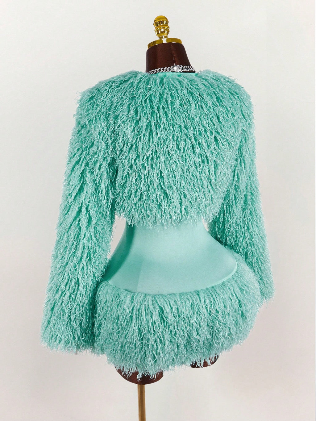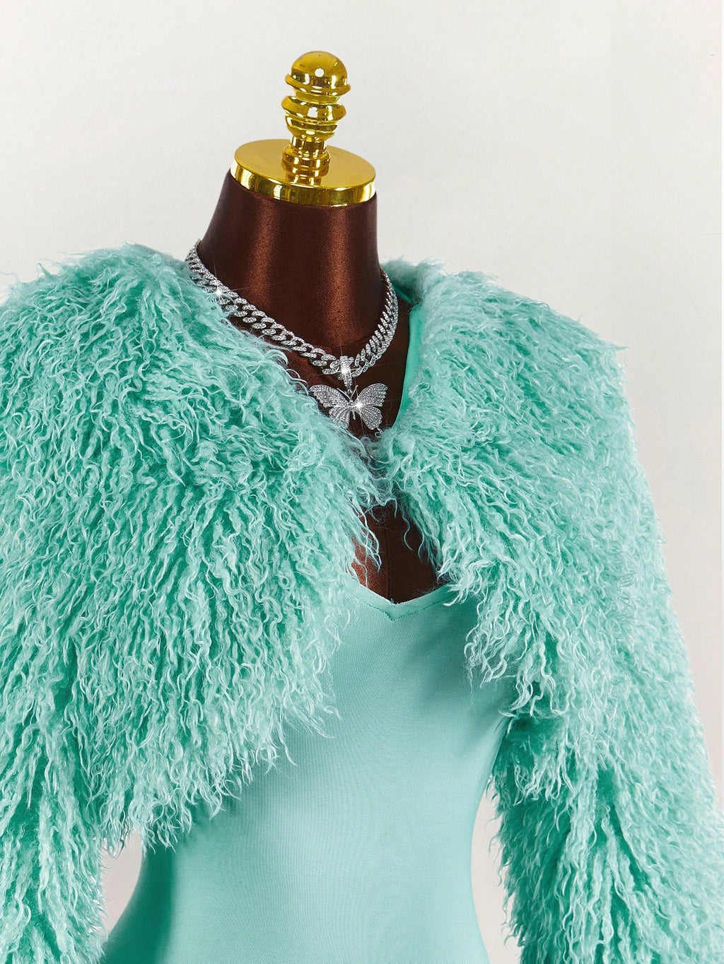 Amplova Y2K kratka ženska jakna od umjetnog krzna, dizajnirana za muzičke festivale i moderne jesenje/zimske outfite