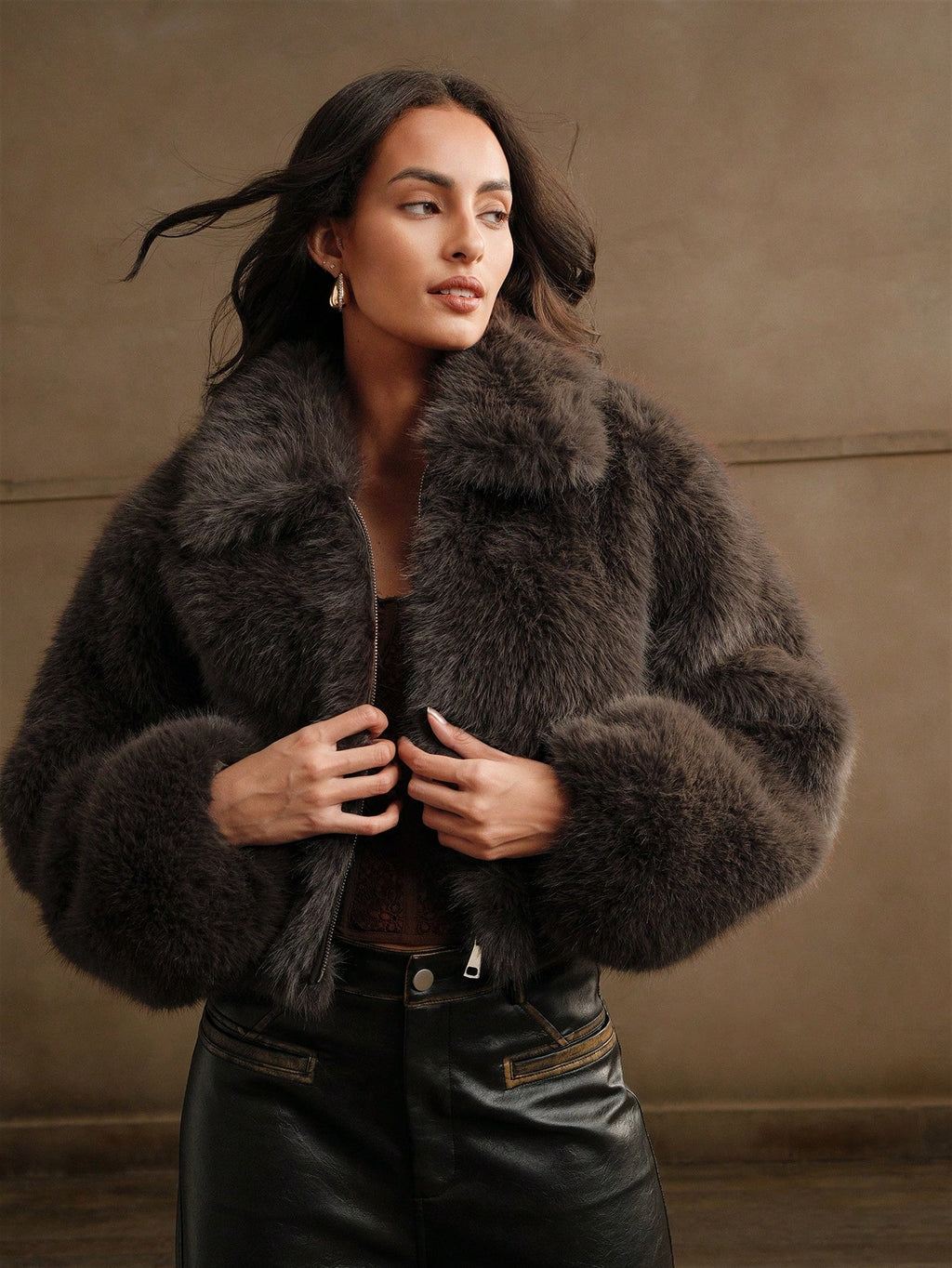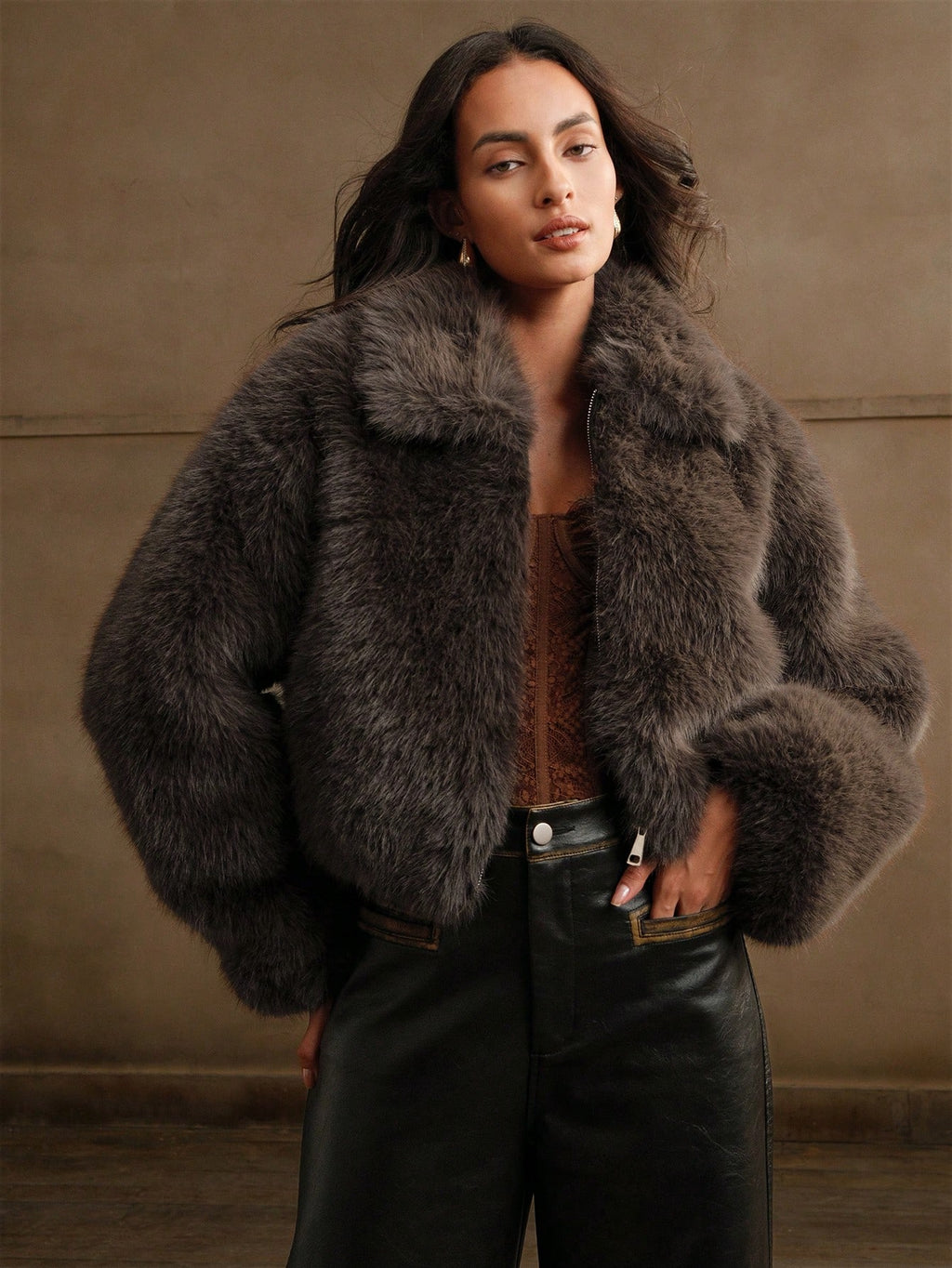 Anewsta ležerna jakna s patentnim zatvaračem i pahuljastom kragnom