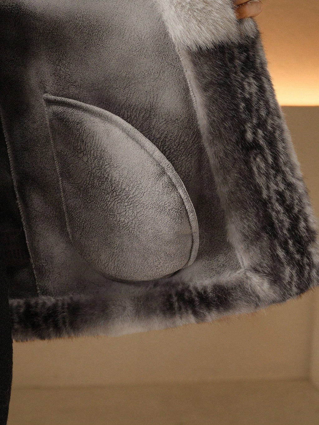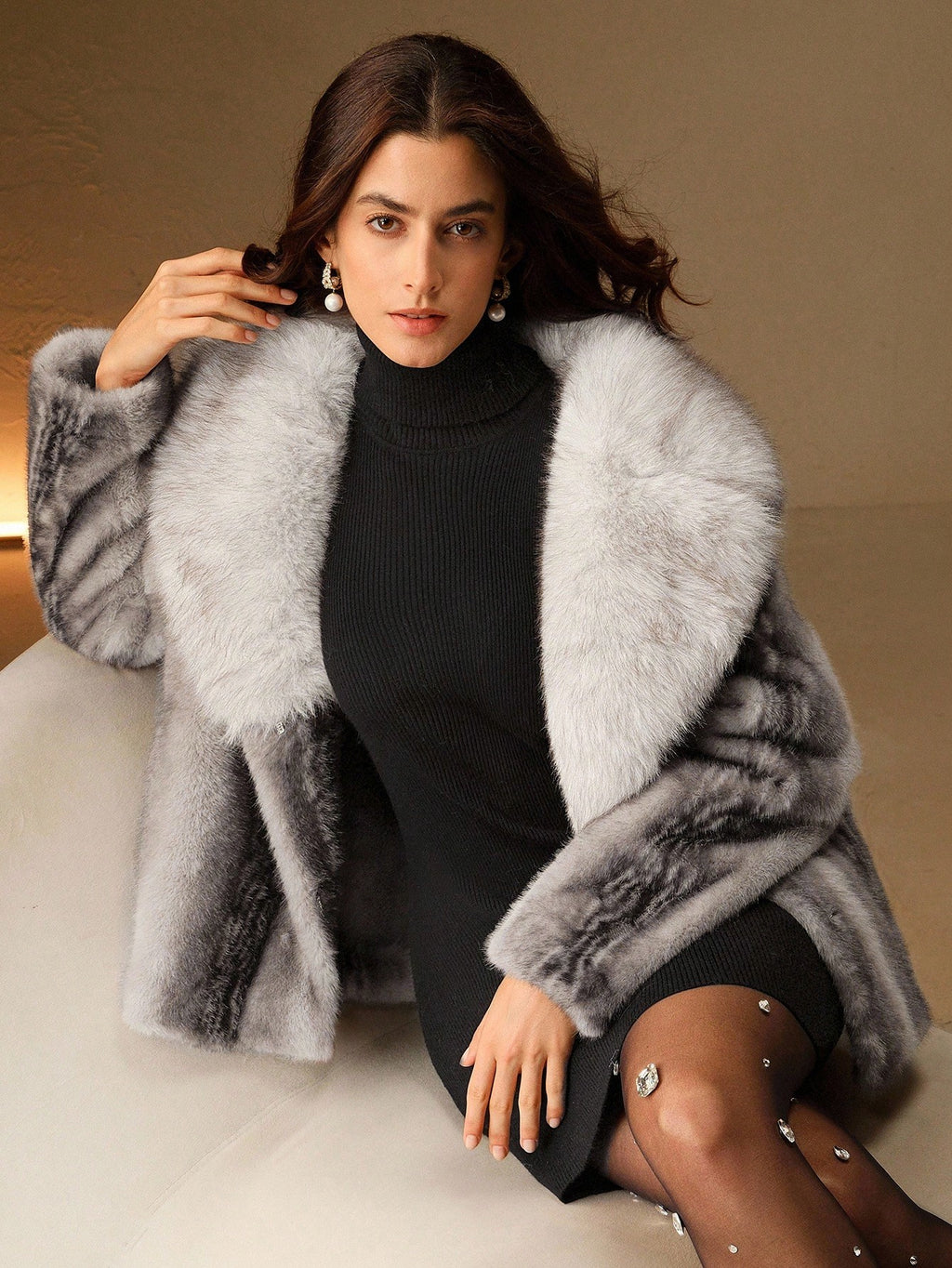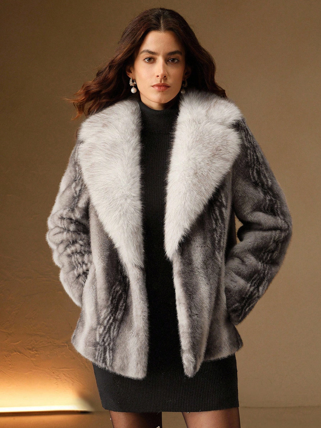 Anewsta Ženski elegantni kaput s krznenom kragnom od umjetnog krzna — formalan, moderan, pogodan za jesen, zimu, Božić i večernje izlaske