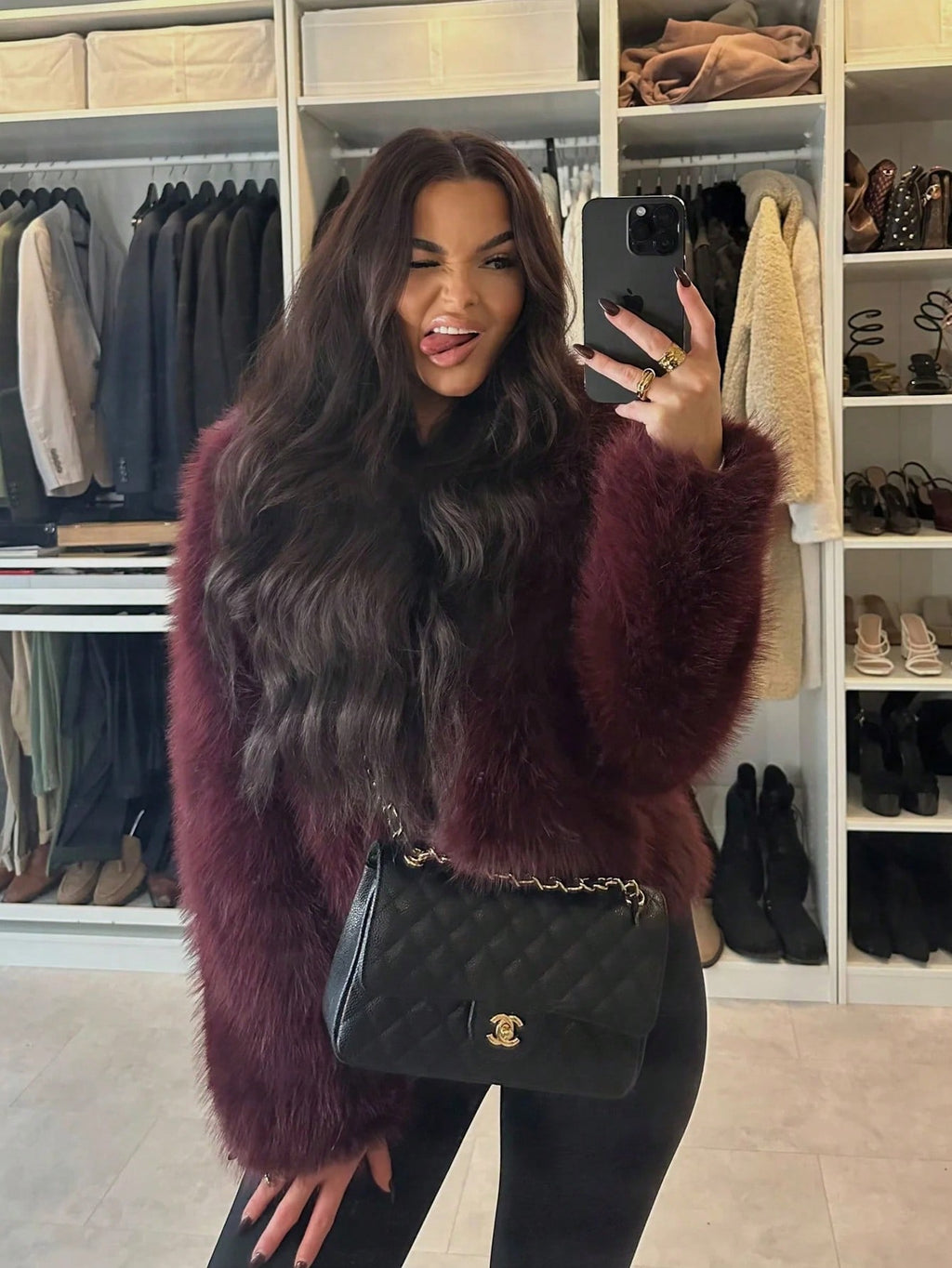 Jesensko-zimska ženska jakna od umjetnog krzna s debljom podstavom od umjetnog lisićeg krzna, moderna i elegantna, pahuljasta i mekana