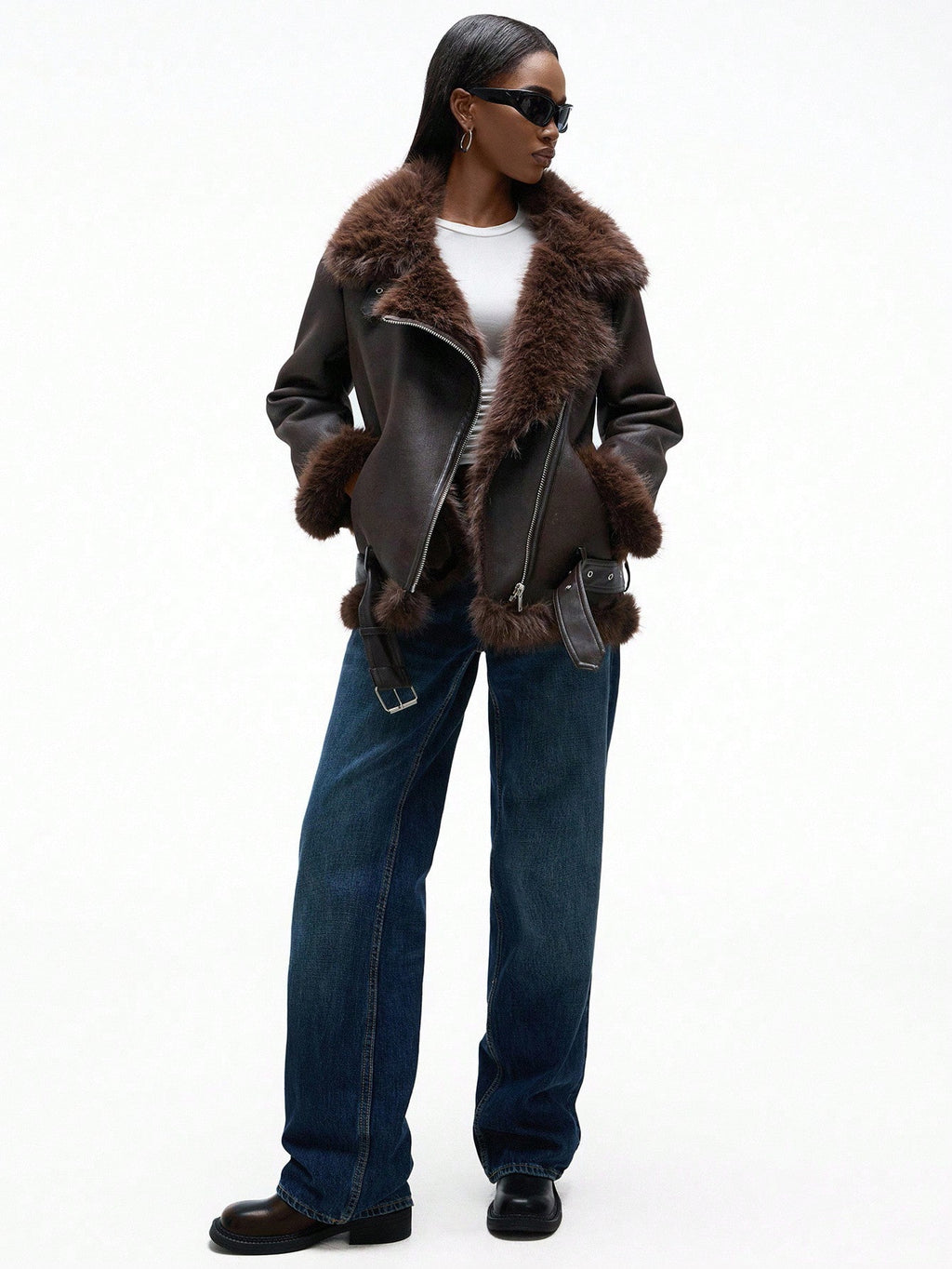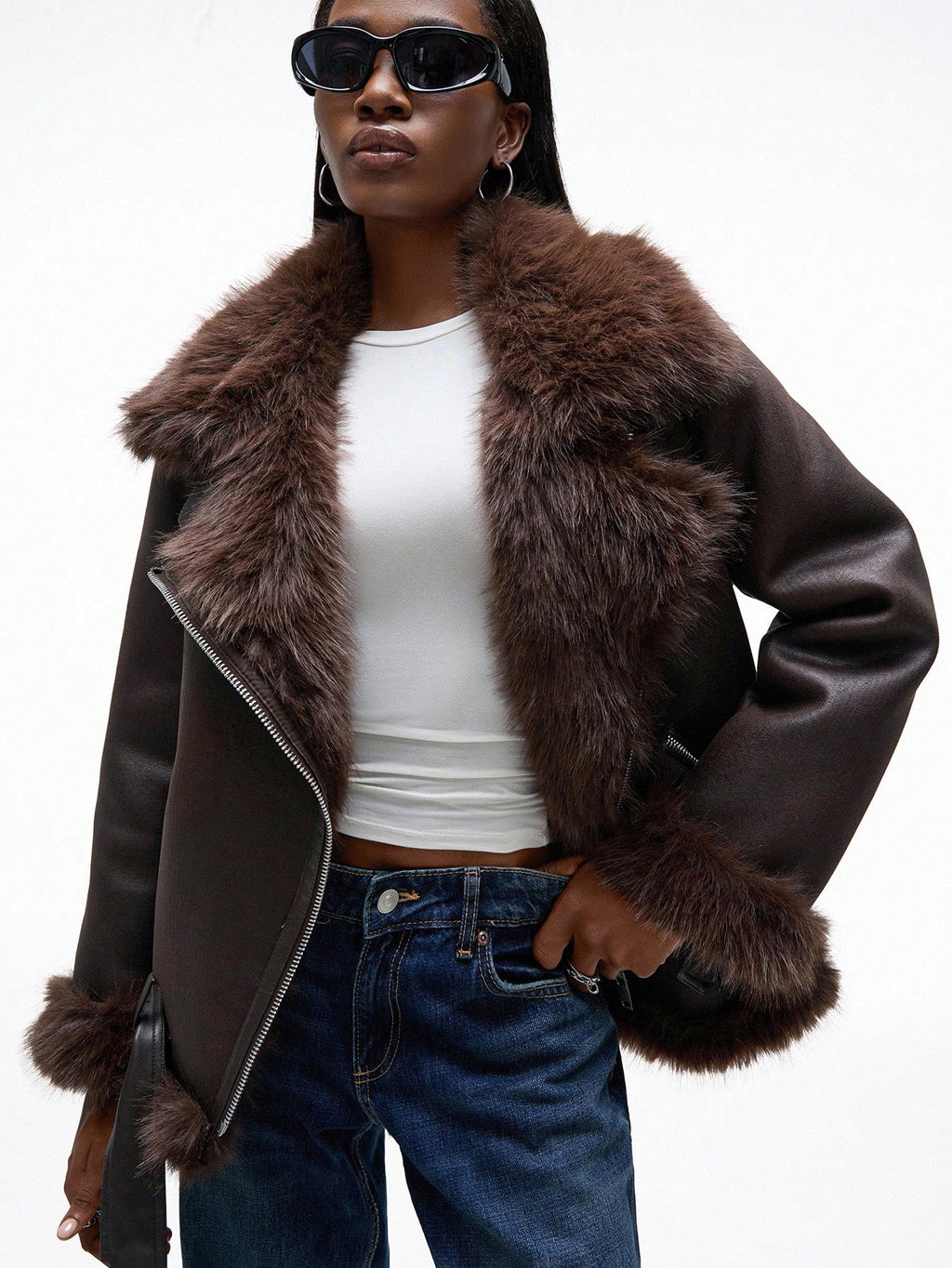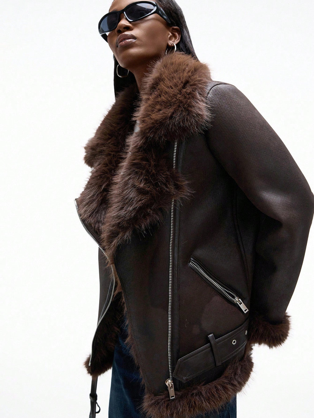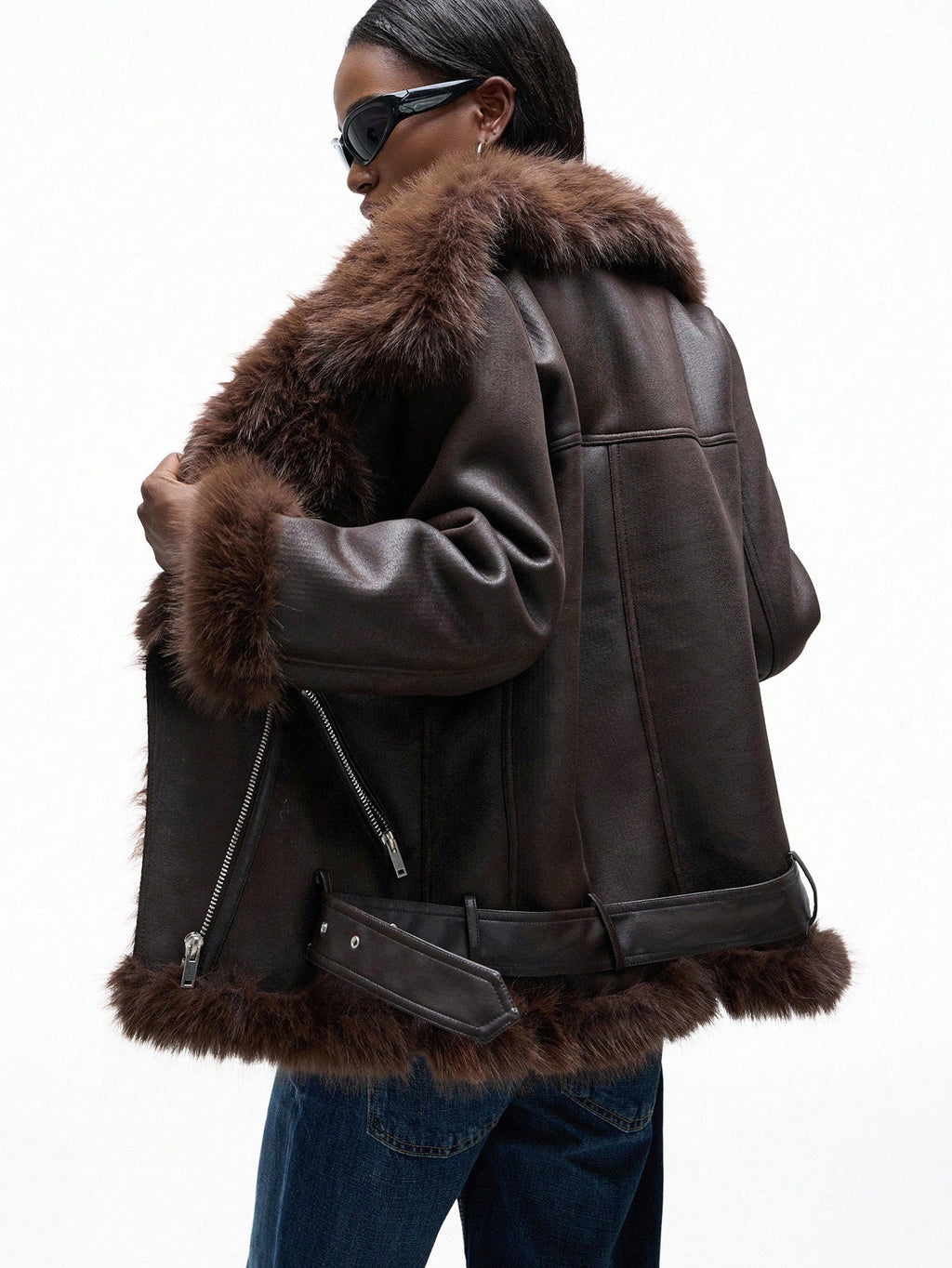 Aveloria Affinna ženska smeđa moto jakna od meke brušene eko kože (suede) s debelom postavom od umjetnog krzna