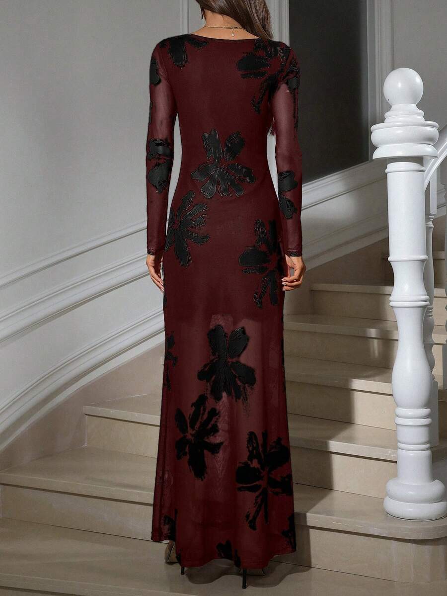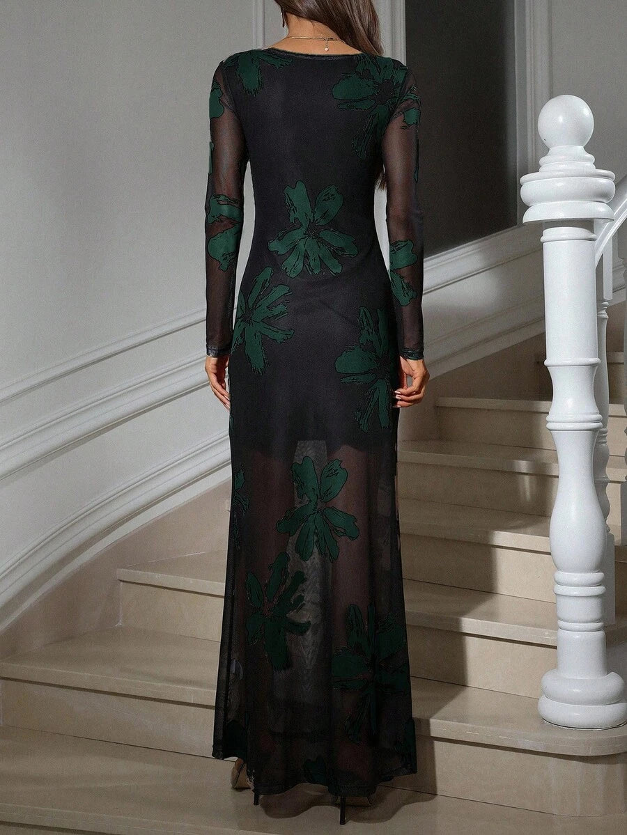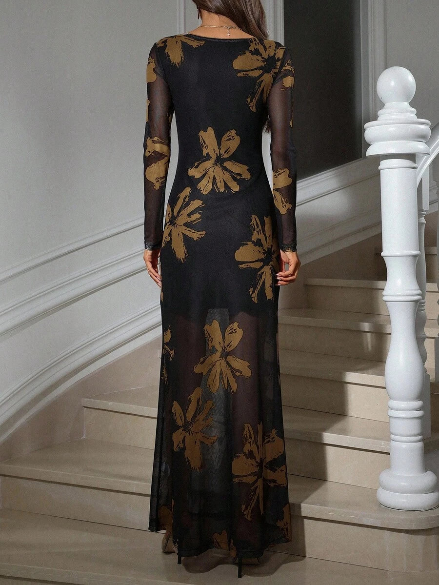 Aveloria Modichic Četkica Ispis Cvjetnog Haljine sa Prozirnim Strukom za Dame