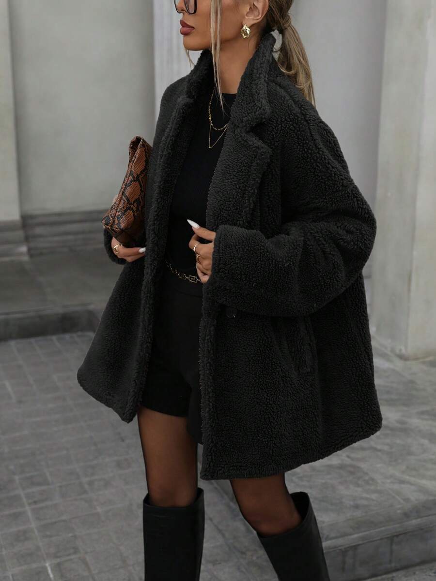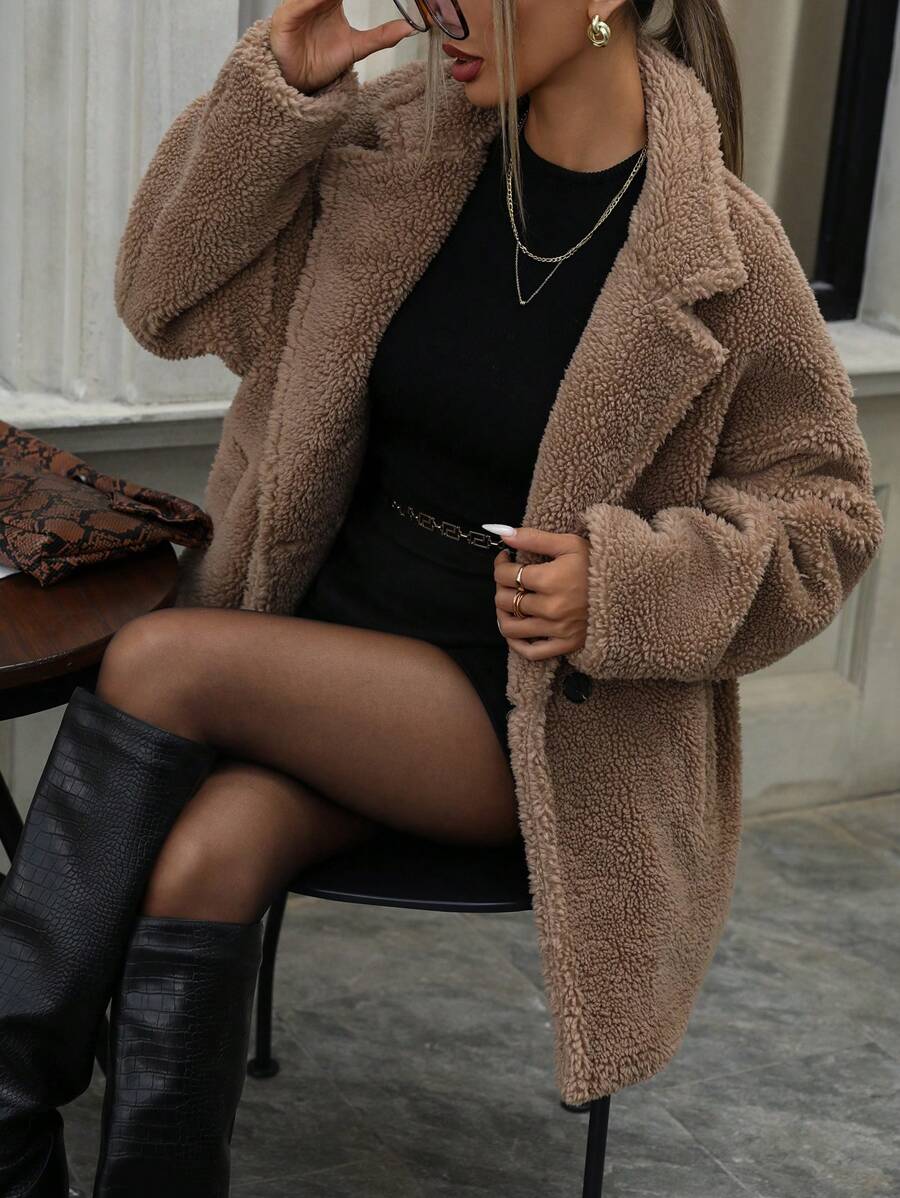 Aveloria Modichic ženski zimski pahuljasti kaputi, s dugim rukavima, rever-ovratnikom, kopčanjem na dugmad, džepovima, flis Sherpa materijalom, ležerna vanjska odjeća
