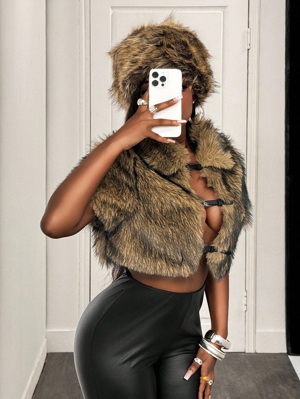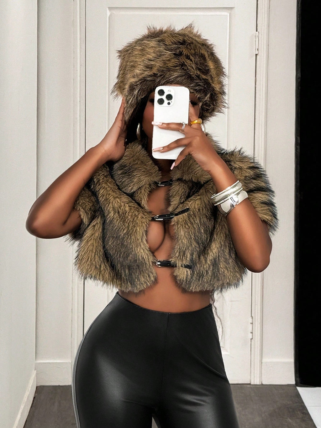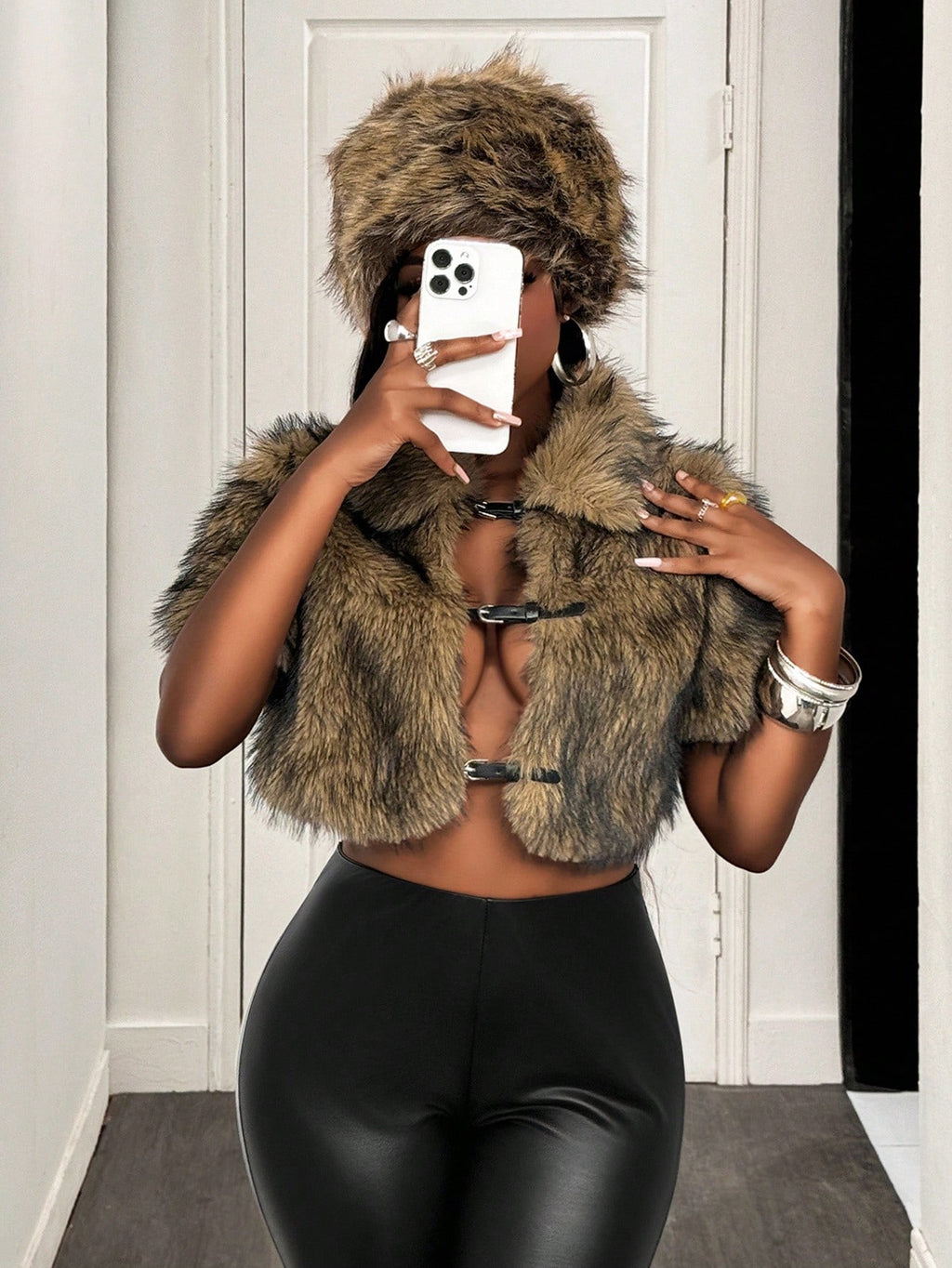 BamGleam ženska moderna vintage jakna od umjetnog krzna, skraćenog kroja (crop), idealna za jesen i zimu — elegantan komad odjeće koji kombinuje retro stil i toplinu