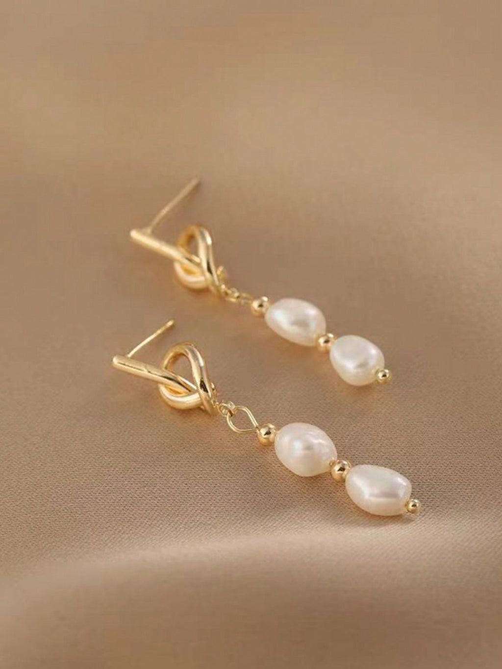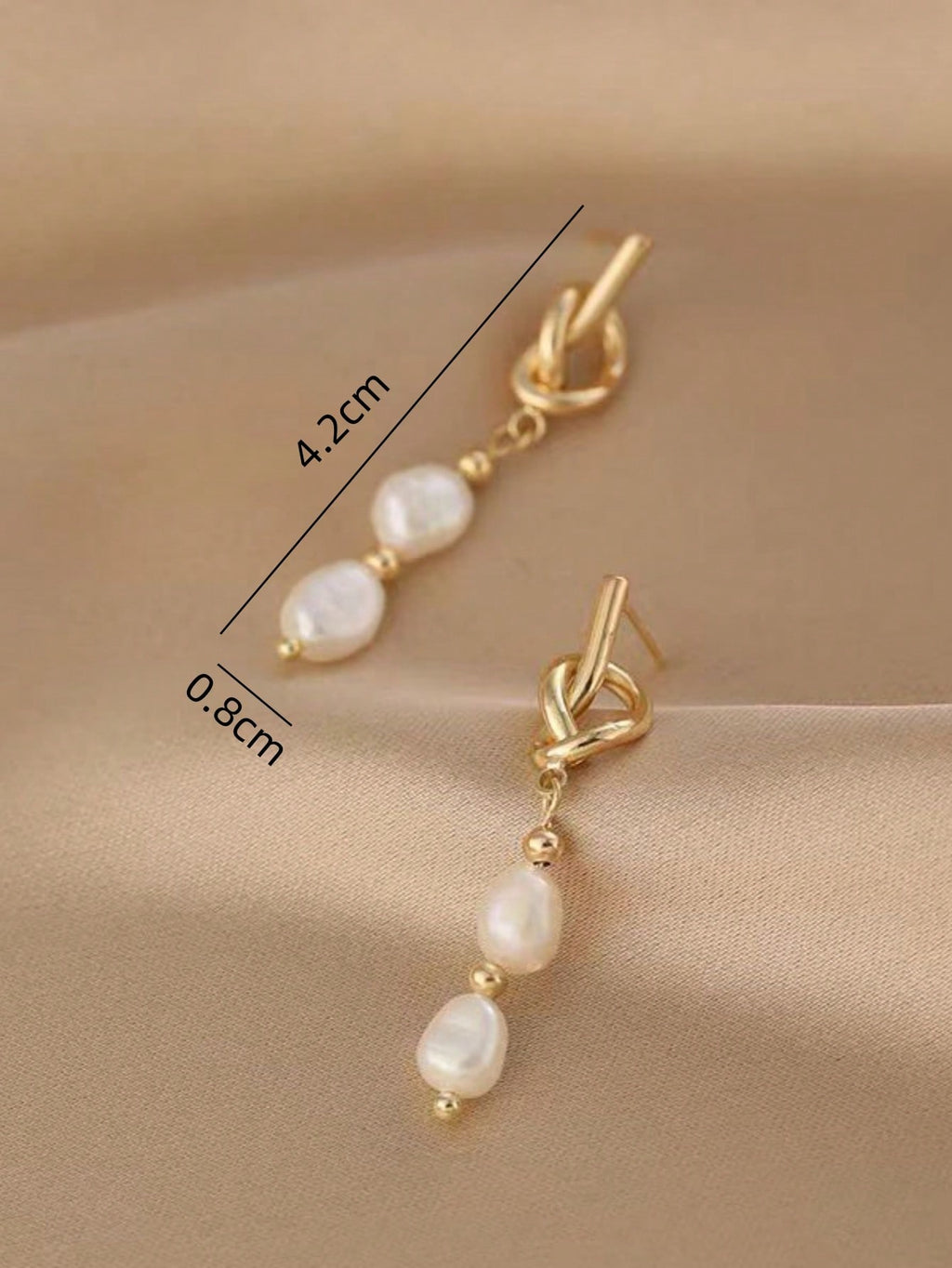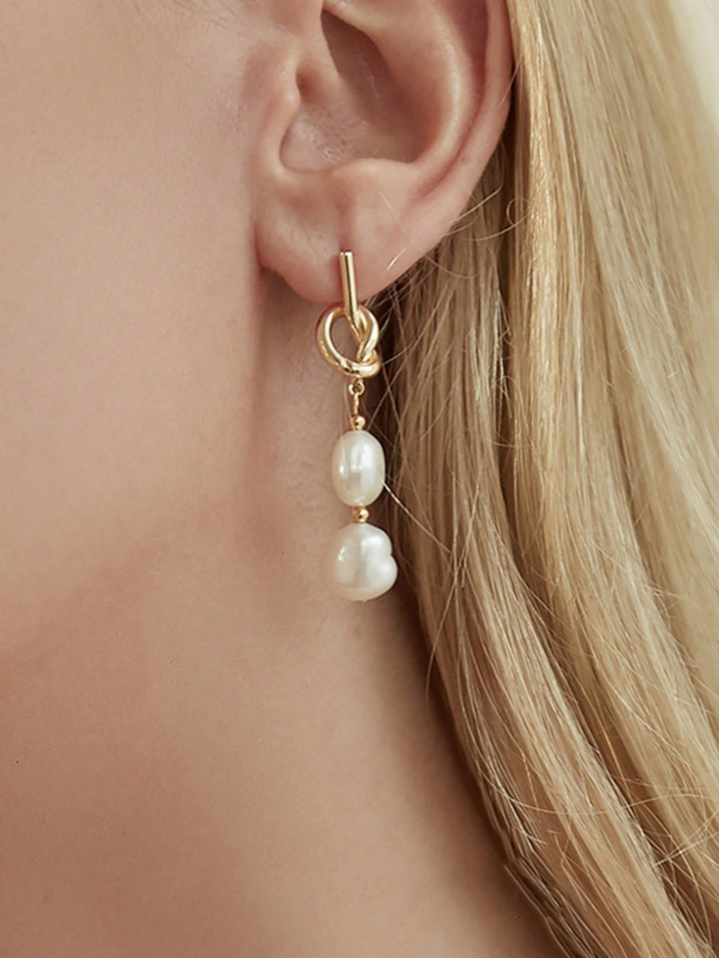 BELLAVOG 1 par metalnih naušnica s asimetričnim biserima u obliku čvorova