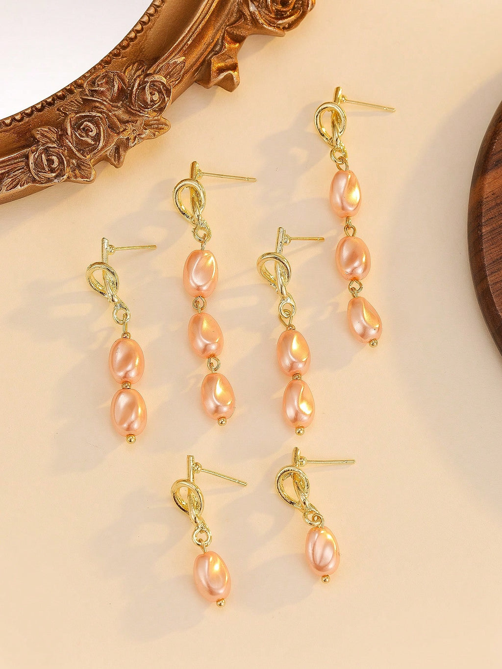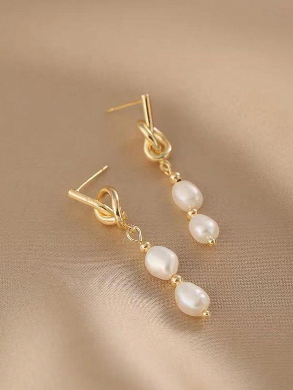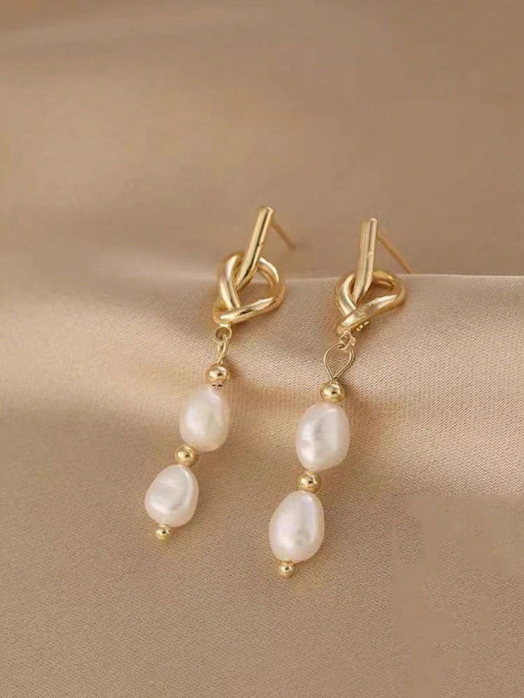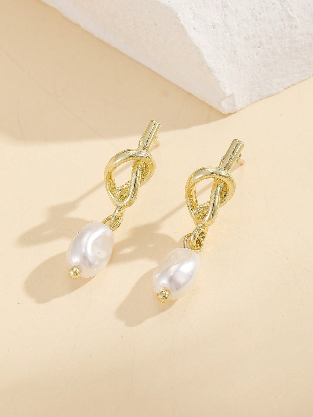 BELLAVOG 1 par metalnih naušnica s asimetričnim biserima u obliku čvorova