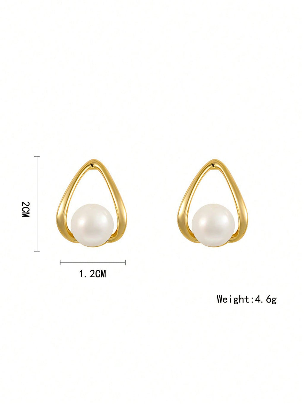 BELLAVOG 1 par jednostavnih pozlaćenih naušnica s trokutastim uzorkom bisera, pogodne za svakodnevno nošenje žena
