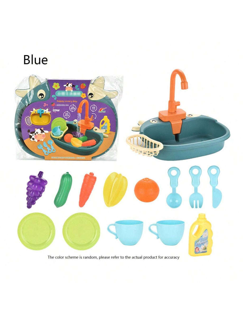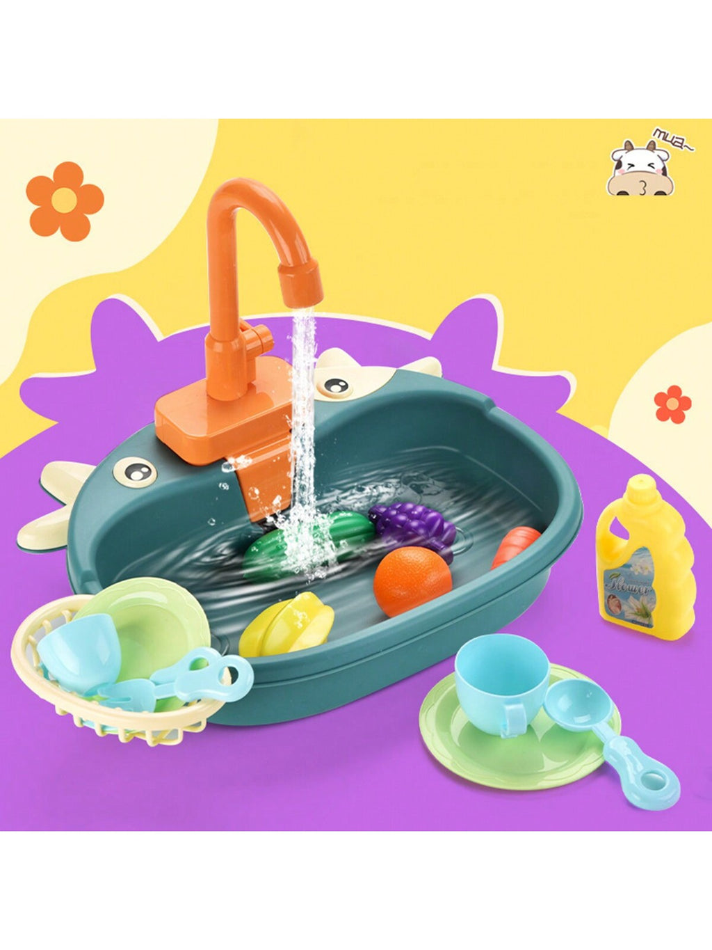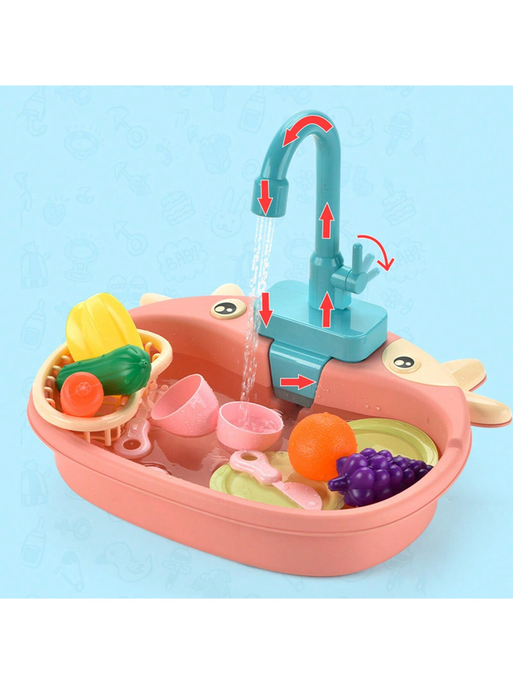 BELLAVOG 1pc Play Kitchen Sink Toy, Water Toys For Kids With Electronic Dishwasher, Pretend Play Utensils Accessories And Play Cutting Food For Boys And Girls (Self Provided Battery Required)