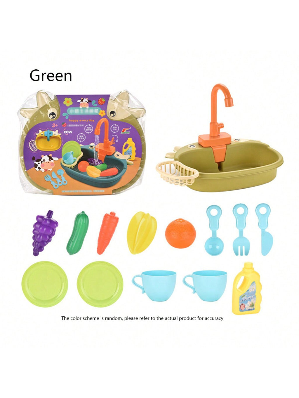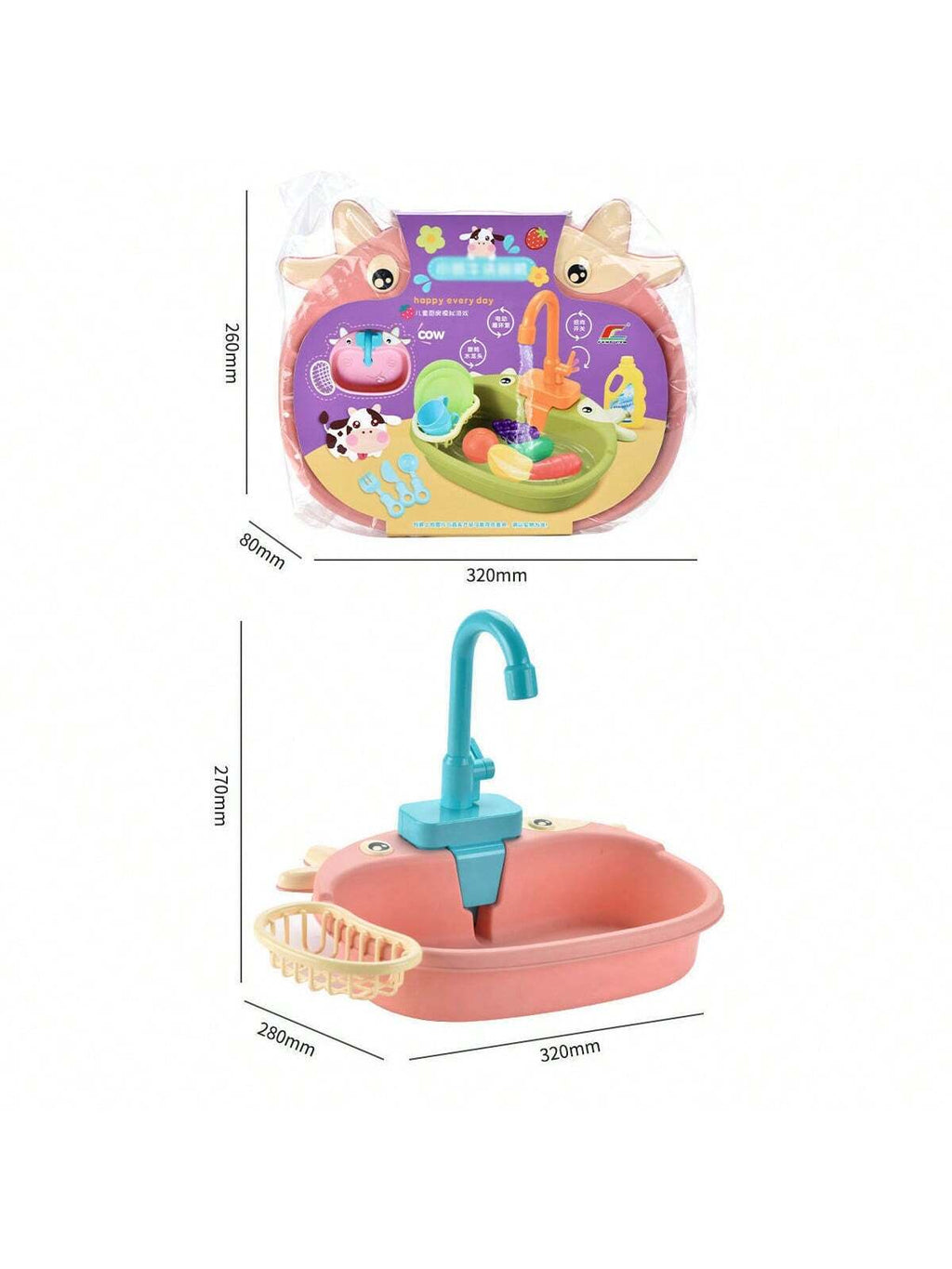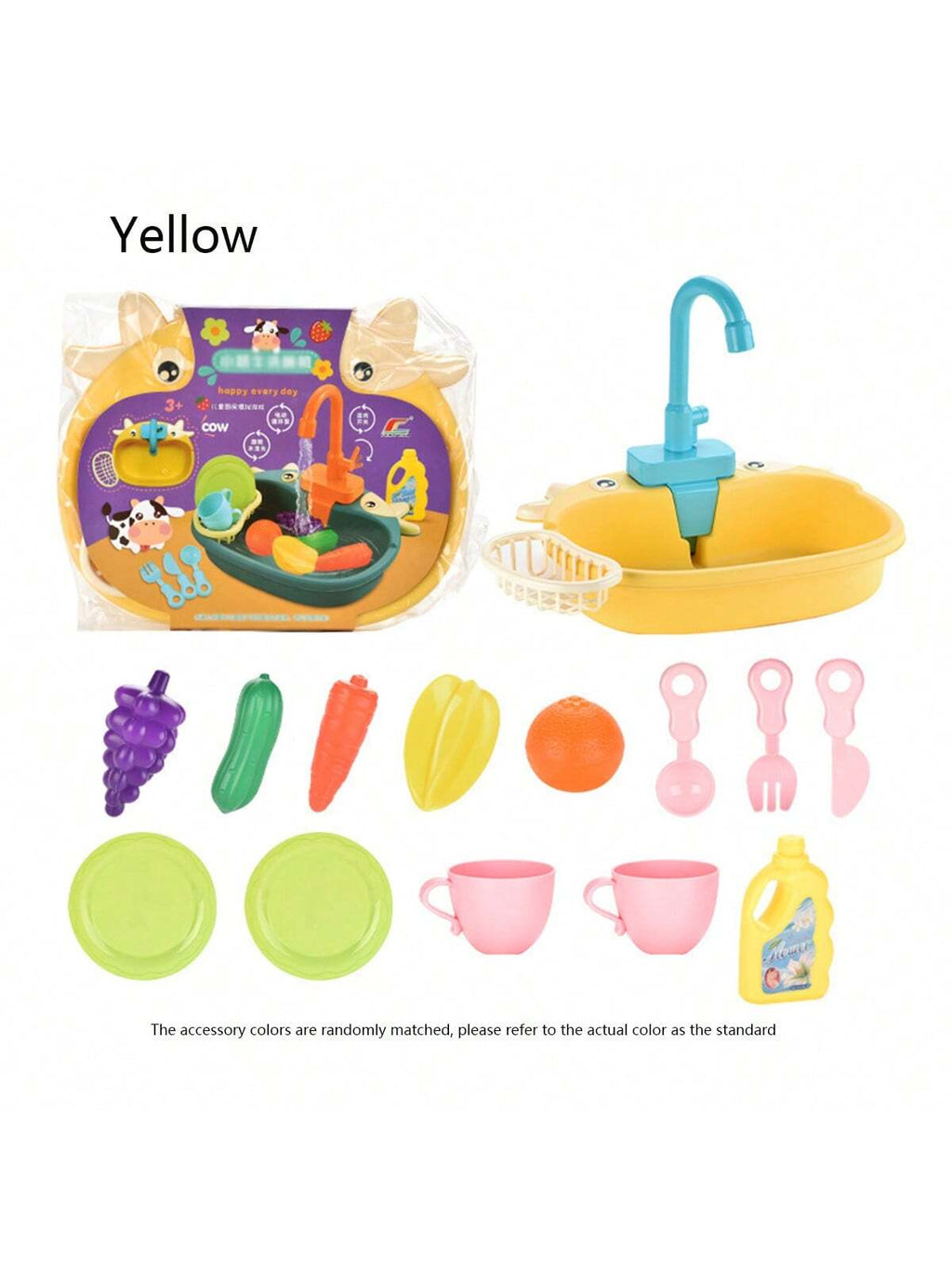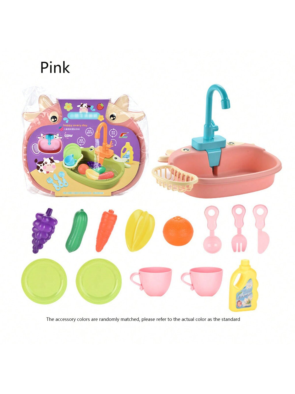 BELLAVOG 1pc Play Kitchen Sink Toy, Water Toys For Kids With Electronic Dishwasher, Pretend Play Utensils Accessories And Play Cutting Food For Boys And Girls (Self Provided Battery Required)