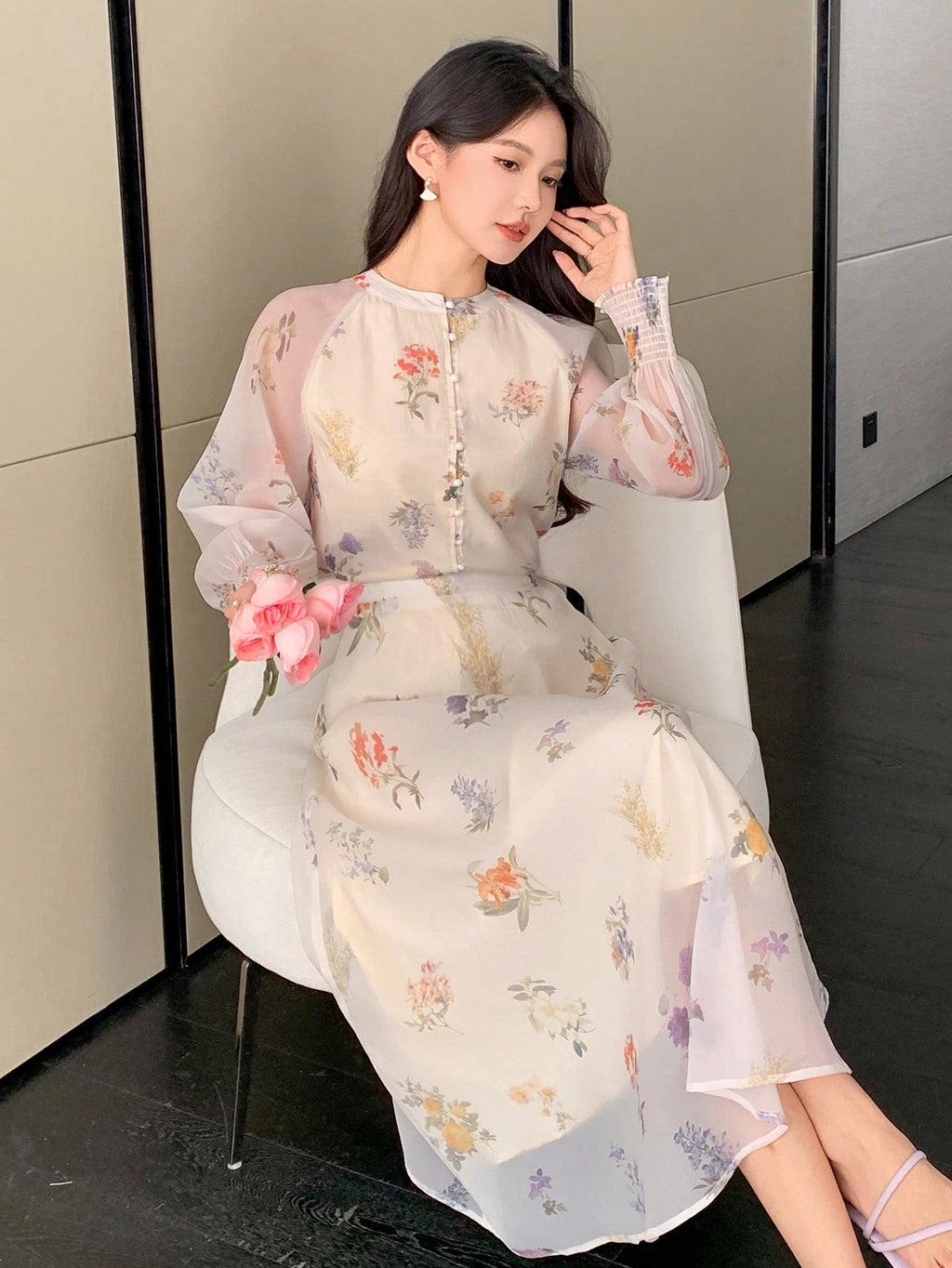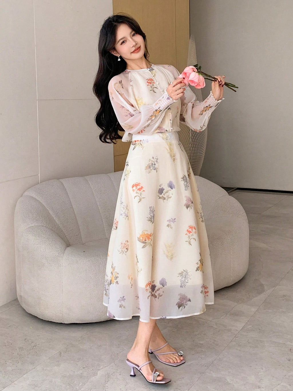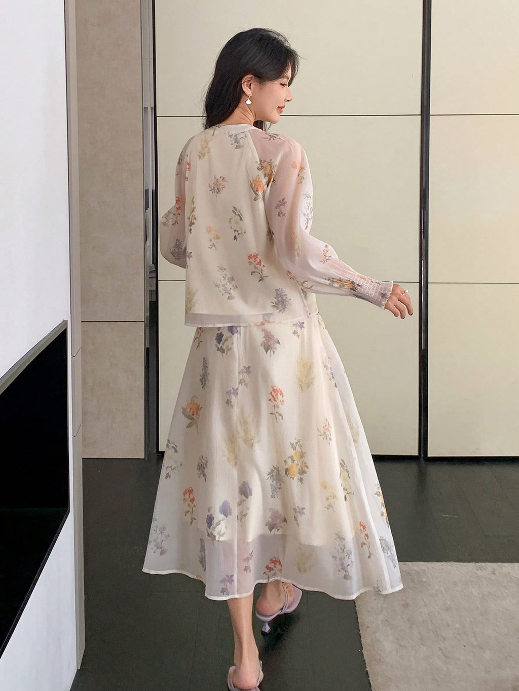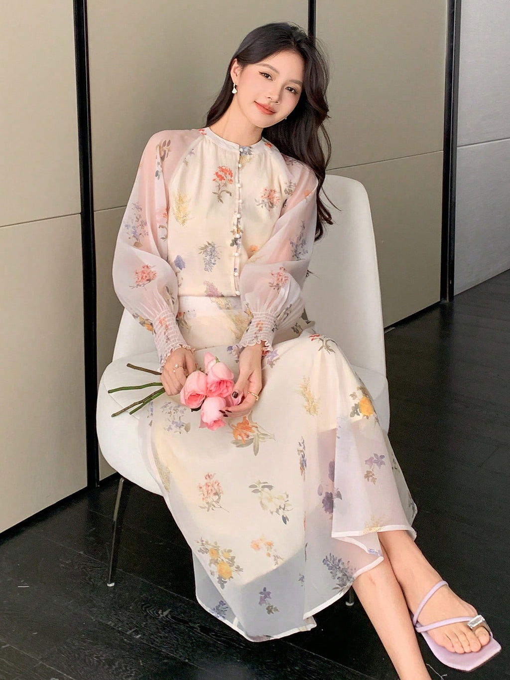 BELLAVOG Set od 2 komada/komad s cvjetnim printom i stojećim ovratnikom - košulja i suknja