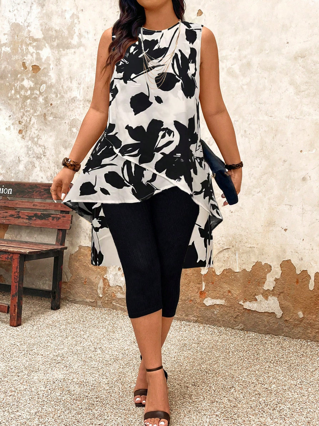 BELLAVOG 2 komada/set Plus Size majica i hlače bez rukava s okruglim izrezom i nasumičnim printom