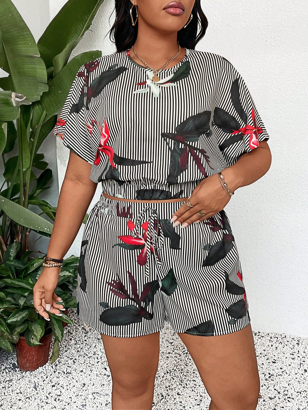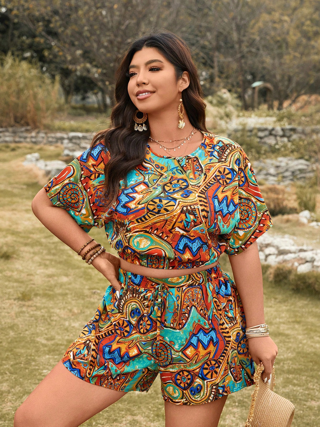 BELLAVOG Set od 2 komada/seta za žene većih veličina s cvjetnim printom i rukavima šišmiš krila, zapadnjačka odjeća za žene, boho, hipi, kaubojska odjeća, boemski, ljetne odjevne kombinacije za žene u starom stilu, ulična odjeća za žene