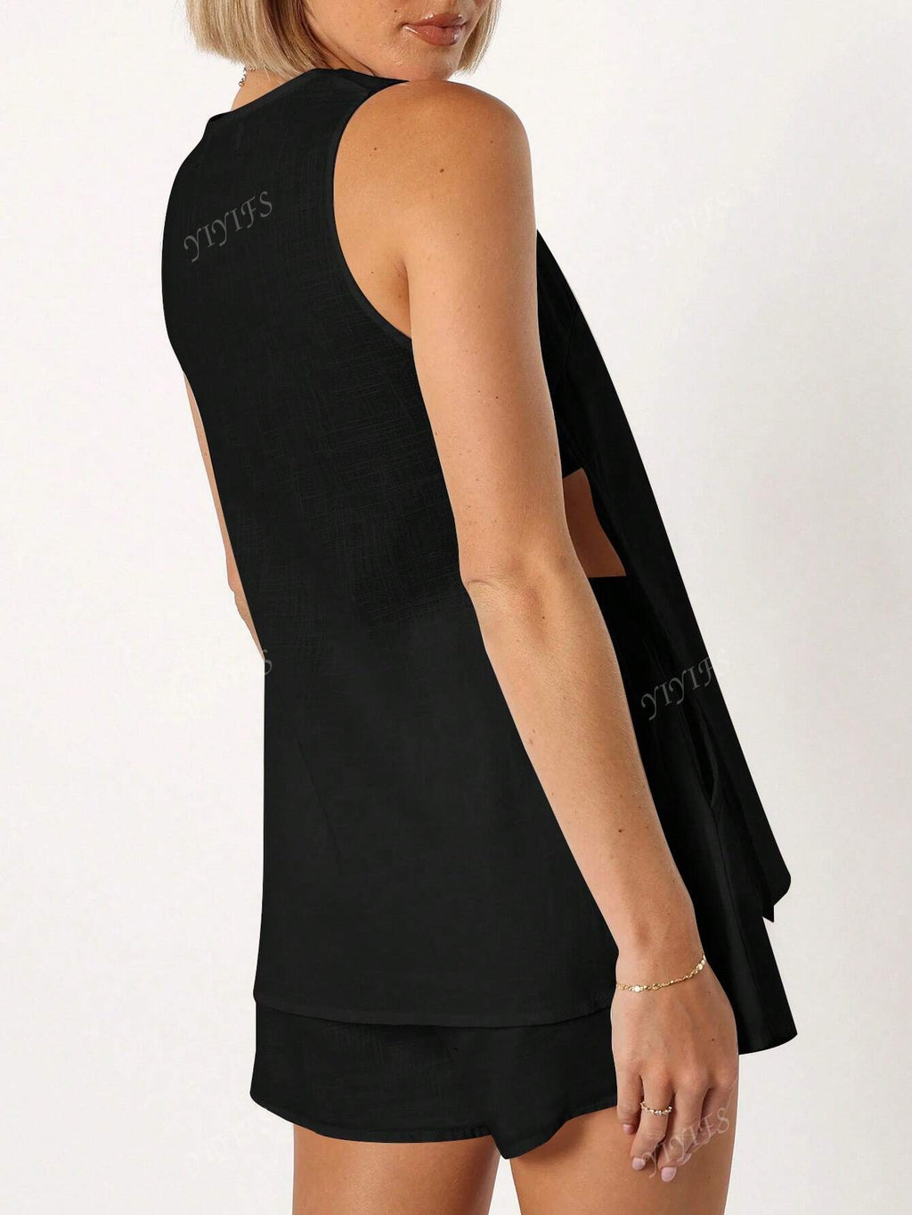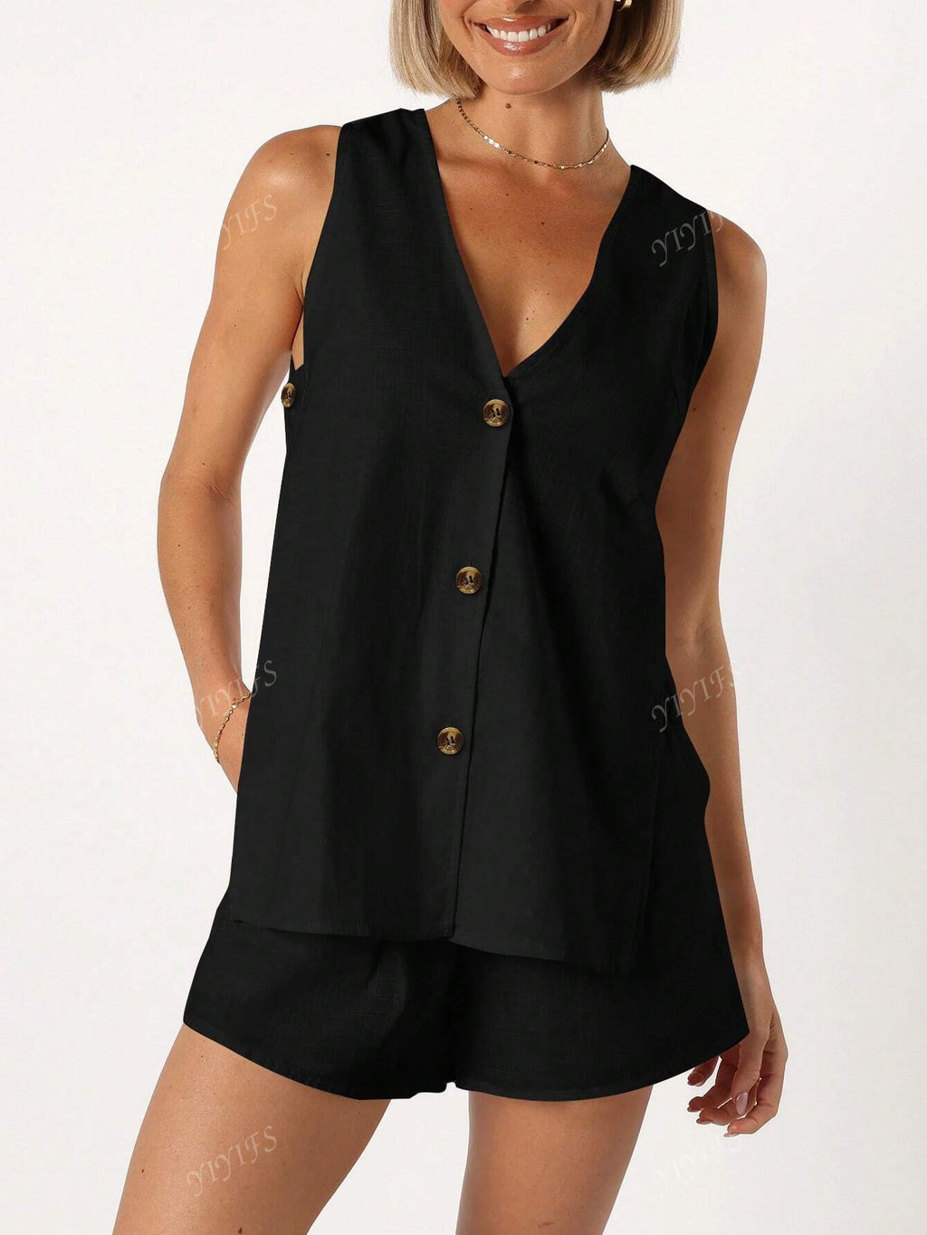 BELLAVOG Set od 2 komada za žene, ležerni jednobojni set od lana s V-izrezom i bočnim prorezom, za odmor, proljeće/ljeto