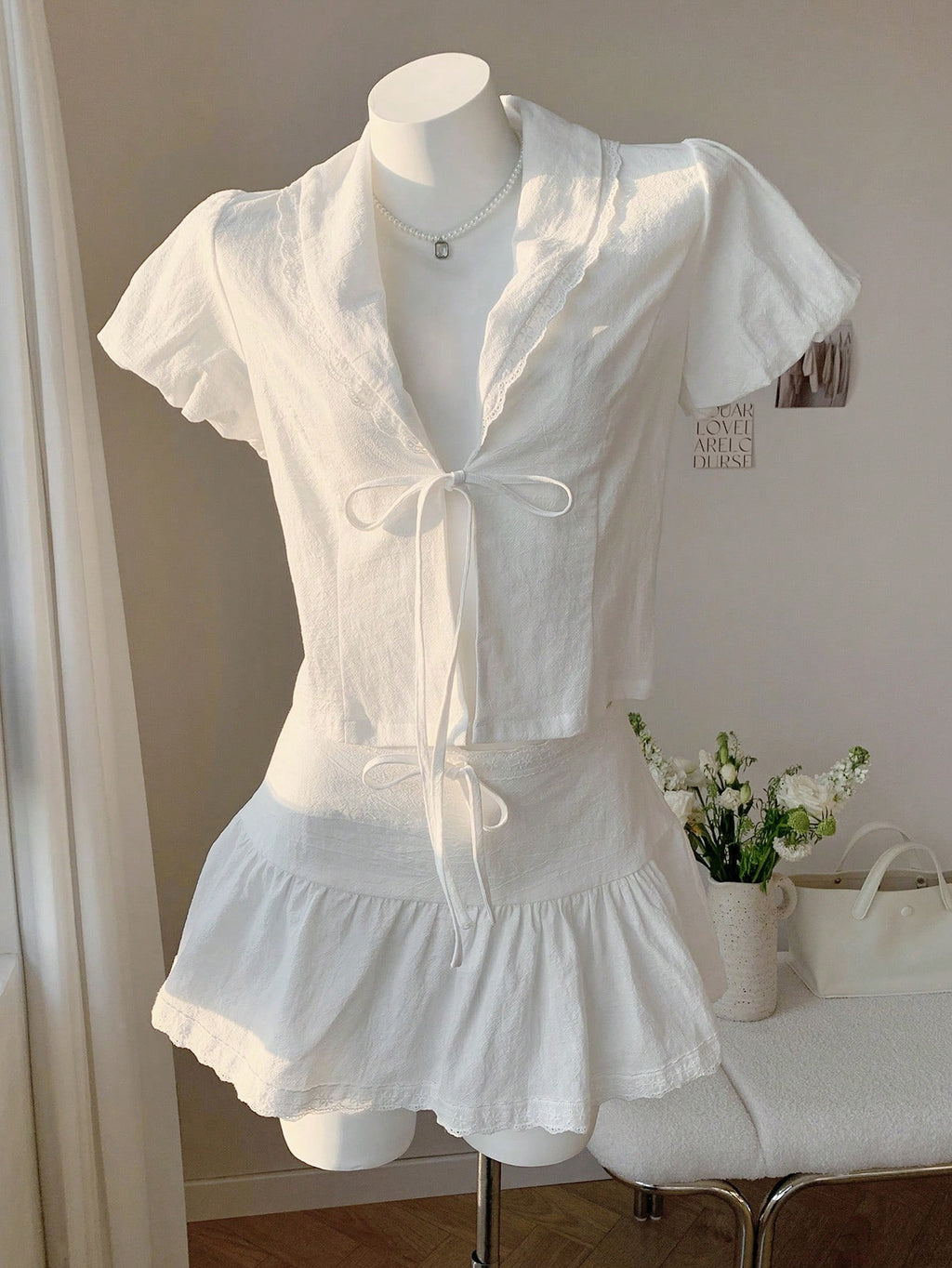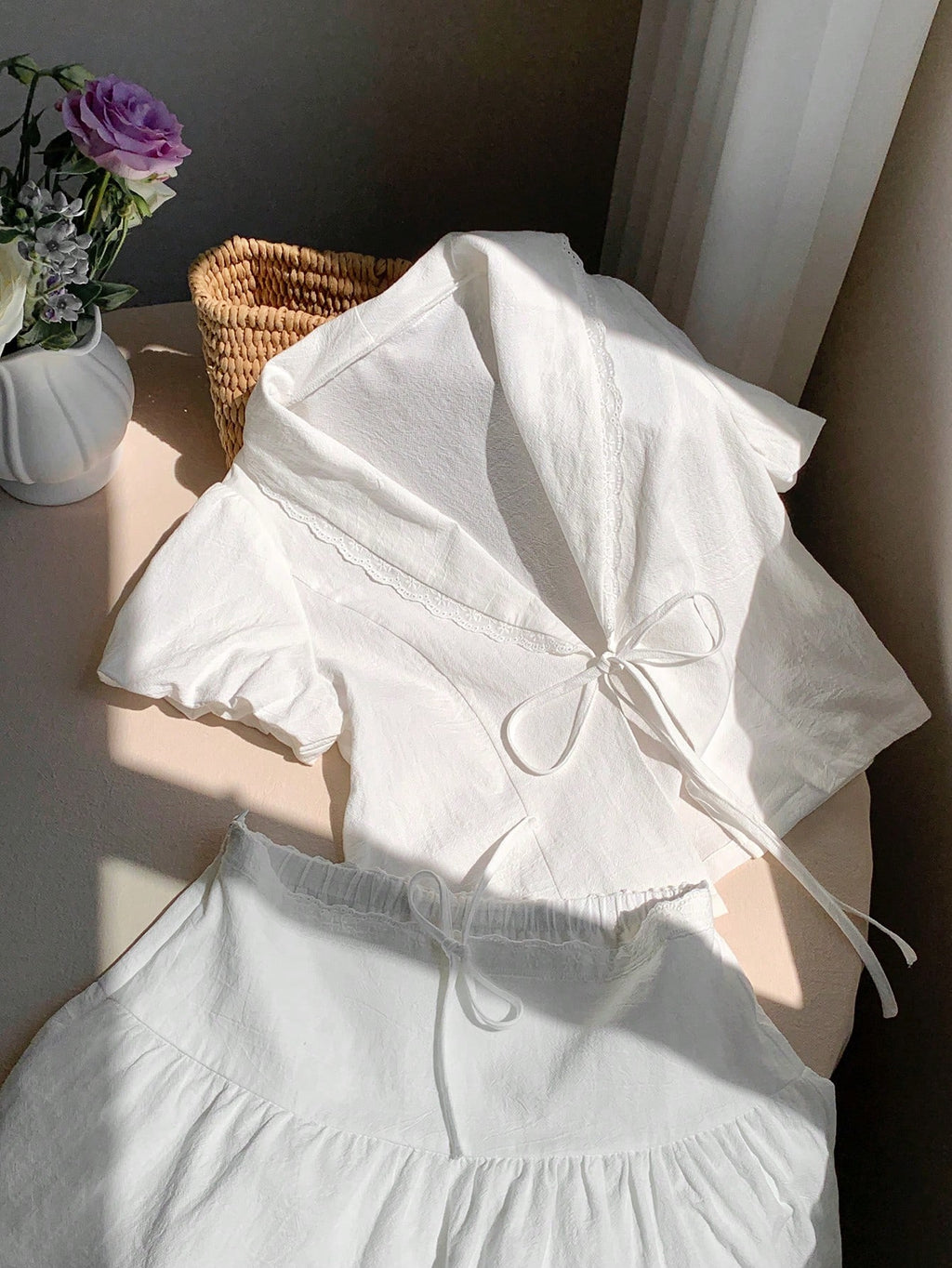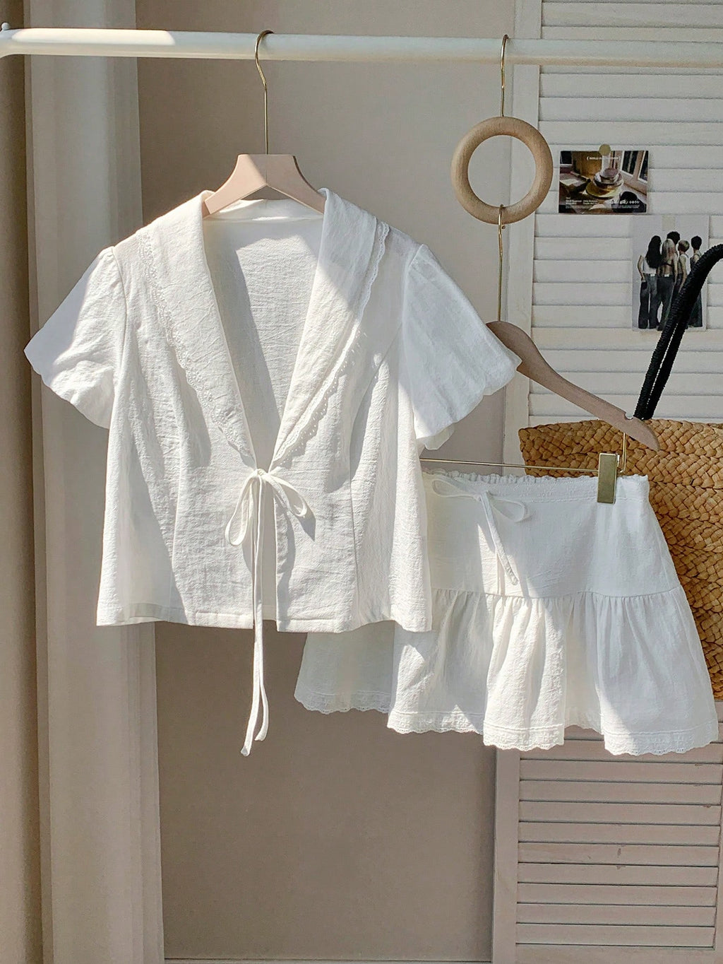 BELLAVOG Set od 2 komada za žene, ljetni jednobojni top s vezanjem sprijeda