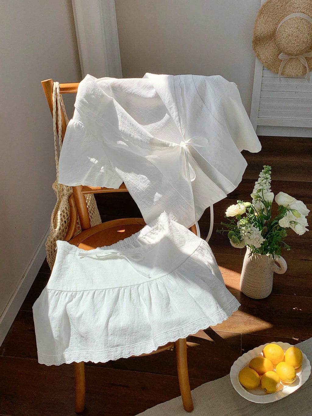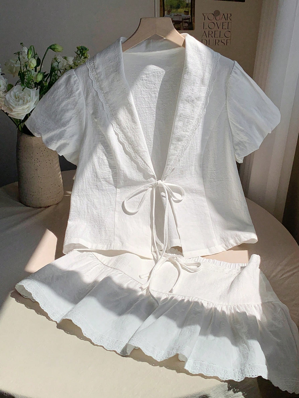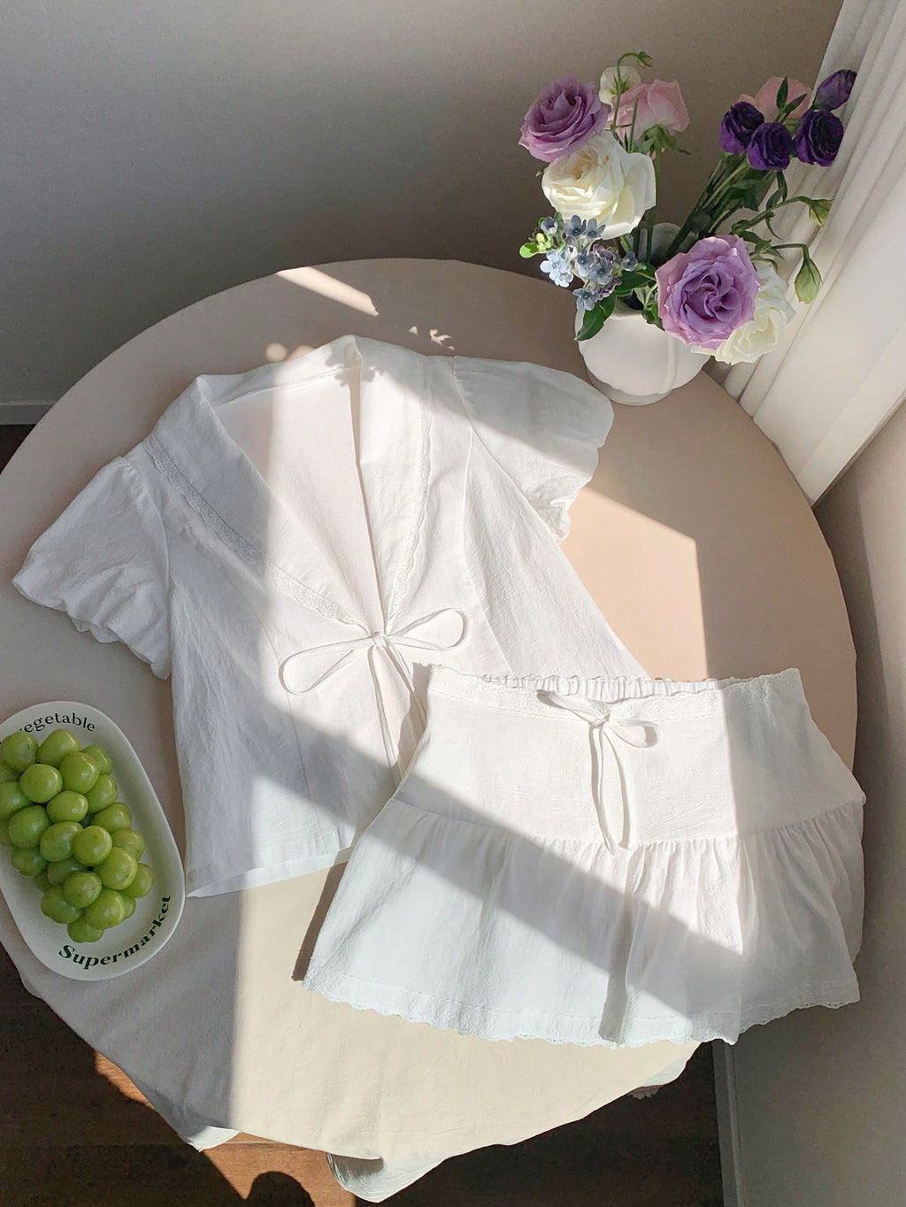 BELLAVOG Set od 2 komada za žene, ljetni jednobojni top s vezanjem sprijeda