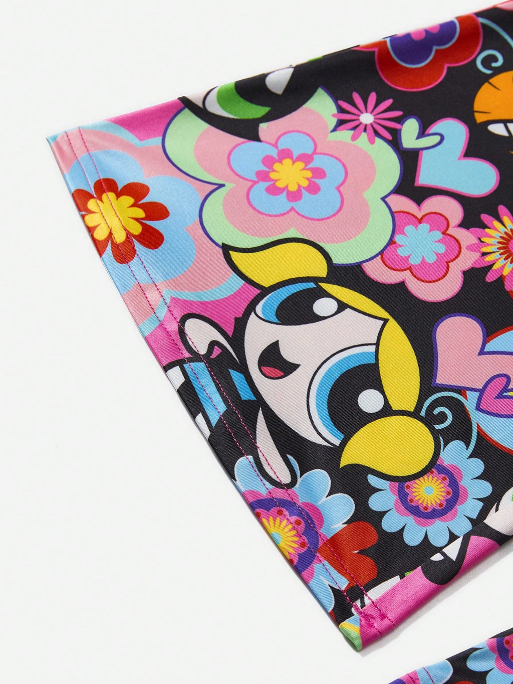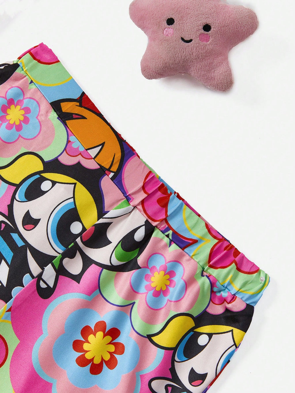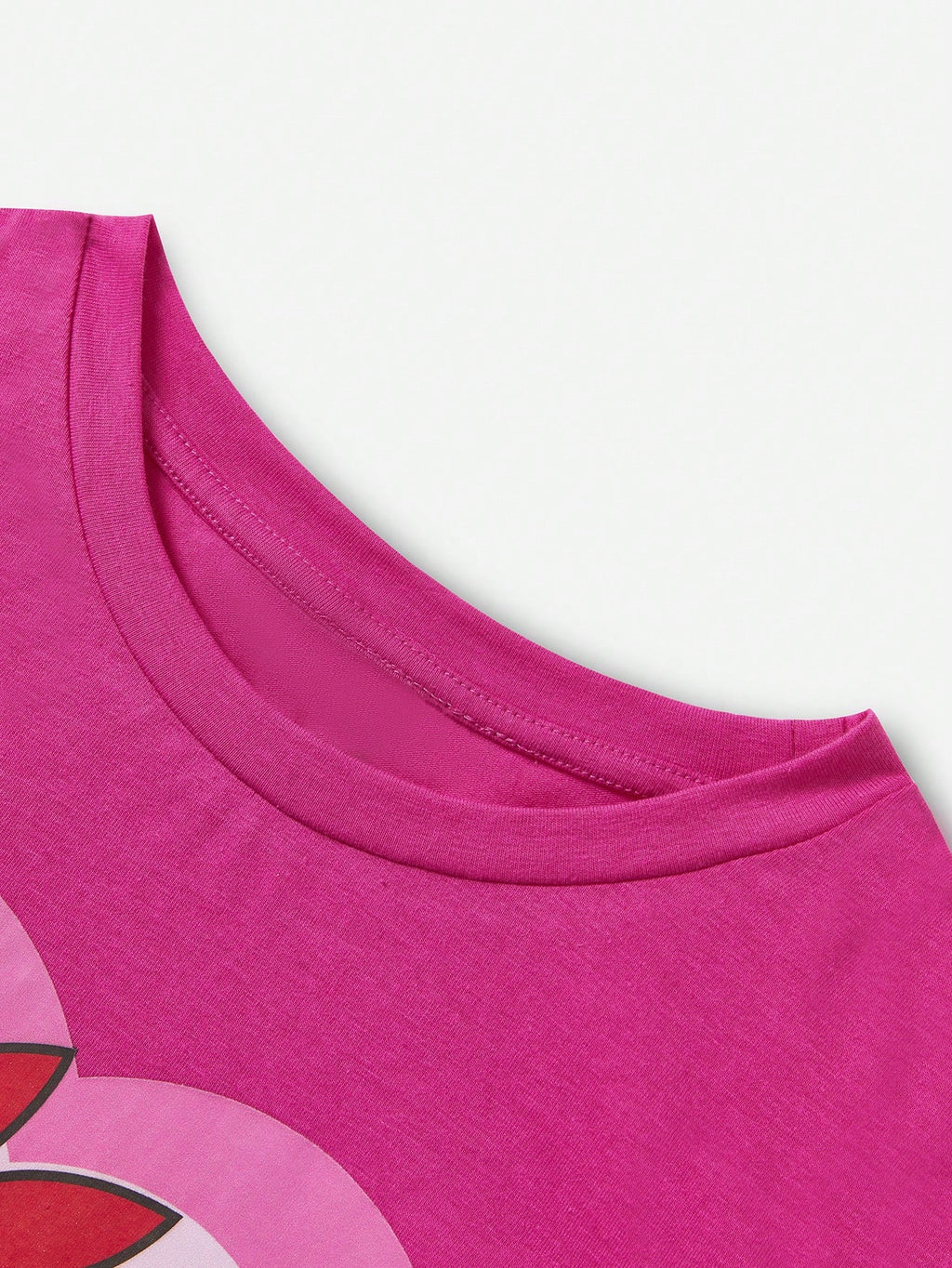 BELLAVOG Set od 2 komada - majica kratkih rukava i zvonaste hlače za djevojčice tinejdžerice s crtanim printom i ukrasom od čvorova