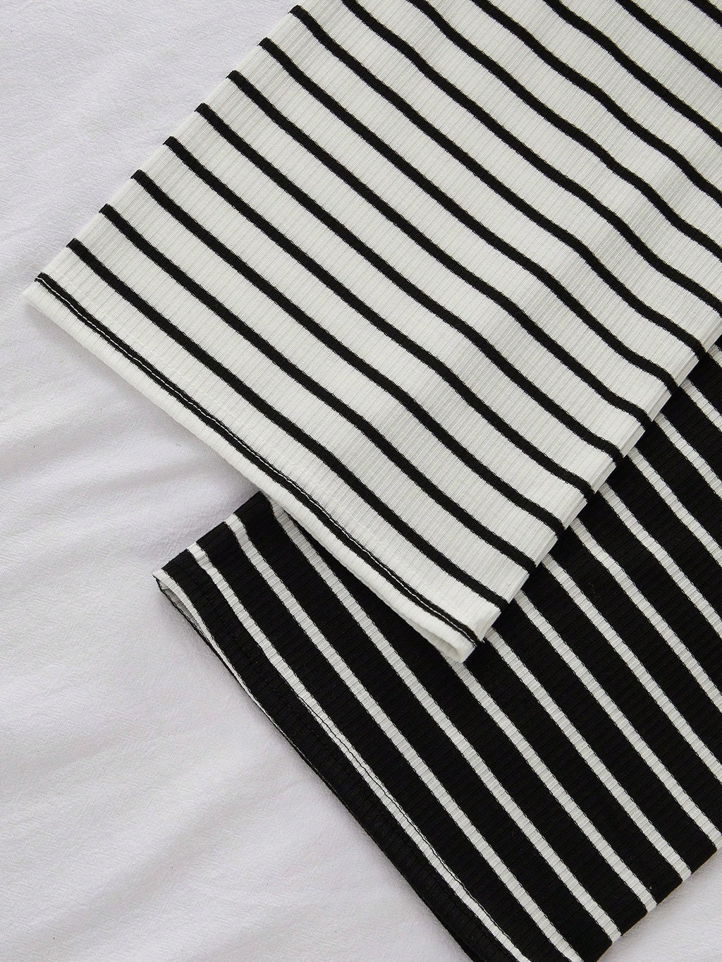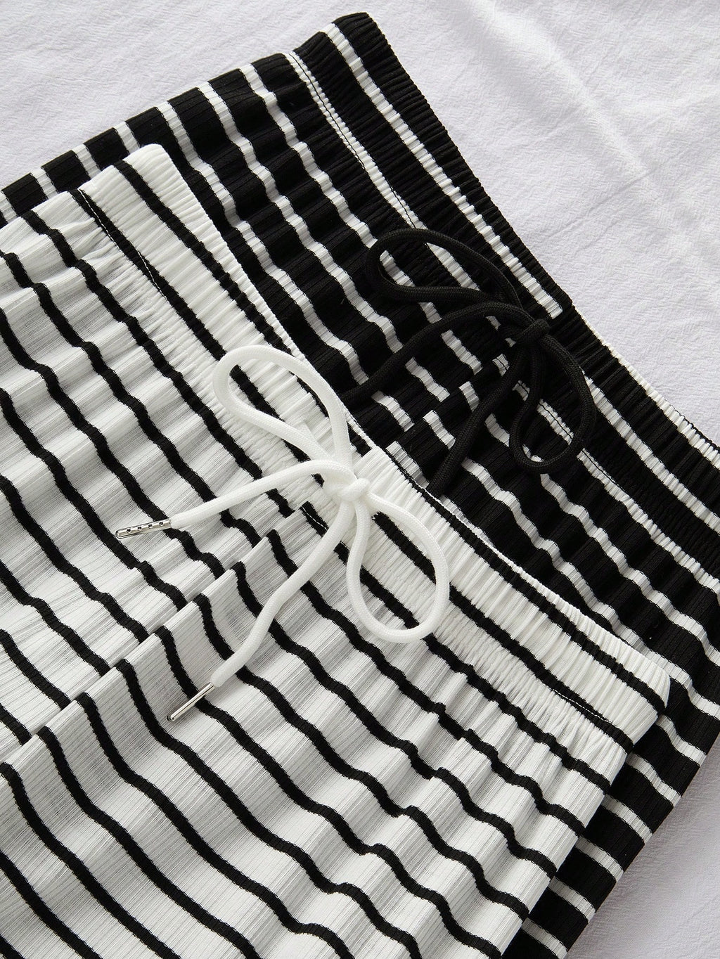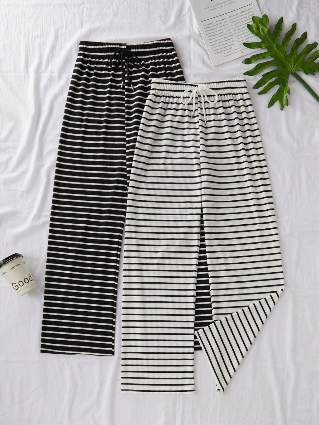 BELLAVOG Ženski set od 2 komada, ležerno pletenih hlača s prugastim printom i vezicom za struk