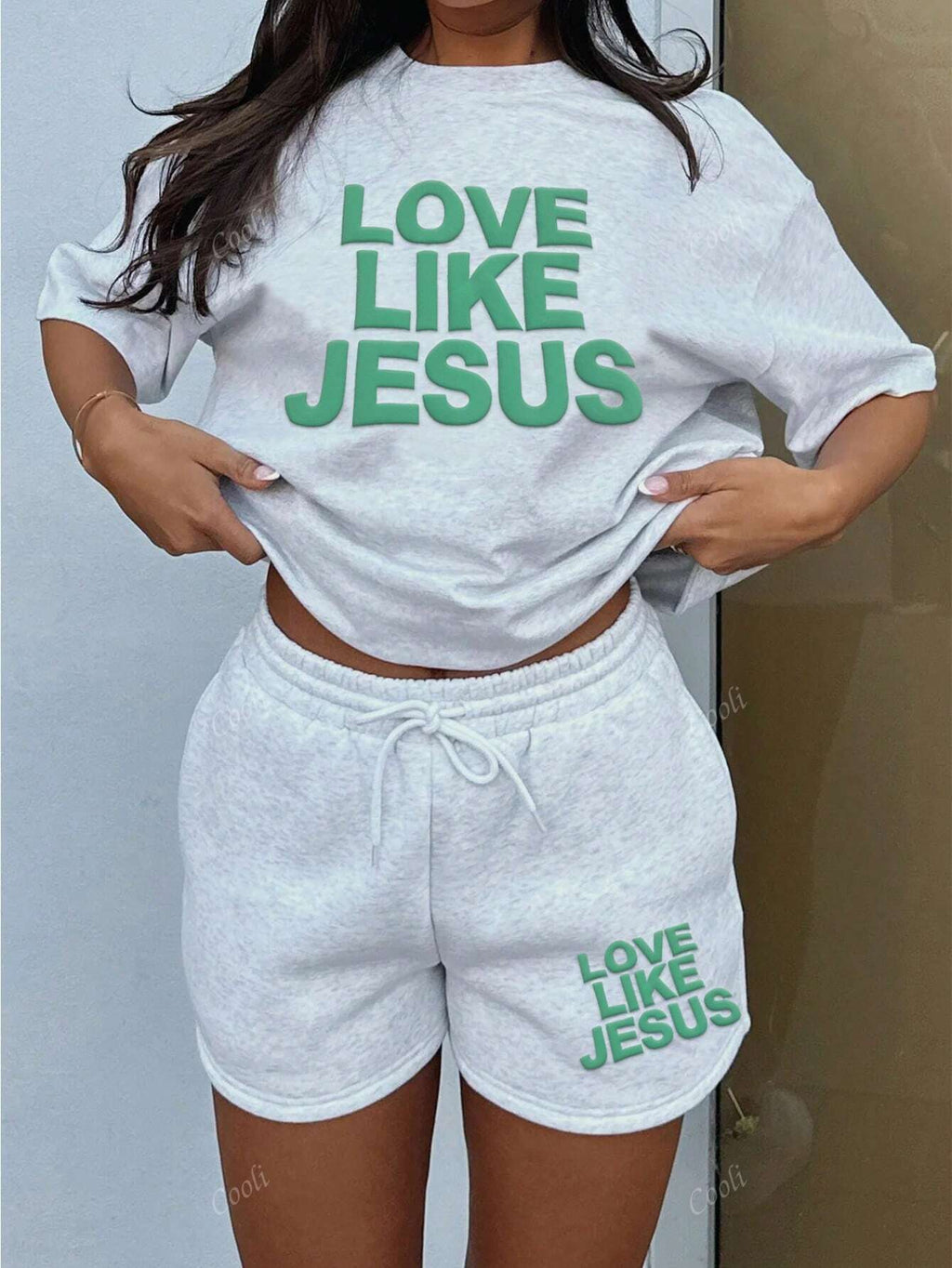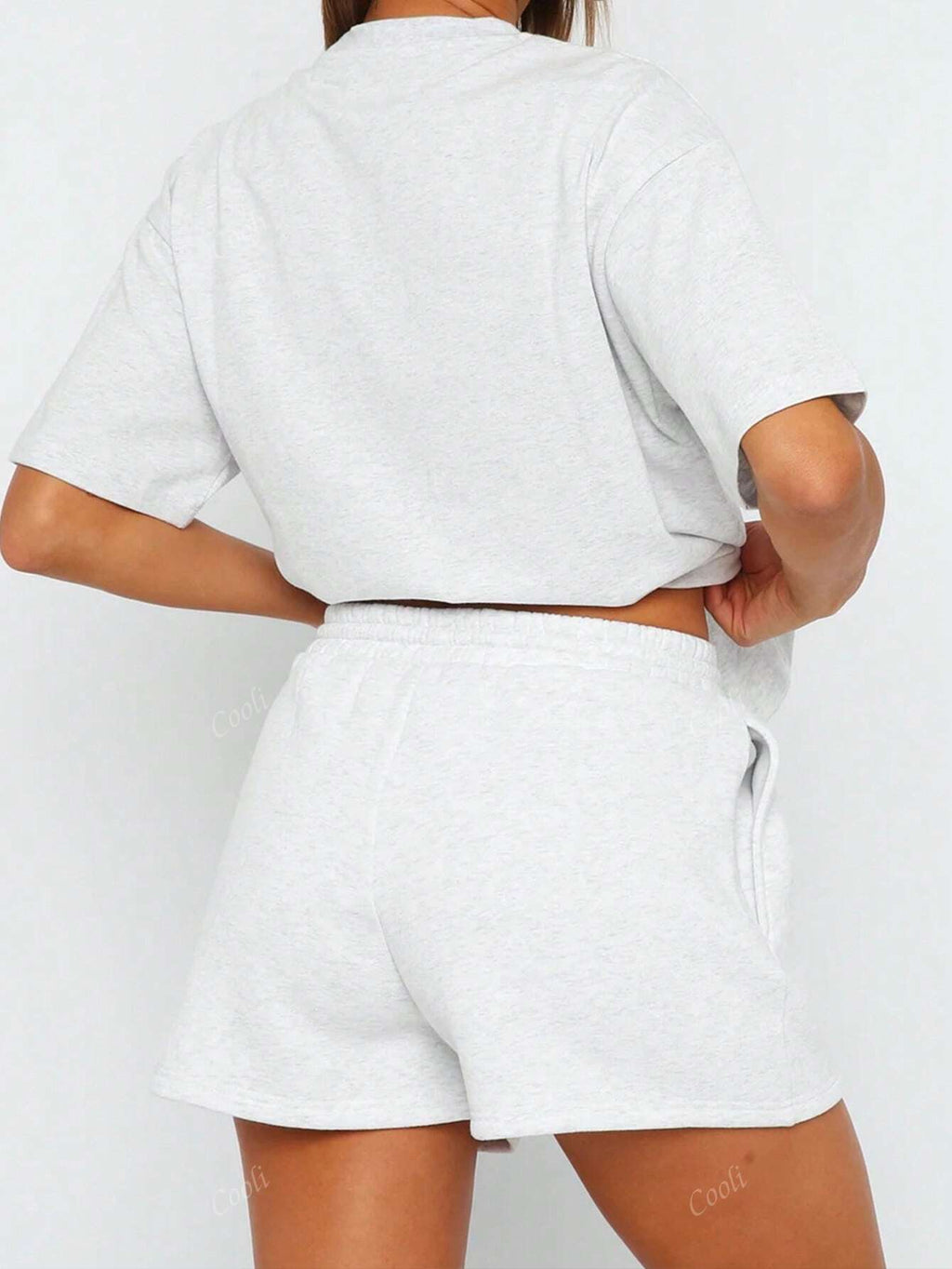 BELLAVOG Ženski set od 2 komada, ležerne, širokog kroja, okruglog izreza, kratkih rukava i kratkih hlača s printom