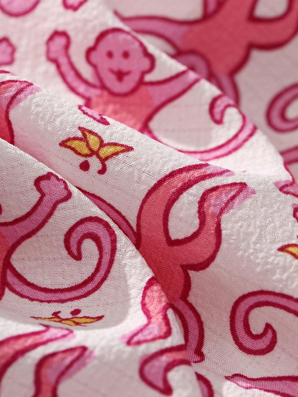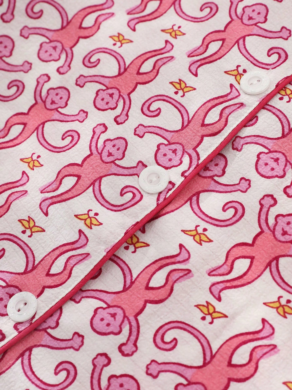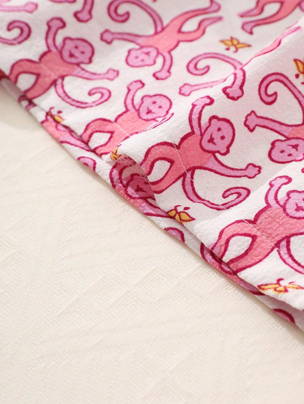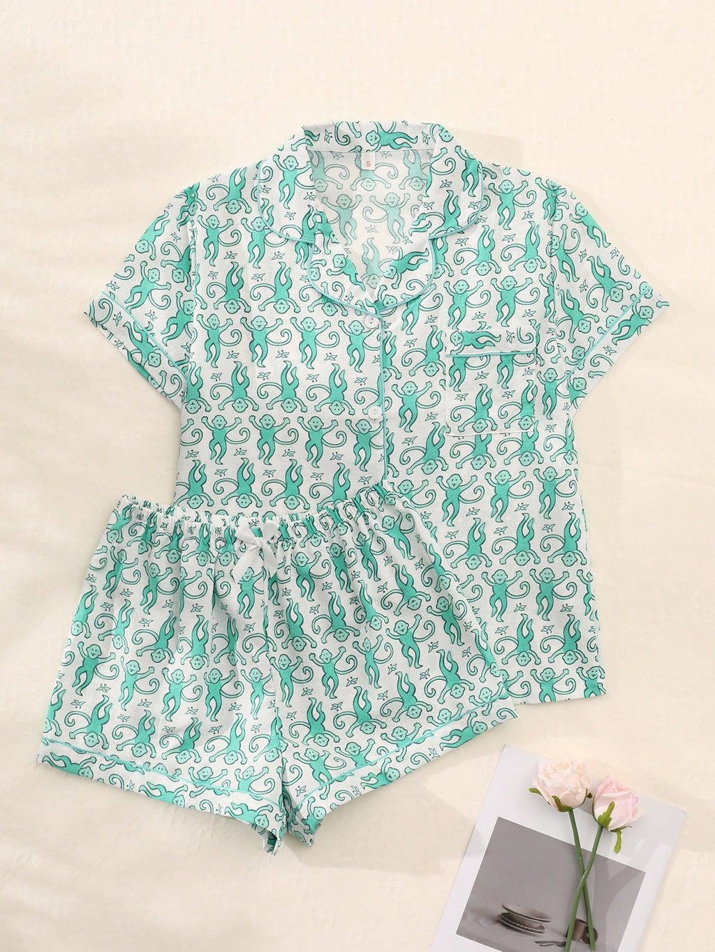 BELLAVOG Ženski set od 2 komada, majica i hlače s V-izrezom i dugmadima, s printom majmuna, kratkim rukavima i jednim redom kopčanja, ljetni set pidžame, udoban za kućnu upotrebu, set od dva dijela