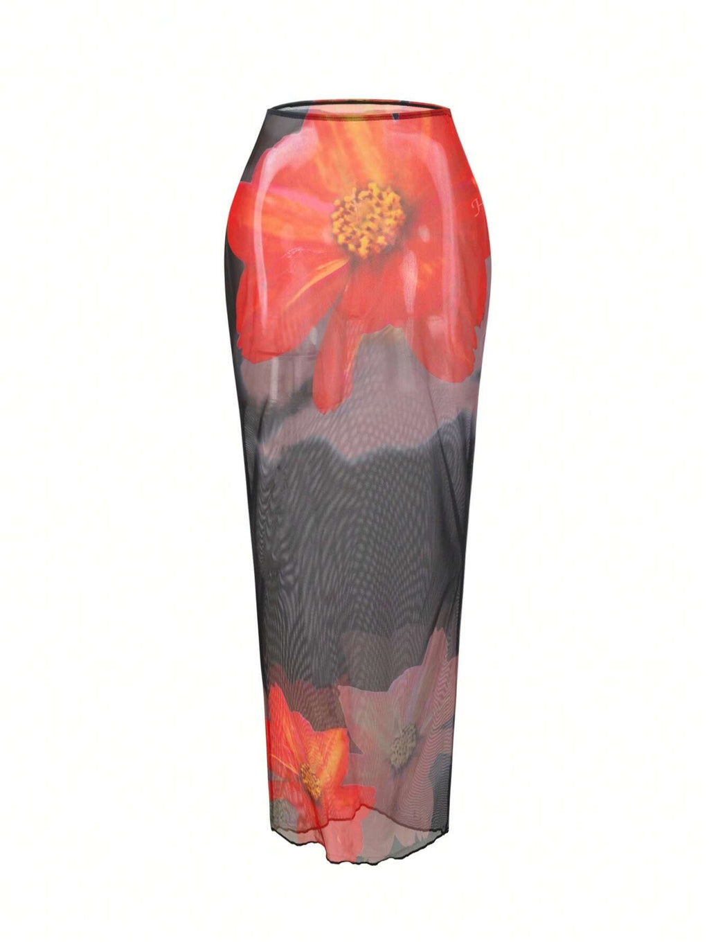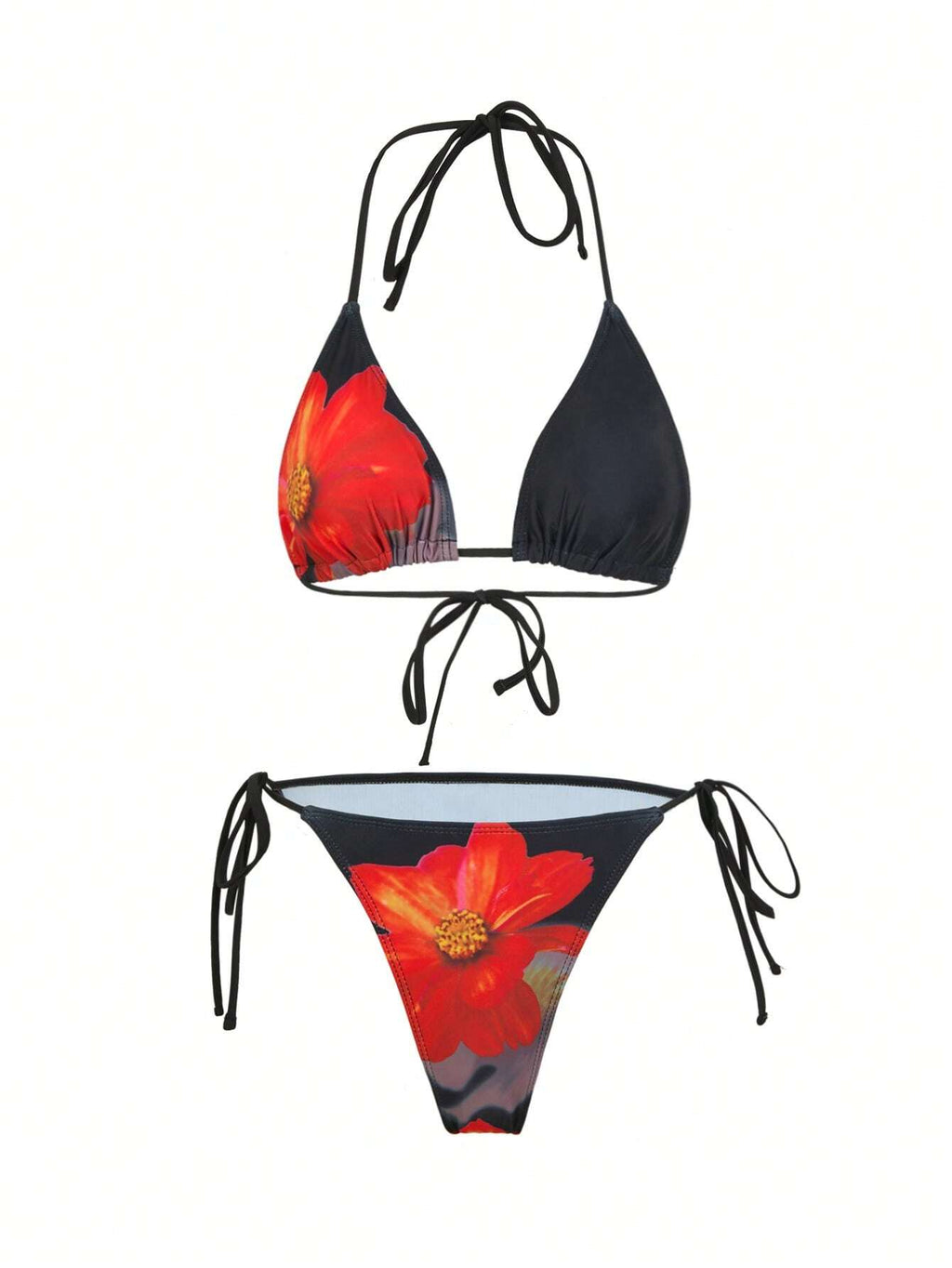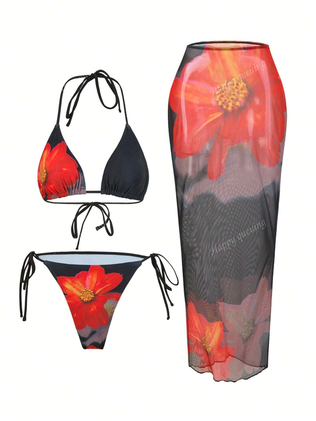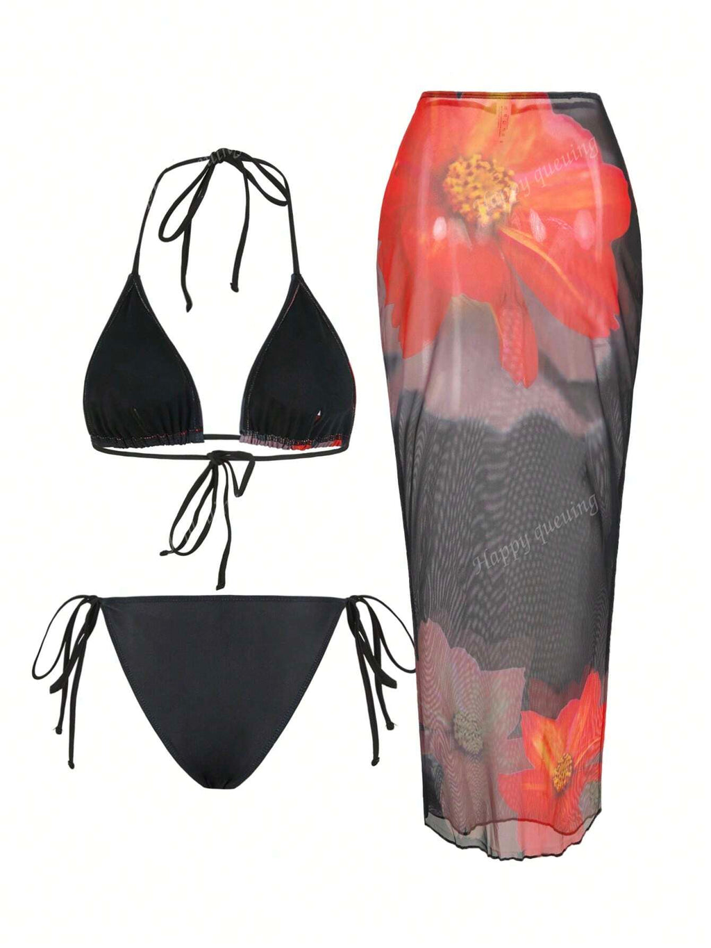 BELLAVOG Set od 3 komada/komad Ljetni bikini set za plažu s cvjetnim printom i špageti naramenicama sa sarong suknjom