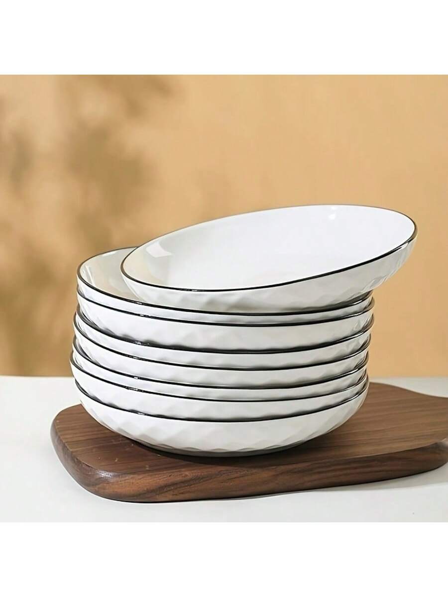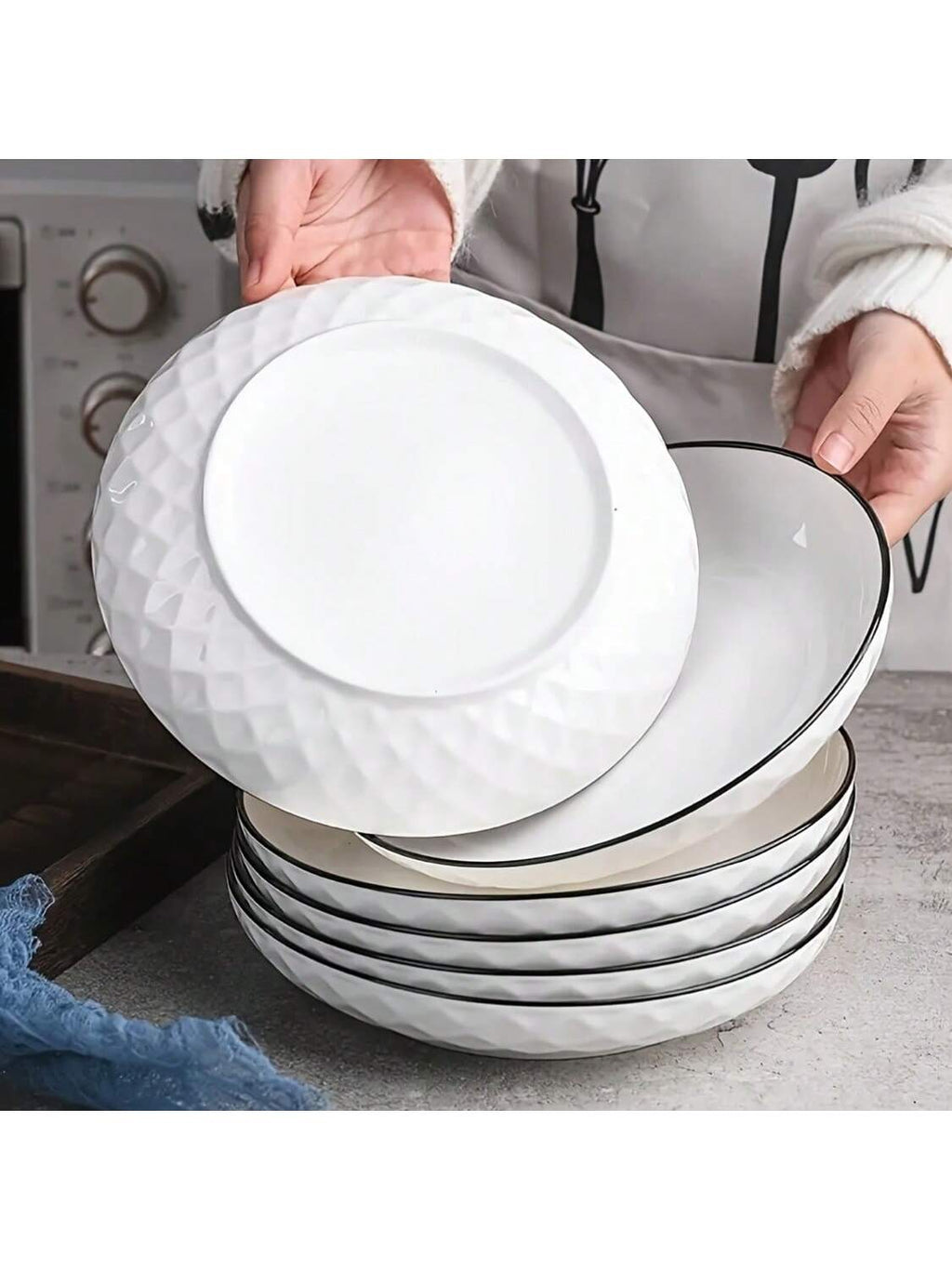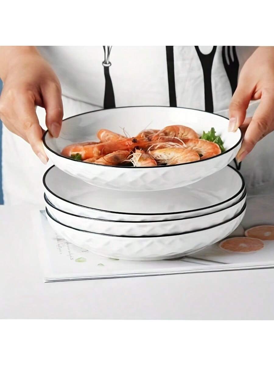 BELLAVOG 4pcs/Set Diamond Pattern Ceramic Salad Plates - 8" Dinner Plates, 7" Round Plates, Dishware For Pasta, Salad, Dessert, Sushi - Multipurpose Kitchen Dinnerware Set For Dining, Home Gatherings, Hot Pot, BBQ - , Year-Round Tableware