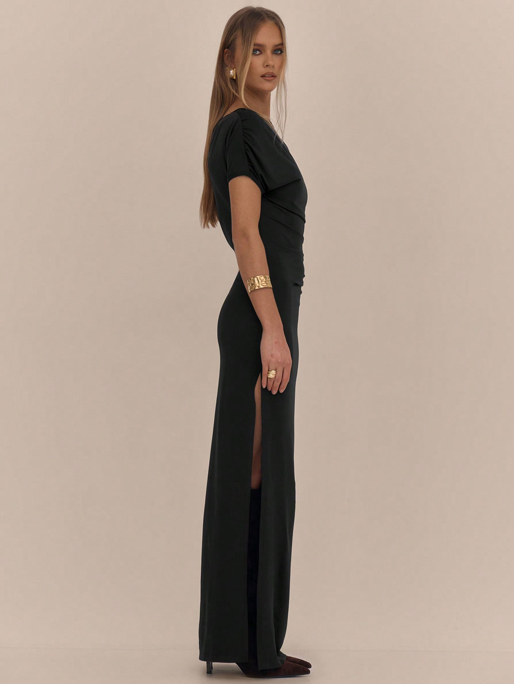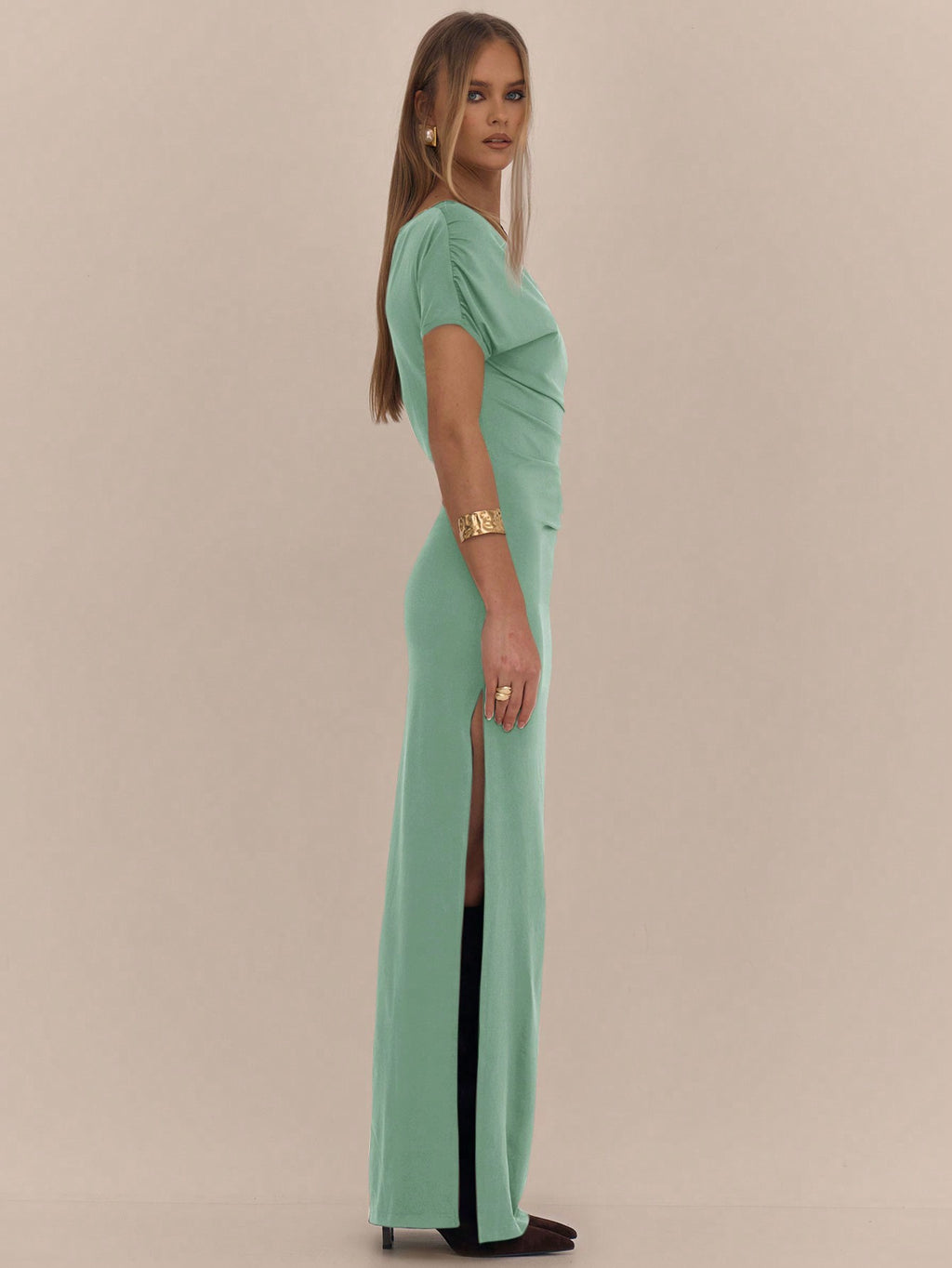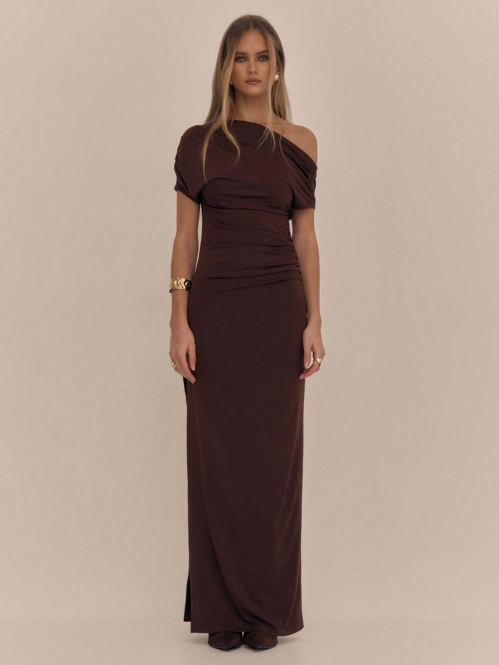BELLAVOG Asymmetrical Shoulder Ruched Side Split Maxi Dress Birthday Elegant Spring Summer Vacation Prom
