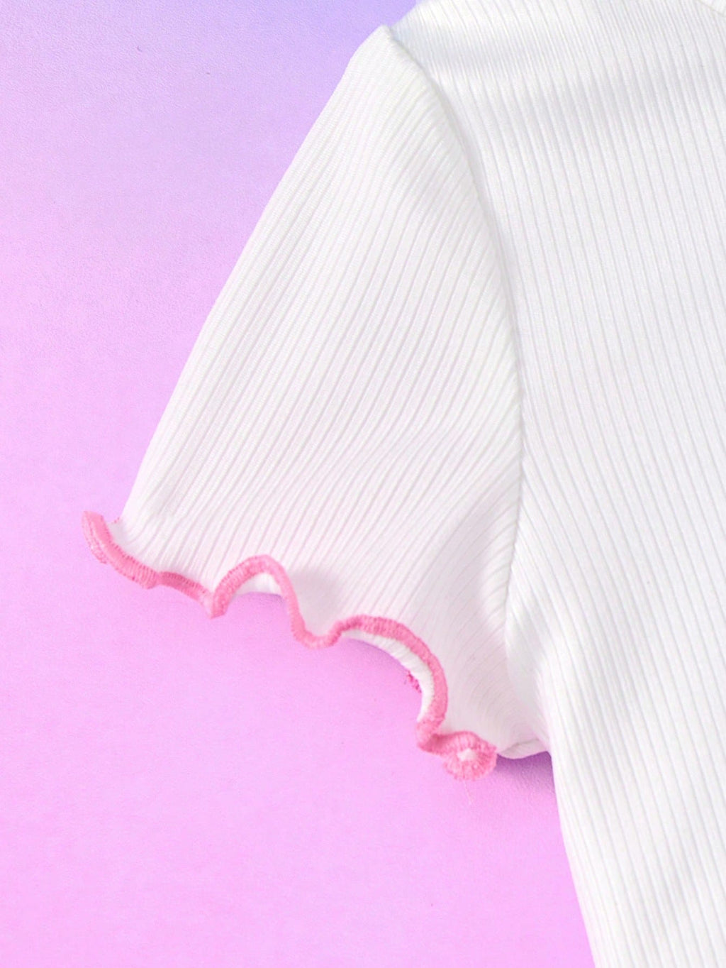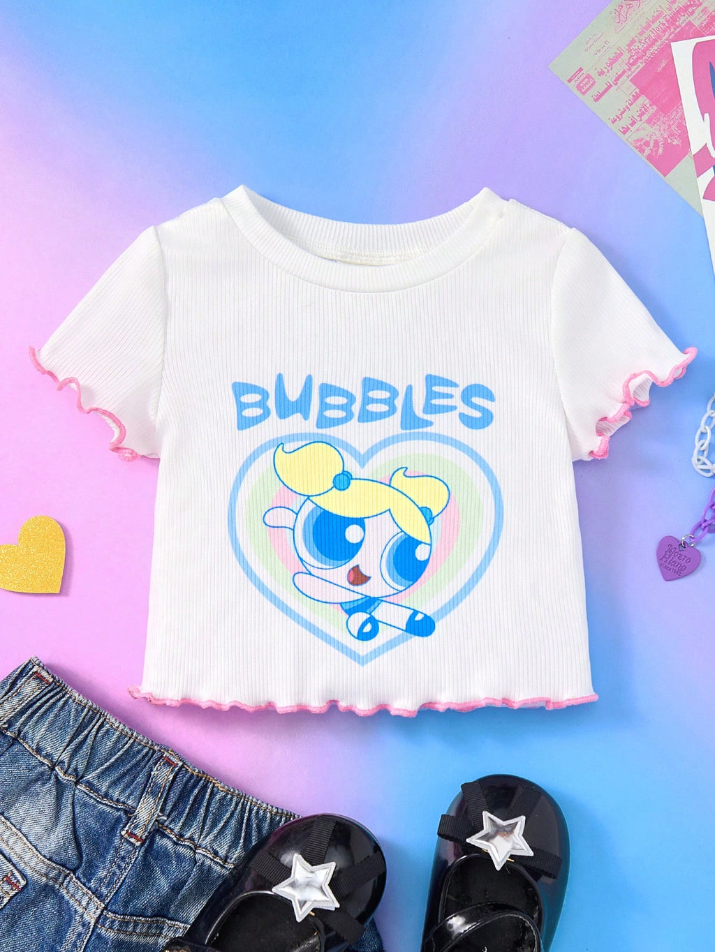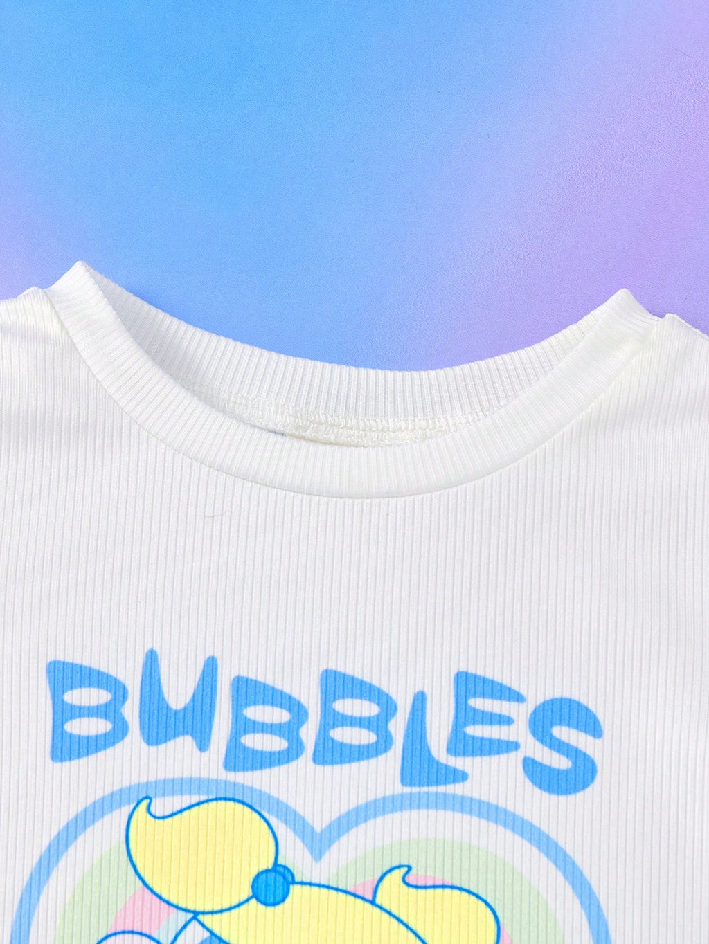 BELLAVOG Preslatke majice za djevojčice s uzorkom mjehurića i ukrasima od zelene salate, pogodne za proljeće i ljeto.