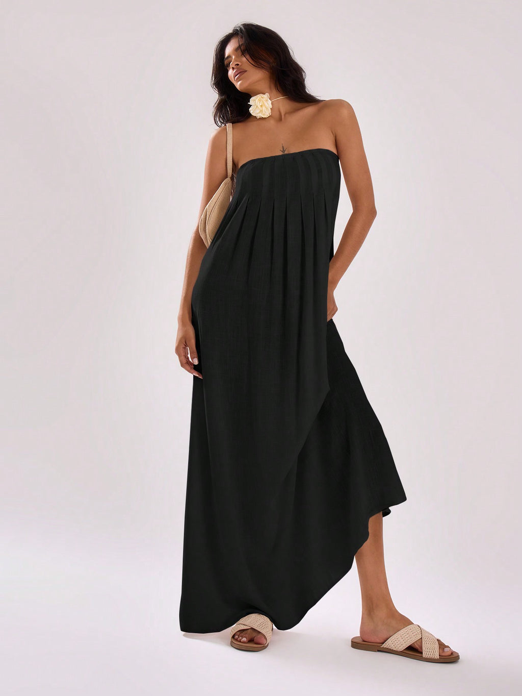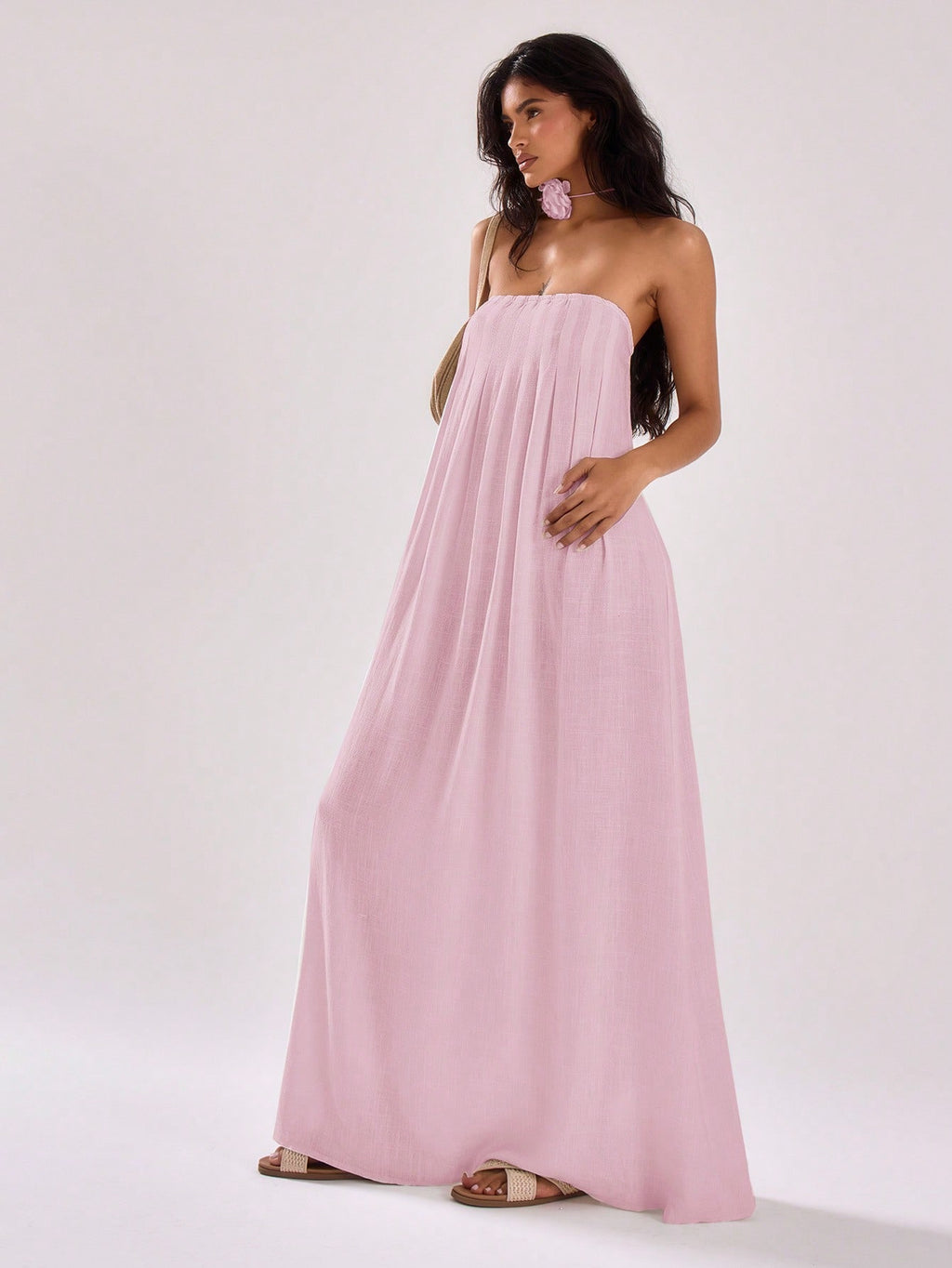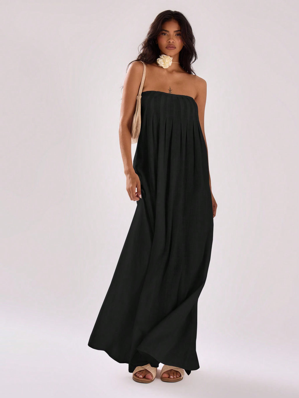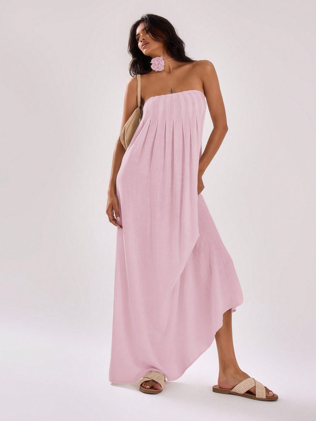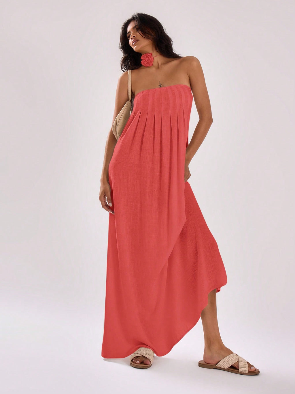 BELLAVOG Bandeau Loose Fit Pleated Maxi Dress Vacation Summer Wedding Guest, Graduation