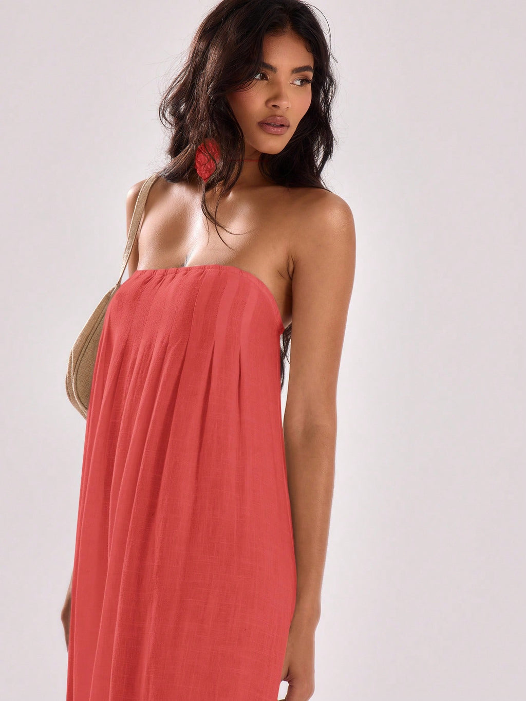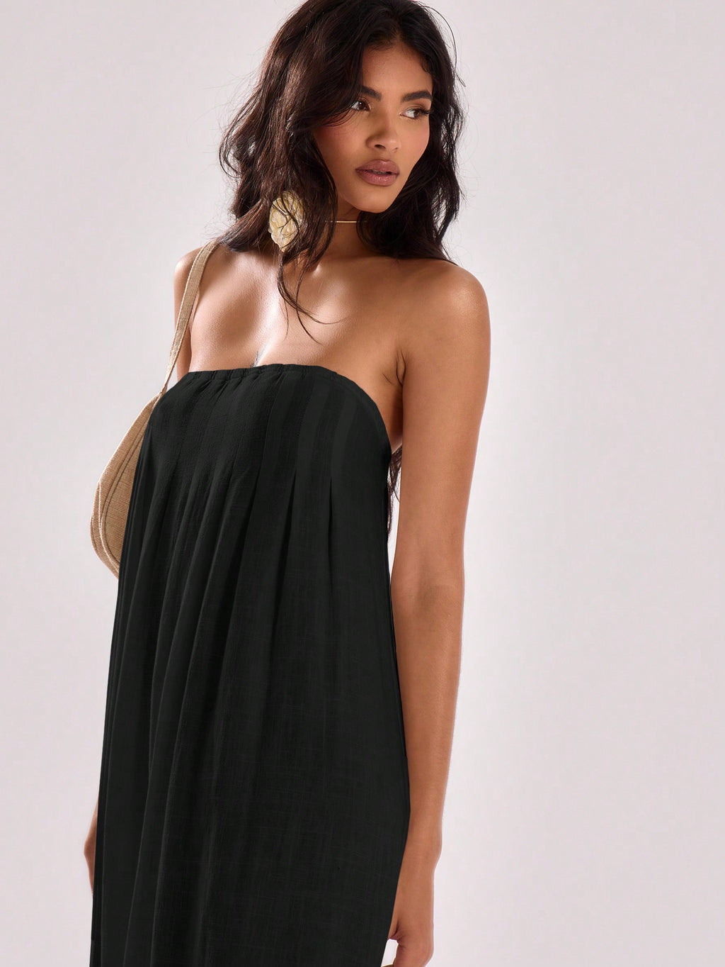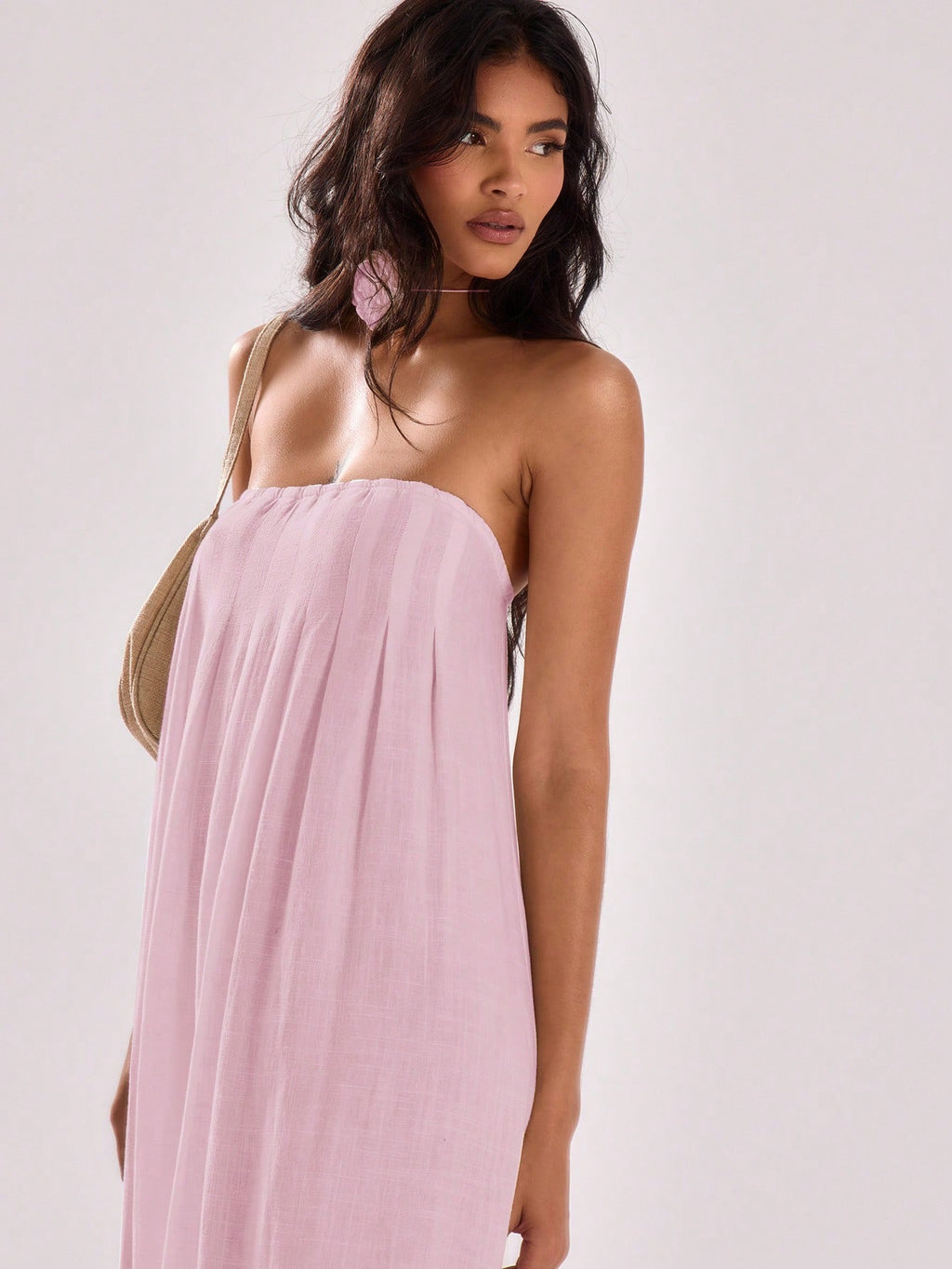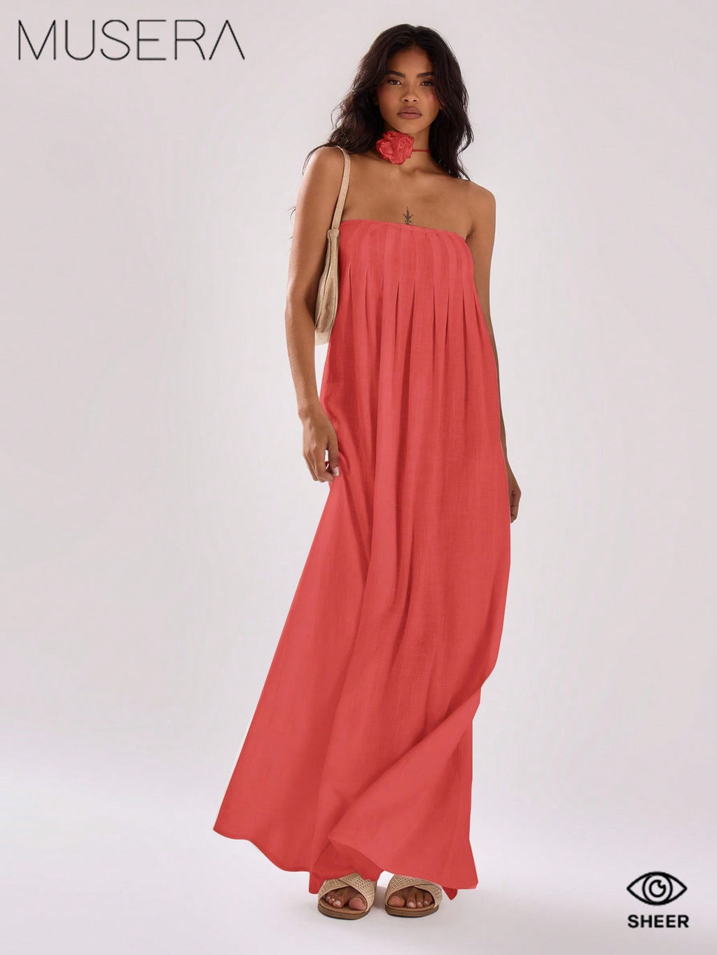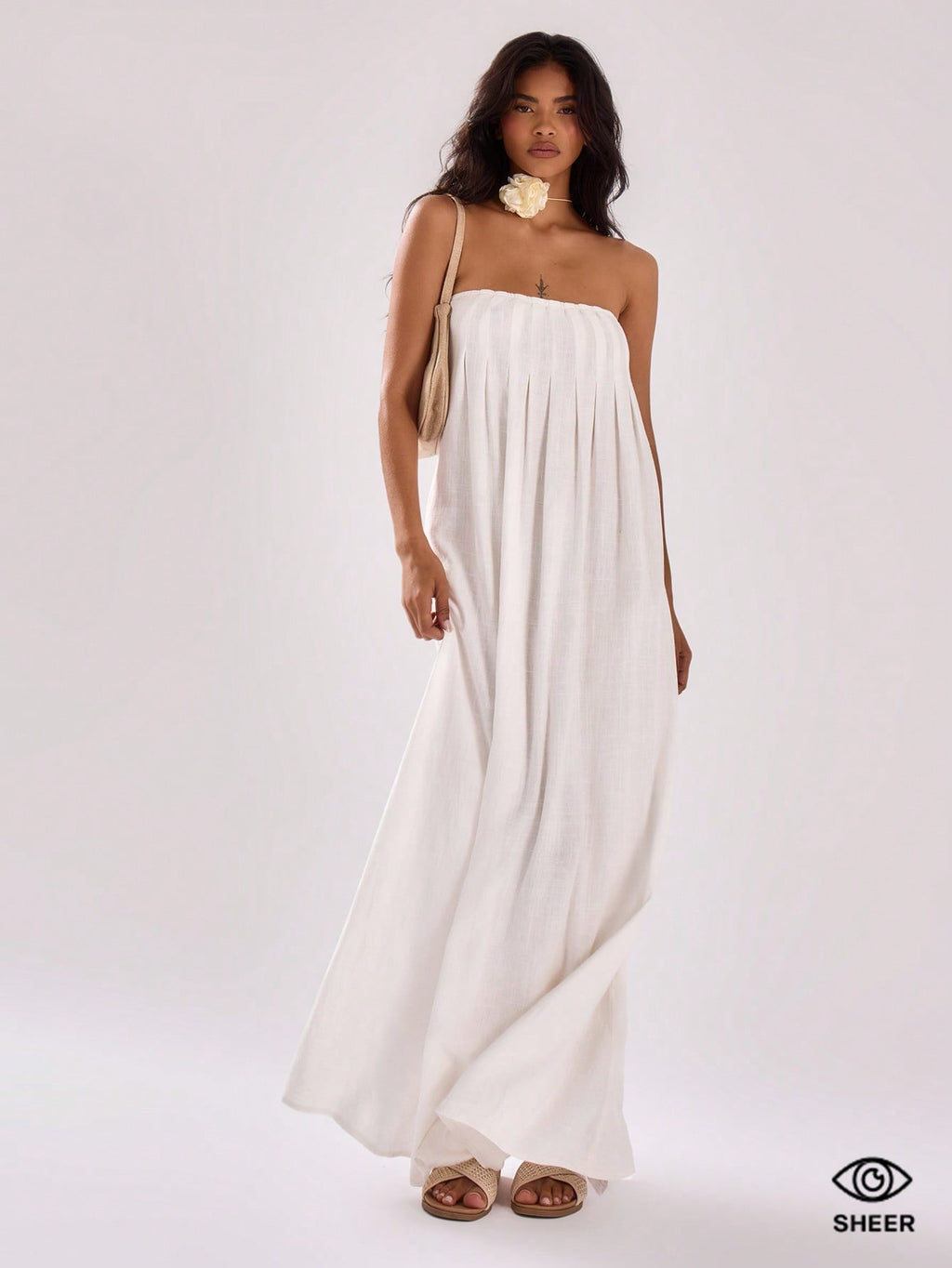 BELLAVOG Bandeau Loose Fit Pleated Maxi Dress Vacation Summer Wedding Guest, Graduation