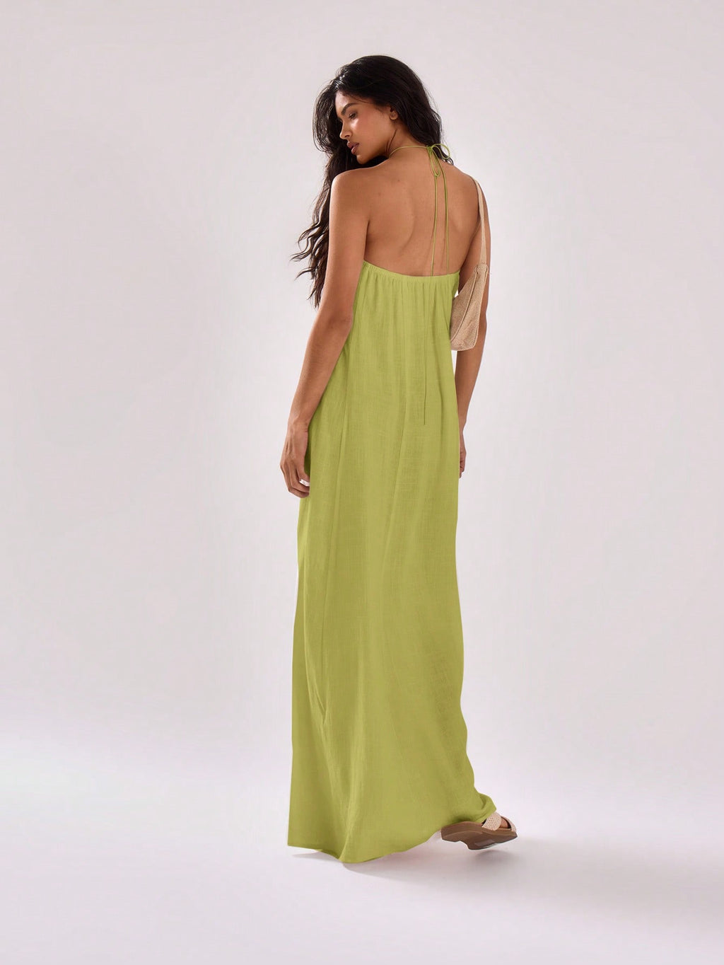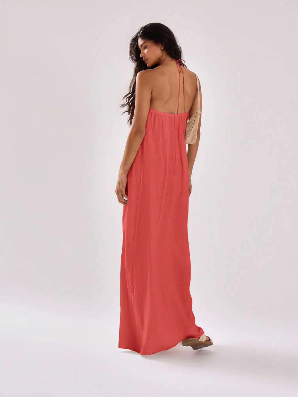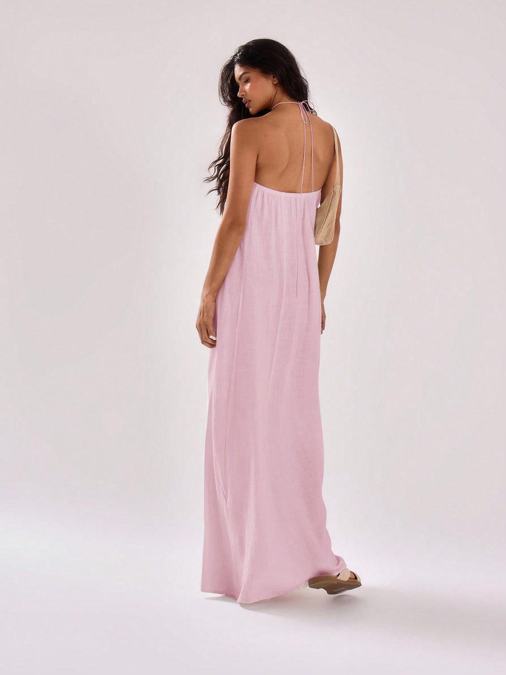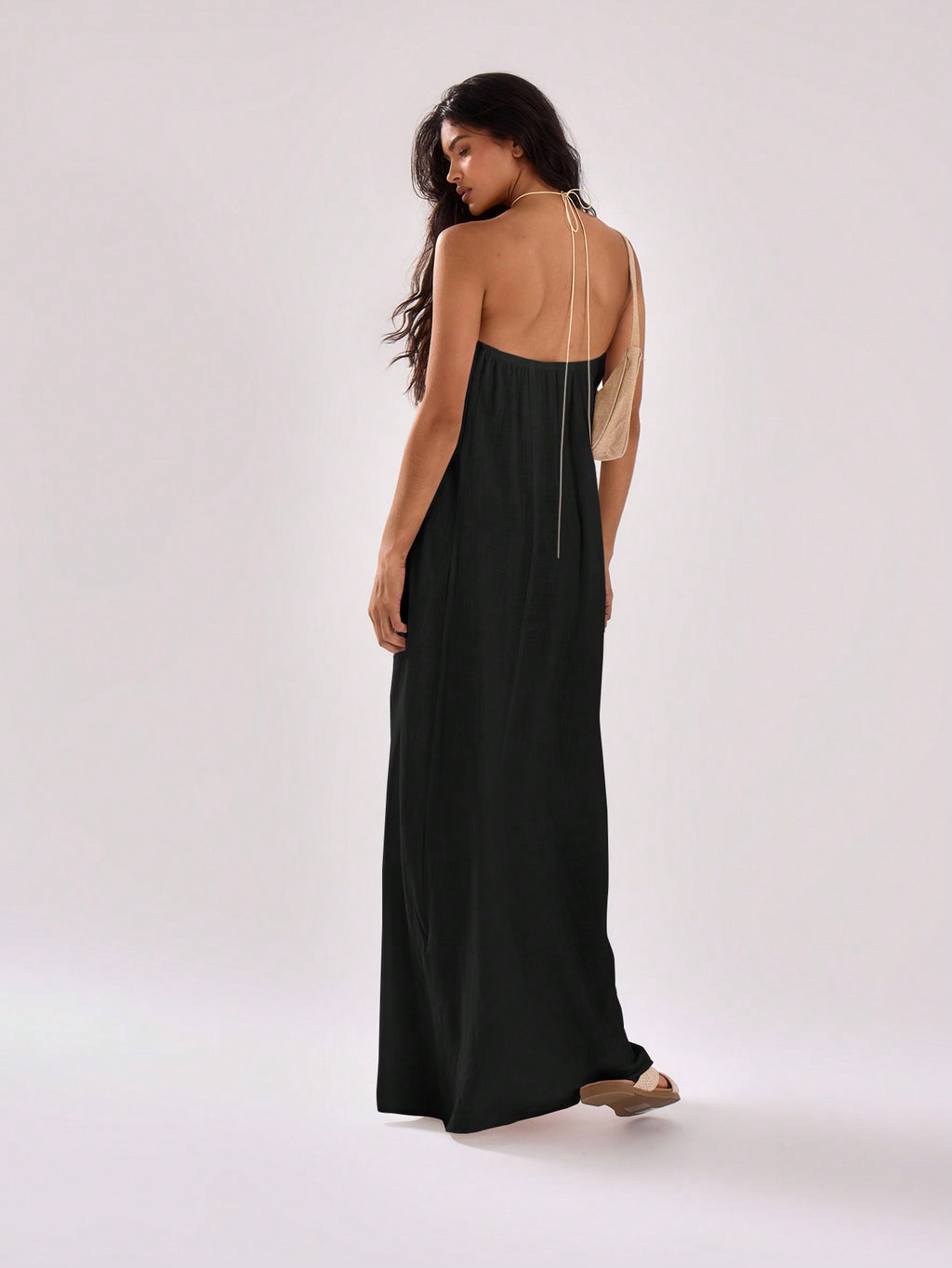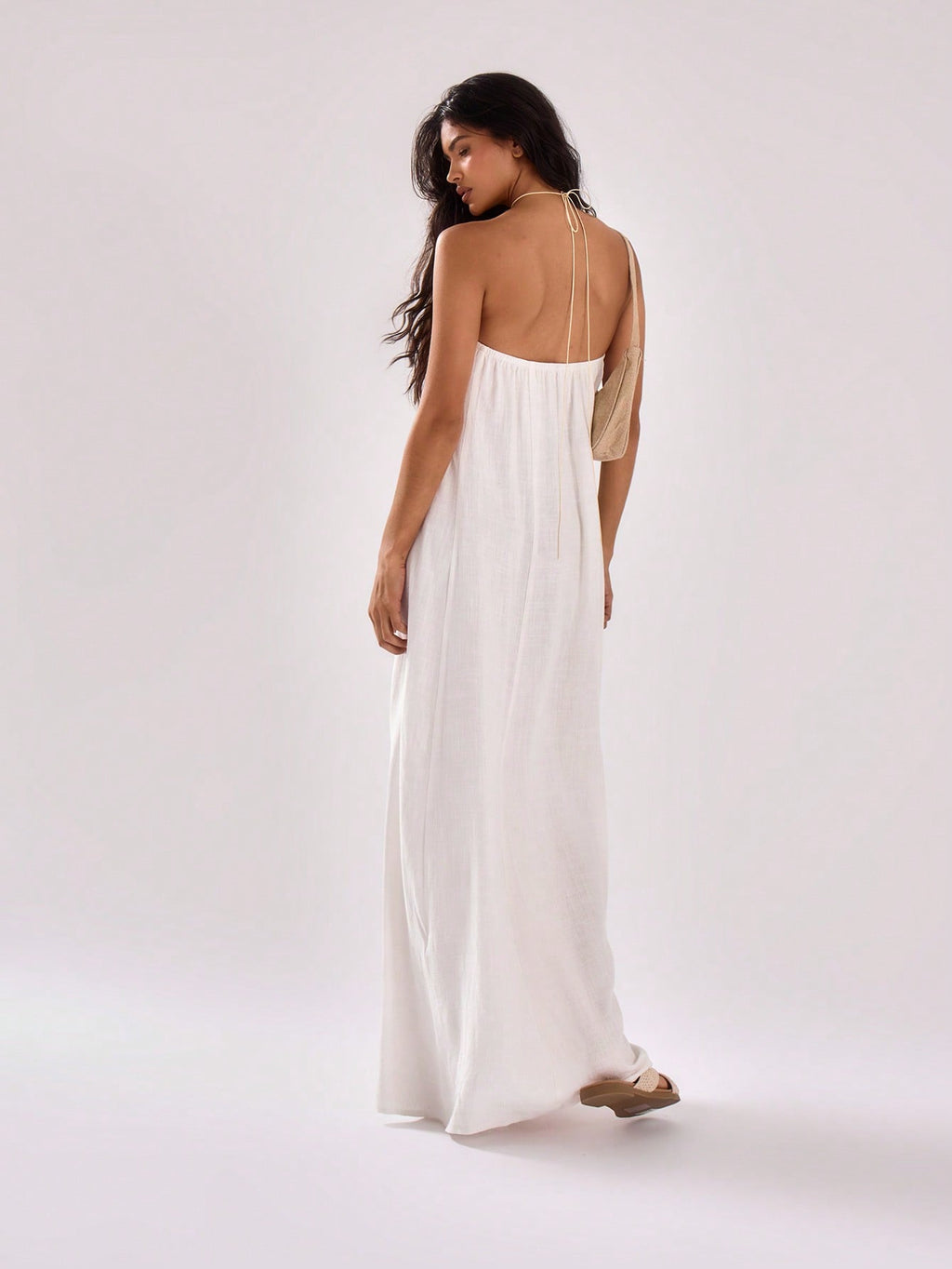 BELLAVOG Bandeau Loose Fit Pleated Maxi Dress Vacation Summer Wedding Guest, Graduation