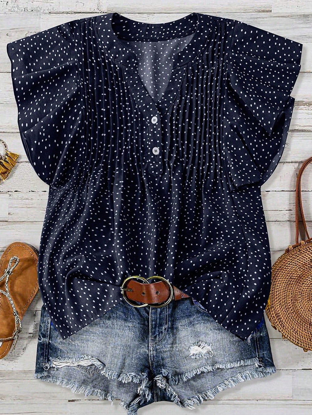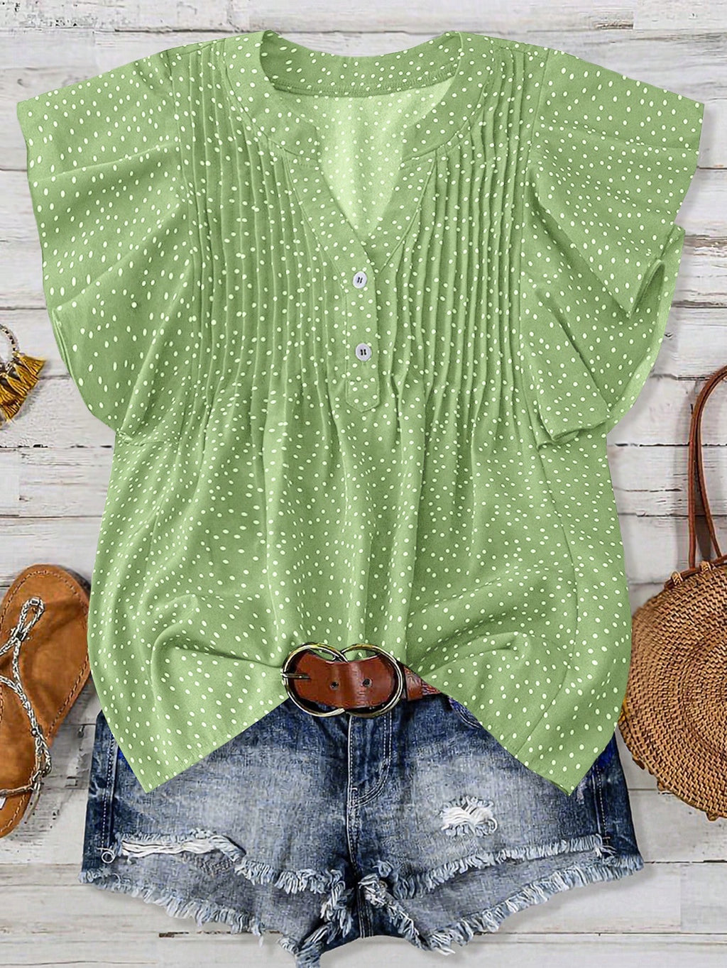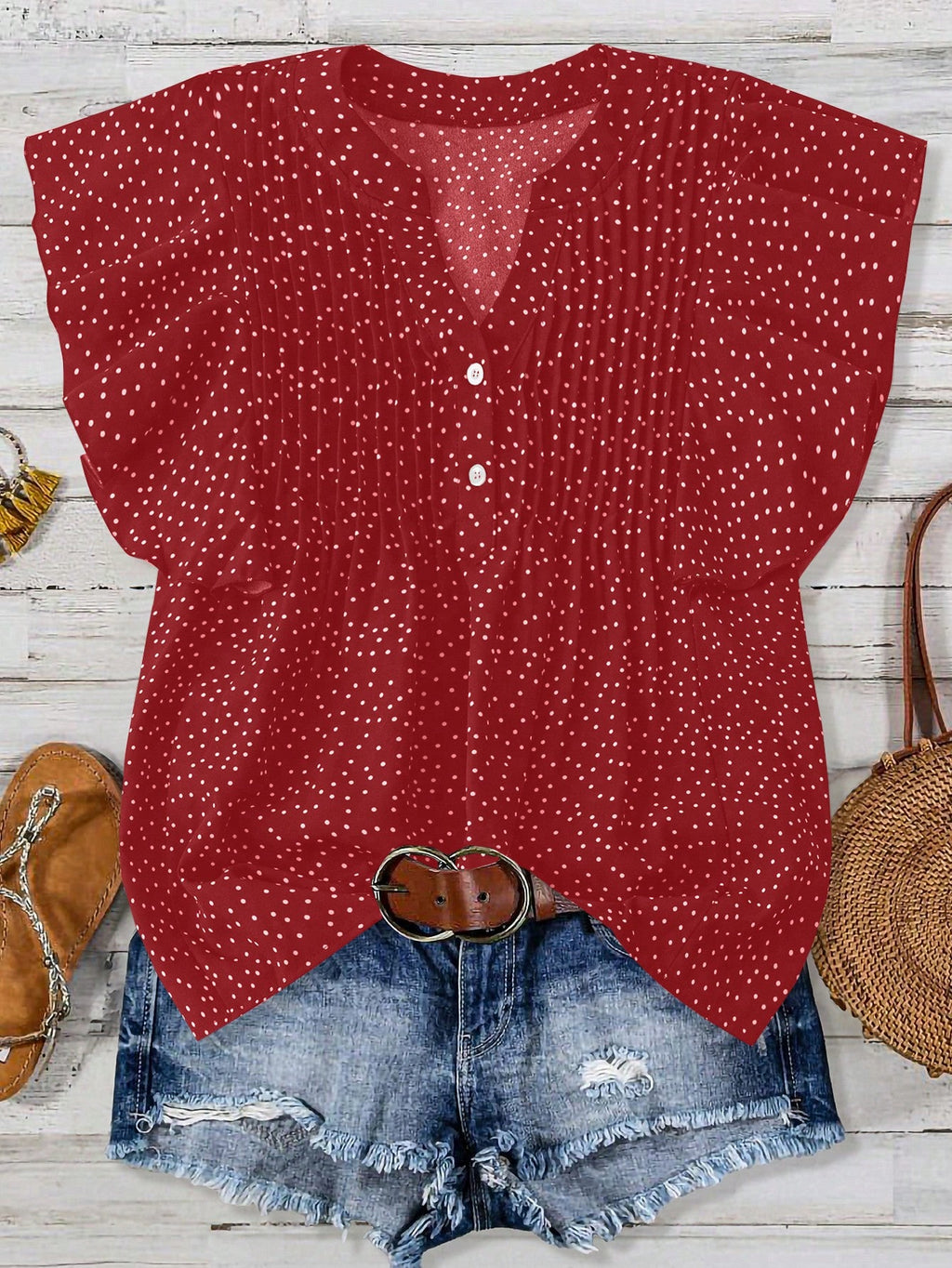 BELLAVOG Ležerna bluza s V-izrezom, prorezom, nabranim rukavima i tufnama