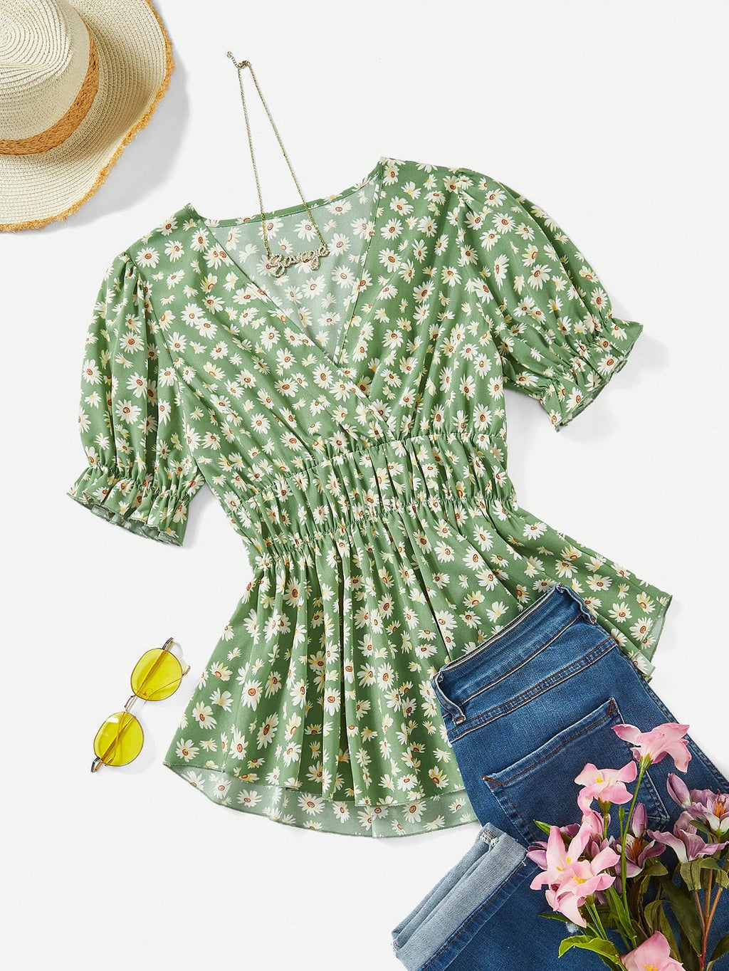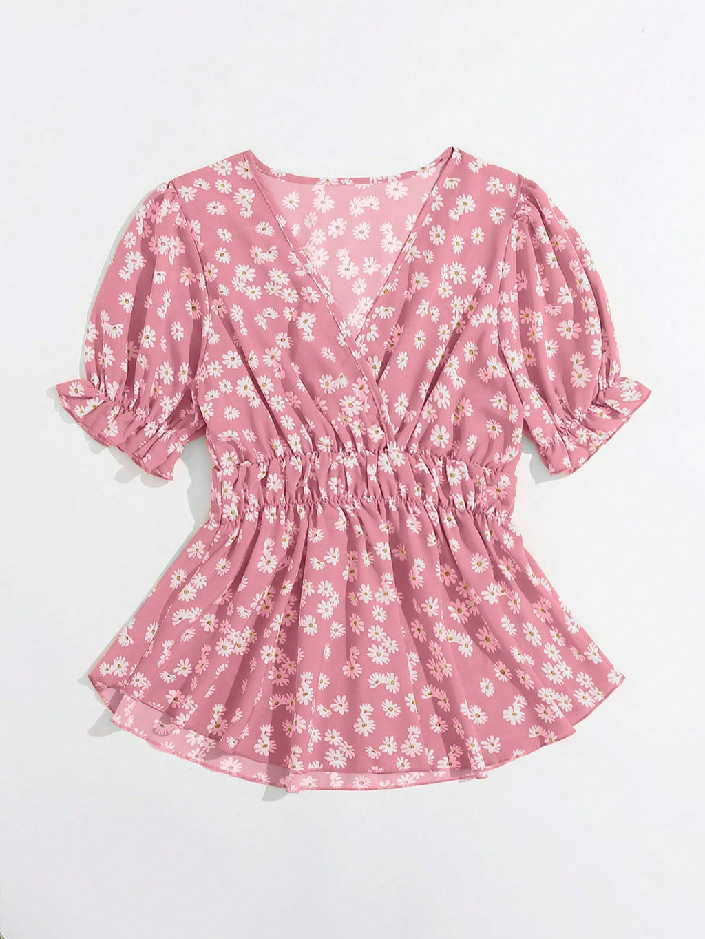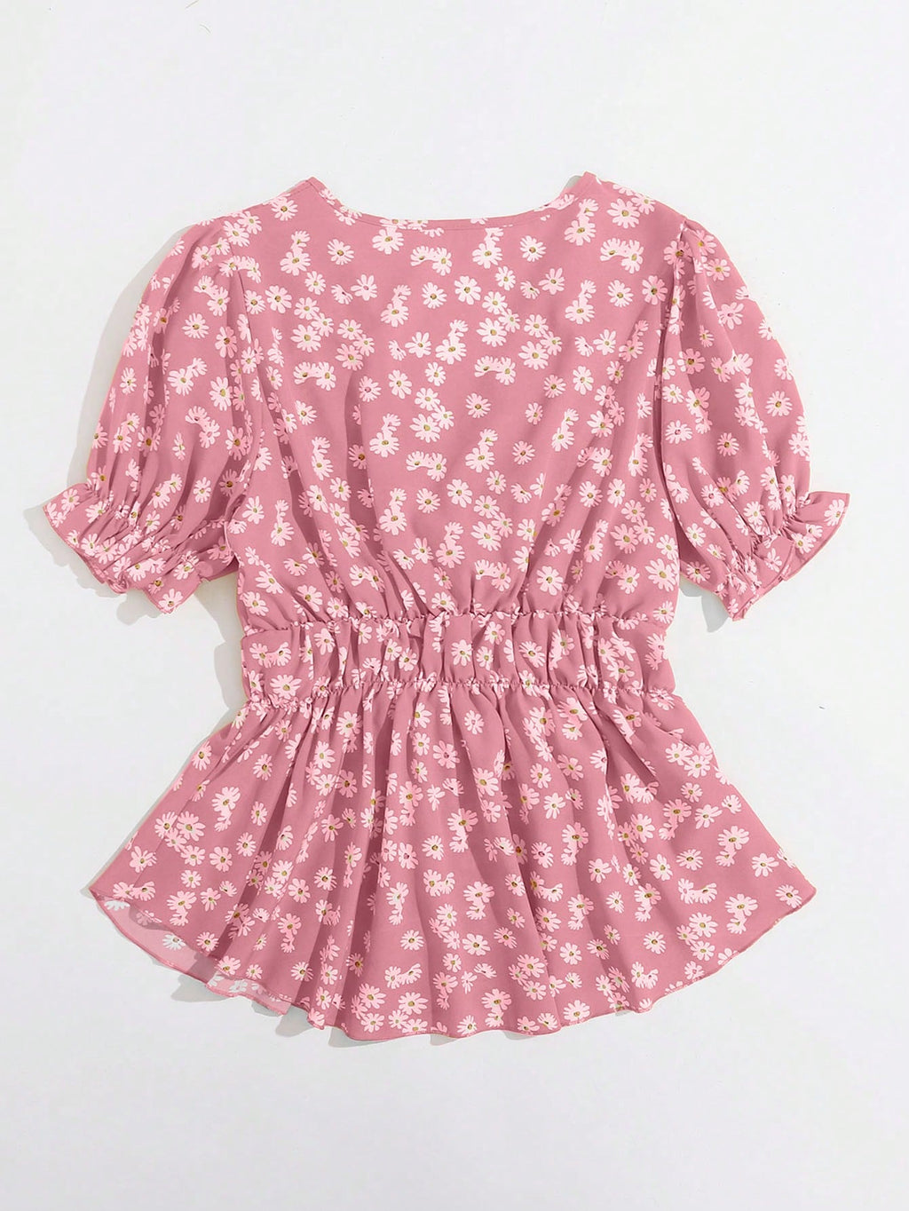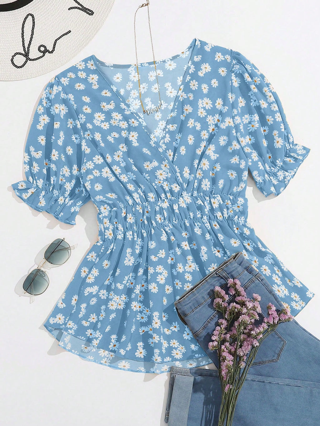 BELLAVOG majica kratkih rukava s printom tratinčica i stezanjem struka za ljetni odmor